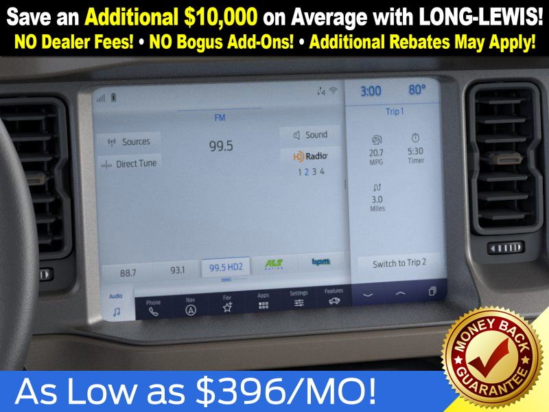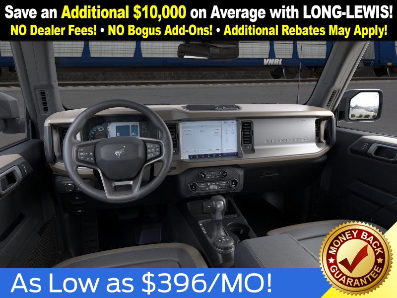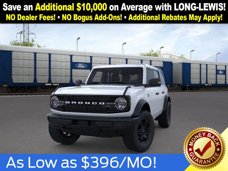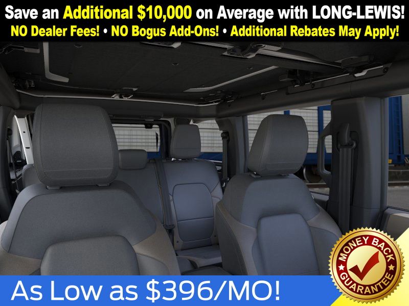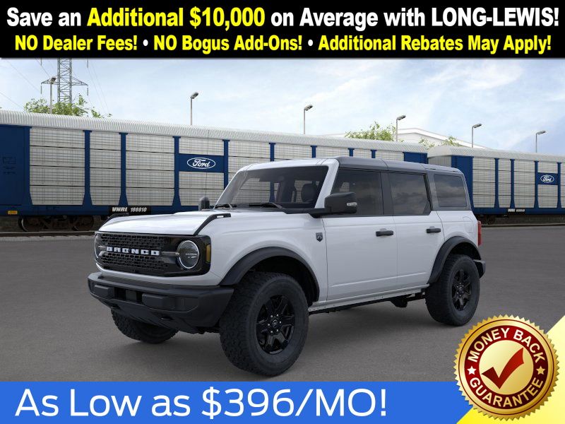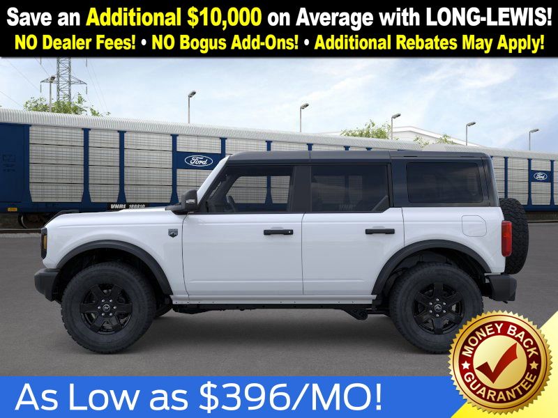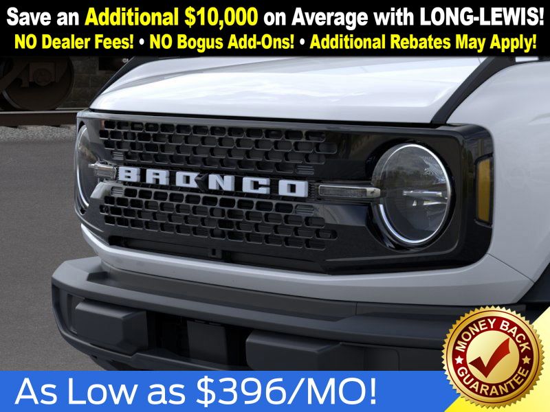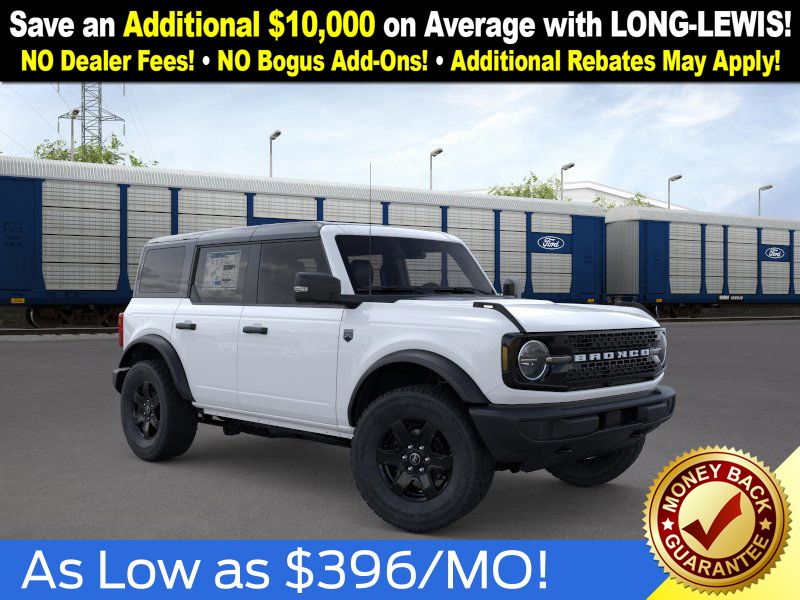 Oxford White 2025 Ford Bronco Big Bend NFT 4WD 7-Speed Manual 2.3L EcoBoost I-4 4-Wheel Disc Brakes, 4.46 Axle Ratio, 7 Speakers, ABS brakes, Air Conditioning, Alloy wheels, AM/FM radio: SiriusXM with 360L, AM/FM Stereo, Auto High-beam Headlights, Black Appearance Package, Black Molded-In-Color Door Handles, Black Molded-In-Color Fender Flares, Black Molded-In-Color Sideview Mirror Caps, Black-Painted Molded-In-Color Grille, Brake assist, Cloth Bucket Seats, Compass, Delay-off headlights, Driver door bin, Driver vanity mirror, Dual front impact airbags, Dual front side impact airbags, Electronic Stability Control, Emergency communication system: 911 Assist, Exterior Parking Camera Rear, Front anti-roll bar, Front Bucket Seats, Front Center Armrest, Front License Plate Bracket, Front reading lights, Front wheel independent suspension, Fully automatic headlights, Hard Top Sound Deadening Headliner, Heated door mirrors, Illuminated entry, Integrated roll-over protection, Internet access capable: FordPass Connect, Leather Shift Knob, Low tire pressure warning, Occupant sensing airbag, Outside temperature display, Overhead airbag, Overhead console, Panic alarm, Passenger door bin, Passenger vanity mirror, Power door mirrors, Power steering, Power windows, Radio data system, Rear-Window Defroster & Washer, Remote keyless entry, Security system, Shadow Black Painted Hard Top, SiriusXM w/360L, Speed control, Split folding rear seat, Steering wheel mounted audio controls, SYNC 4, Tachometer, Telescoping steering wheel, Tilt steering wheel, Traction control, Trip computer, Variably intermittent wipers, Wheels: 17" Carbonized Gray-Painted Aluminum.