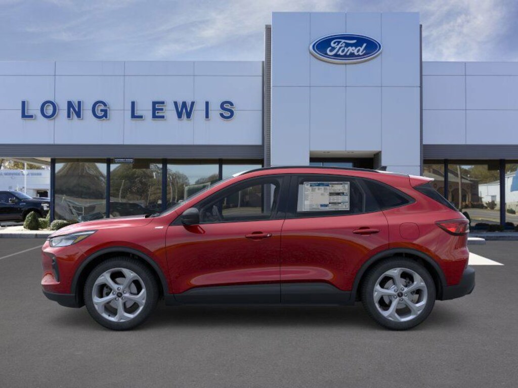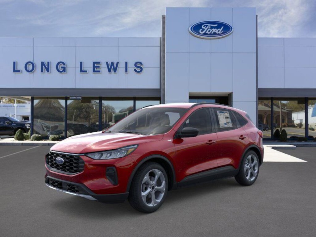 Rapid Red Metallic Tinted Clearcoat 2025 Ford Escape ST-Line fctp FWD 8-Speed Automatic 1.5L EcoBoost 3.81 Axle Ratio, 4-Wheel Disc Brakes, 6 Speakers, ABS brakes, Adaptive Cruise Control w/Stop-and-Go, Air Conditioning, Alloy wheels, AM/FM radio: SiriusXM, AM/FM Stereo, Auto High-beam Headlights, Automatic temperature control, Brake assist, Bumpers: body-color, Cold Weather Package, Compass, Connected Navigation, Delay-off headlights, Driver door bin, Driver vanity mirror, Dual front impact airbags, Dual front side impact airbags, Electronic Stability Control, Emergency communication system: SYNC 4 911 Assist, Ford Co-Pilot360 Assist+, FordPass Connect, Four wheel independent suspension, Front anti-roll bar, Front Bucket Seats, Front Center Armrest, Front dual zone A/C, Front License Plate Bracket, Front reading lights, Fully automatic headlights, Heated Front Row Seats, Heated Sideview Mirrors, Heated Steering Wheel, Illuminated entry, Intersection Assist, Knee airbag, Low tire pressure warning, Occupant sensing airbag, Outside temperature display, Overhead airbag, Overhead console, Panic alarm, Passenger door bin, Passenger vanity mirror, Power door mirrors, Power driver seat, Power steering, Power windows, Predictive Speed Assist, Radio data system, Rear anti-roll bar, Rear Parking Sensor, Rear reading lights, Rear seat center armrest, Rear window defroster, Rear window wiper, Rear-View Camera, Remote keyless entry, Remote Starter System, Speed control, Speed-sensing steering, Speed-Sensitive Wipers, Split folding rear seat, Spoiler, Sport steering wheel, Steering wheel mounted audio controls, SYNC 4, SYNC 4 w/Enhanced Voice Recognition, Tachometer, Tech Pack #1, Telescoping steering wheel, Tilt steering wheel, Traction control, Trip computer, Variably intermittent wipers, Vinyl/Cloth Front Sport Contour Bucket Seats, Wheels: 18" Rock Metallic Painted Aluminum.