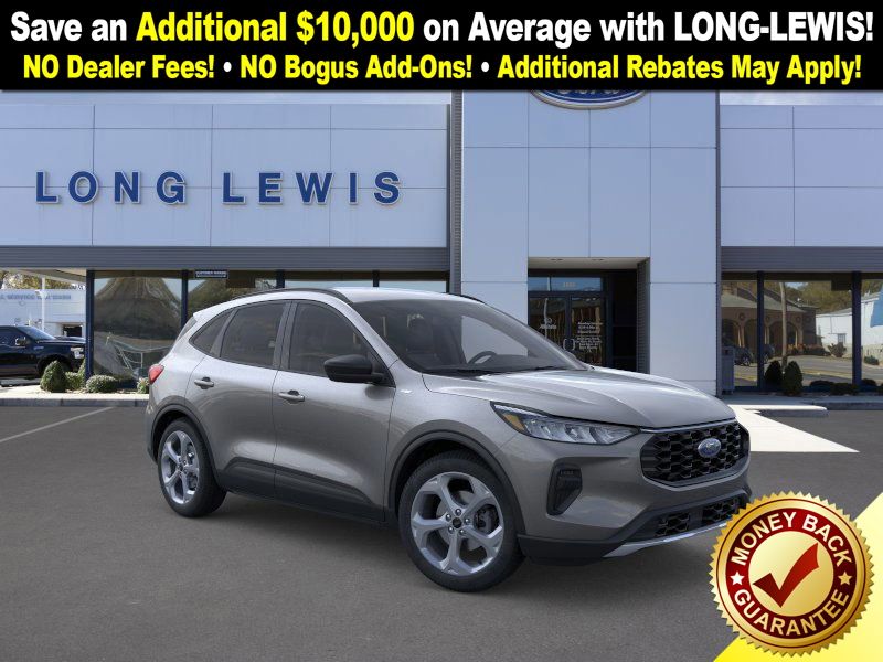 Carbonized Gray Metallic 2025 Ford Escape ST-Line fctp FWD 8-Speed Automatic 1.5L EcoBoost 3.81 Axle Ratio, 4-Wheel Disc Brakes, 6 Speakers, ABS brakes, Adaptive Cruise Control w/Stop-and-Go, Air Conditioning, Alloy wheels, AM/FM radio: SiriusXM, AM/FM Stereo, Auto High-beam Headlights, Automatic temperature control, Brake assist, Bumpers: body-color, Cold Weather Package, Compass, Connected Navigation, Delay-off headlights, Driver door bin, Driver vanity mirror, Dual front impact airbags, Dual front side impact airbags, Electronic Stability Control, Emergency communication system: SYNC 4 911 Assist, Ford Co-Pilot360 Assist+, FordPass Connect, Four wheel independent suspension, Front anti-roll bar, Front Bucket Seats, Front Center Armrest, Front dual zone A/C, Front License Plate Bracket, Front reading lights, Fully automatic headlights, Heated Front Row Seats, Heated Sideview Mirrors, Heated Steering Wheel, Illuminated entry, Intersection Assist, Knee airbag, Low tire pressure warning, Occupant sensing airbag, Outside temperature display, Overhead airbag, Overhead console, Panic alarm, Passenger door bin, Passenger vanity mirror, Power door mirrors, Power driver seat, Power Liftgate, Power steering, Power windows, Predictive Speed Assist, Radio data system, Rear anti-roll bar, Rear Parking Sensor, Rear reading lights, Rear seat center armrest, Rear window defroster, Rear window wiper, Rear-View Camera, Remote keyless entry, Remote Starter System, Speed control, Speed-sensing steering, Speed-Sensitive Wipers, Split folding rear seat, Spoiler, Sport steering wheel, Steering wheel mounted audio controls, SYNC 4, SYNC 4 w/Enhanced Voice Recognition, Tachometer, Tech Pack #1, Telescoping steering wheel, Tilt steering wheel, Traction control, Trip computer, Variably intermittent wipers, Vinyl/Cloth Front Sport Contour Bucket Seats, Wheels: 18" Rock Metallic Painted Aluminum.