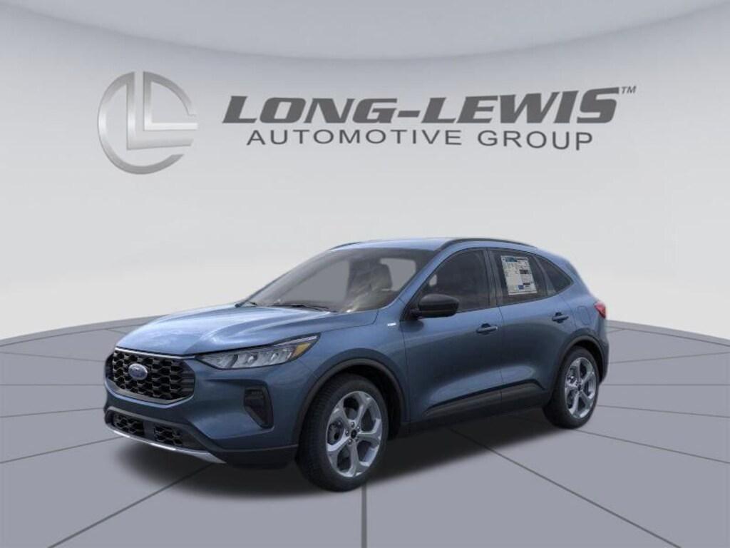 Vapor Blue Metallic 2025 Ford Escape ST-Line fctp FWD eCVT 2.5L iVCT 2.5L iVCT, eCVT, 3.81 Axle Ratio, 4-Wheel Disc Brakes, 6 Speakers, ABS brakes, Air Conditioning, Alloy wheels, AM/FM radio: SiriusXM, AM/FM Stereo, Auto High-beam Headlights, Automatic temperature control, Brake assist, Bumpers: body-color, Cold Weather Package, Compass, Delay-off headlights, Driver door bin, Driver vanity mirror, Dual front impact airbags, Dual front side impact airbags, Electronic Stability Control, Emergency communication system: SYNC 4 911 Assist, FordPass Connect, Four wheel independent suspension, Front anti-roll bar, Front Bucket Seats, Front Center Armrest, Front dual zone A/C, Front License Plate Bracket, Front reading lights, Fully automatic headlights, Heated Front Row Seats, Heated Sideview Mirrors, Heated Steering Wheel, Illuminated entry, Knee airbag, Low tire pressure warning, Occupant sensing airbag, Outside temperature display, Overhead airbag, Overhead console, Panic alarm, Passenger door bin, Passenger vanity mirror, Power door mirrors, Power driver seat, Power Liftgate, Power steering, Power windows, Radio data system, Rear anti-roll bar, Rear reading lights, Rear seat center armrest, Rear window defroster, Rear window wiper, Remote keyless entry, Remote Starter System, Speed control, Speed-sensing steering, Speed-Sensitive Wipers, Split folding rear seat, Spoiler, Sport steering wheel, Steering wheel mounted audio controls, SYNC 4, Tachometer, Telescoping steering wheel, Tilt steering wheel, Traction control, Trip computer, Variably intermittent wipers, Vinyl/Cloth Front Sport Contour Bucket Seats, Wheels: 18" Rock Metallic Painted Aluminum, 2.5L iVCT, eCVT.