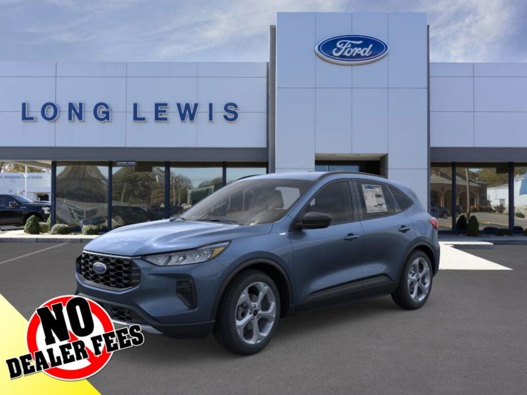 Vapor Blue Metallic 2025 Ford Escape ST-Line fctp FWD eCVT 2.5L iVCT 2.5L iVCT, eCVT, 3.81 Axle Ratio, 4-Wheel Disc Brakes, 6 Speakers, ABS brakes, Adaptive Cruise Control w/Stop-and-Go, Air Conditioning, Alloy wheels, AM/FM radio: SiriusXM, AM/FM Stereo, Auto High-beam Headlights, Automatic temperature control, Brake assist, Bumpers: body-color, Compass, Connected Navigation, Delay-off headlights, Driver door bin, Driver vanity mirror, Dual front impact airbags, Dual front side impact airbags, Electronic Stability Control, Emergency communication system: SYNC 4 911 Assist, Ford Co-Pilot360 Assist+, FordPass Connect, Four wheel independent suspension, Front anti-roll bar, Front Bucket Seats, Front Center Armrest, Front dual zone A/C, Front License Plate Bracket, Front reading lights, Fully automatic headlights, Illuminated entry, Intersection Assist, Knee airbag, Low tire pressure warning, Occupant sensing airbag, Outside temperature display, Overhead airbag, Overhead console, Panic alarm, Passenger door bin, Passenger vanity mirror, Power door mirrors, Power driver seat, Power Liftgate, Power steering, Power windows, Predictive Speed Assist, Radio data system, Rear anti-roll bar, Rear Parking Sensor, Rear reading lights, Rear seat center armrest, Rear window defroster, Rear window wiper, Rear-View Camera, Remote keyless entry, Speed control, Speed-sensing steering, Speed-Sensitive Wipers, Split folding rear seat, Spoiler, Sport steering wheel, Steering wheel mounted audio controls, SYNC 4, SYNC 4 w/Enhanced Voice Recognition, Tachometer, Tech Pack #1, Telescoping steering wheel, Tilt steering wheel, Traction control, Trip computer, Variably intermittent wipers, Vinyl/Cloth Front Sport Contour Bucket Seats, Wheels: 18" Rock Metallic Painted Aluminum, 2.5L iVCT, eCVT.