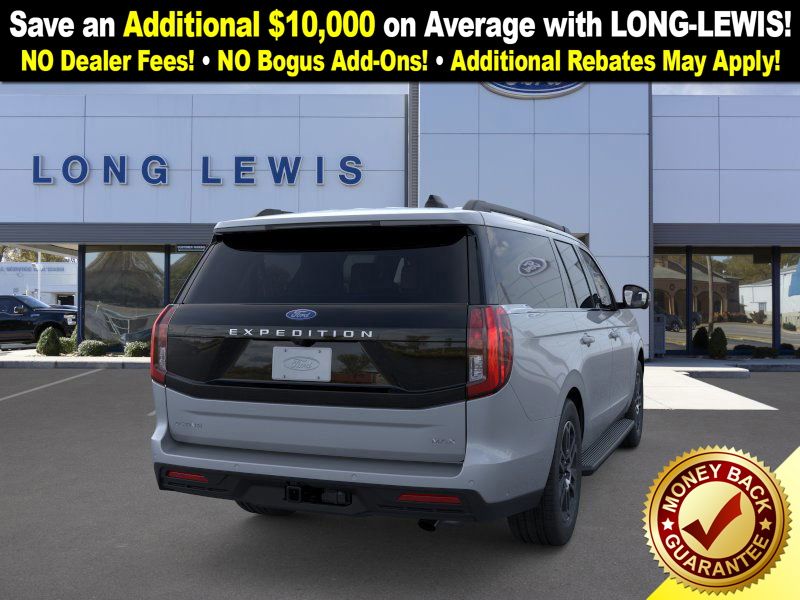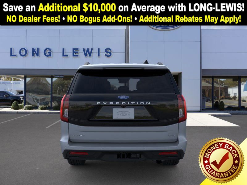 Glacier Gray Metallic TriCoat 2025 Ford Expedition Max Active FCT RWD 10-Speed Automatic EcoBoost 3.5L V6 GTDi DOHC 24V Twin Turbocharged 3.31 Axle Ratio, 3rd row seats: split-bench, 4-Wheel Disc Brakes, 6 Speakers, ABS brakes, ActiveX Front Heated Captain's Chairs, Air Conditioning, Alloy wheels, AM/FM radio: SiriusXM with 360L, Apple CarPlay/Android Auto, Auto High-beam Headlights, Auto-dimming Rear-View mirror, Automatic temperature control, Brake assist, Bumpers: body-color, Cloth Front Captain's Chairs, Compass, Delay-off headlights, Driver door bin, Driver vanity mirror, Dual front impact airbags, Dual front side impact airbags, Electronic Stability Control, Emergency communication system: 911 Assist, Exterior Parking Camera Rear, Four wheel independent suspension, Front anti-roll bar, Front Bucket Seats, Front Center Armrest, Front dual zone A/C, Front License Plate Bracket, Front reading lights, Fully automatic headlights, Heated door mirrors, Illuminated entry, Low tire pressure warning, Navigation System, Occupant sensing airbag, Outside temperature display, Overhead airbag, Overhead console, Panic alarm, Passenger door bin, Passenger vanity mirror, Power door mirrors, Power driver seat, Power passenger seat, Power steering, Power windows, Radio data system, Radio: AM/FM Stereo w/MP3 Capable, Rear air conditioning, Rear anti-roll bar, Rear reading lights, Rear window defroster, Rear window wiper, Reclining 3rd row seat, Remote keyless entry, Security system, SiriusXM w/360L, Speed control, Speed-sensing steering, Speed-Sensitive Wipers, Split folding rear seat, Spoiler, Steering wheel mounted audio controls, Tachometer, Telescoping steering wheel, Tilt steering wheel, Traction control, Trip computer, Variably intermittent wipers, Voltmeter, Wheels: 18" Dark Alloy Painted Aluminum.