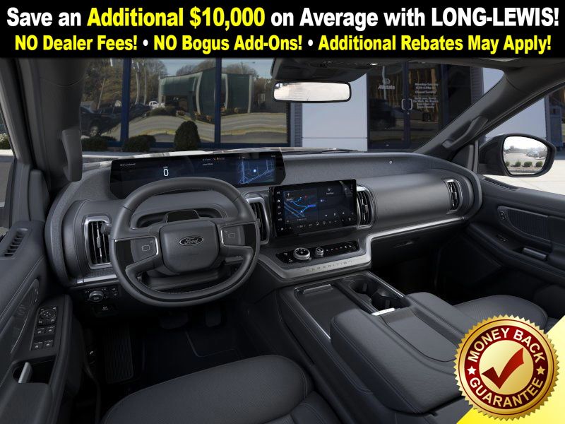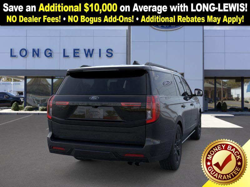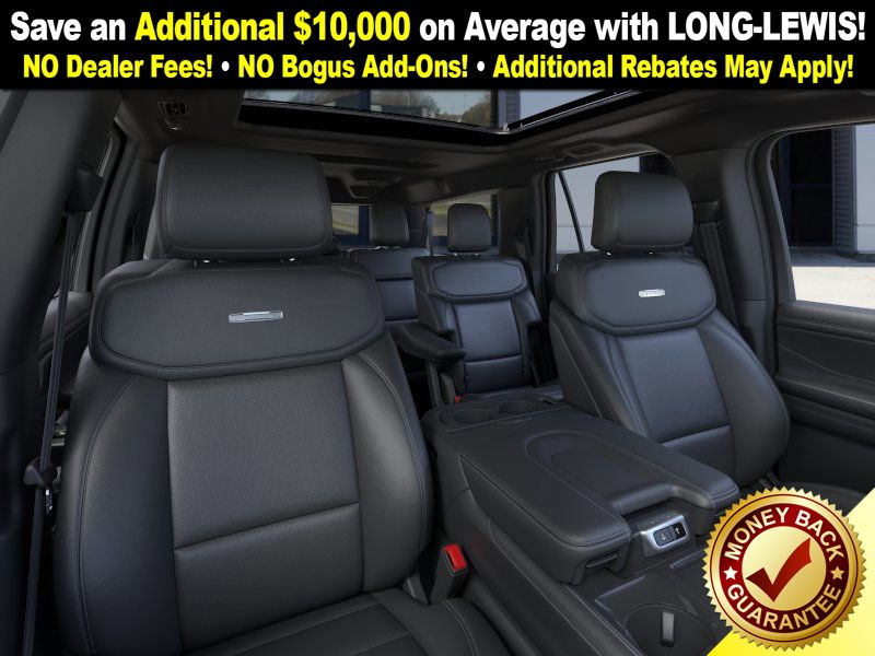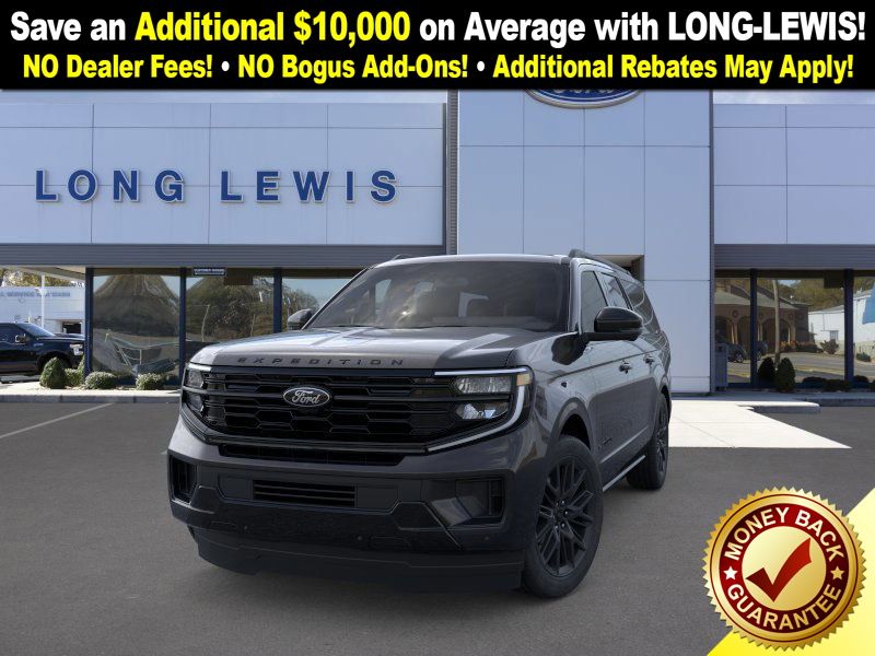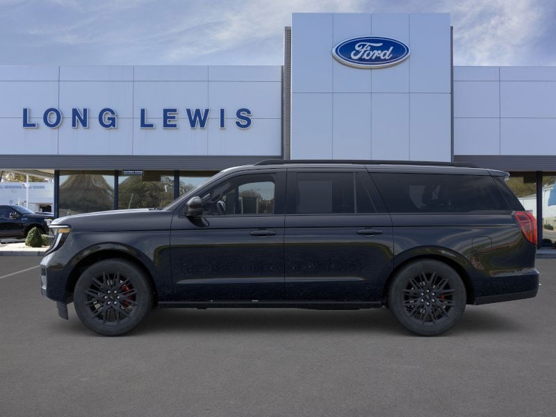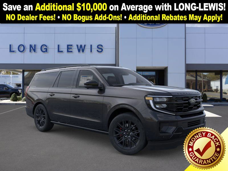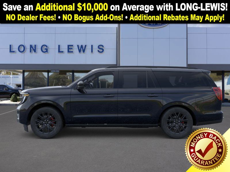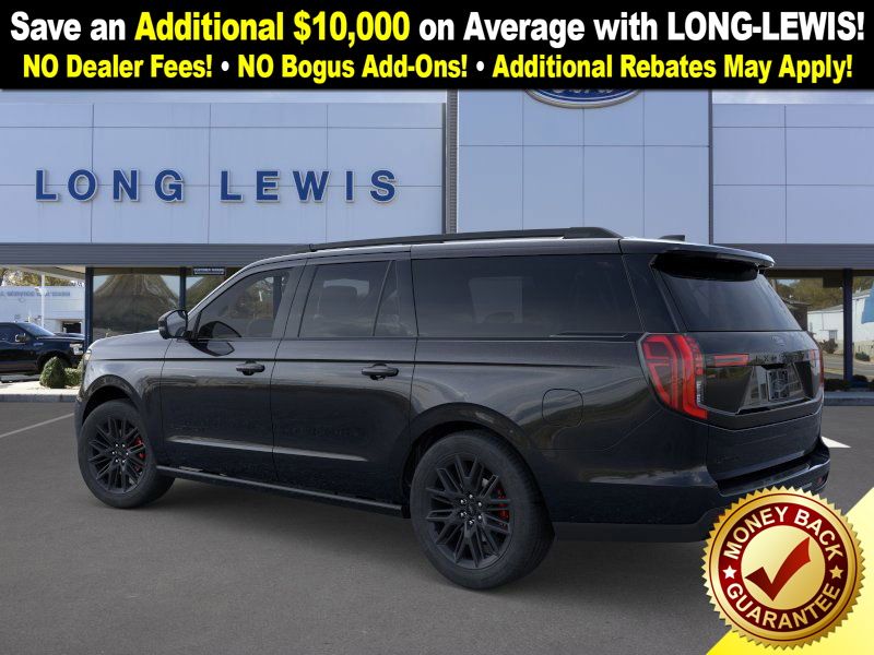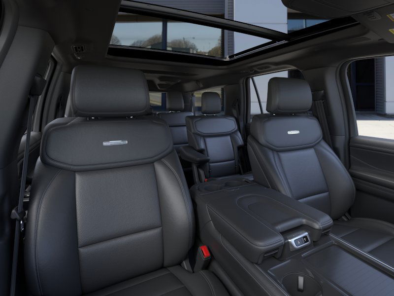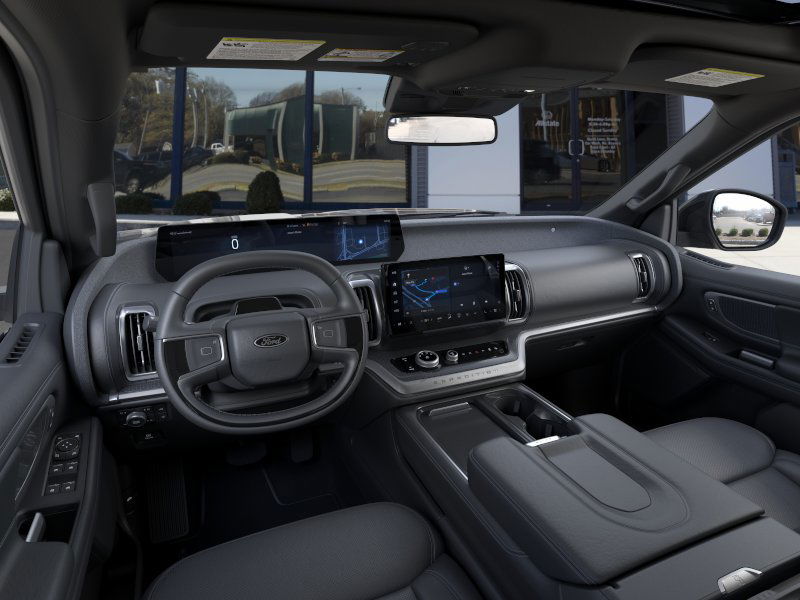 Agate Black Metallic 2025 Ford Expedition Max Platinum fctp 4WD 10-Speed Automatic 3.5L V6 10 Speakers, 2nd Row Power-Folding Captain's Chairs, 3.73 Axle Ratio, 3rd row seats: split-bench, 4-Wheel Disc Brakes, ABS brakes, Adjustable pedals, Air Conditioning, Alloy wheels, AM/FM radio: SiriusXM with 360L, Apple CarPlay/Android Auto, Auto High-beam Headlights, Auto-dimming door mirrors, Auto-dimming Rear-View mirror, Automatic temperature control, Black Belt Molding, Black Expedition Lettering On Hood, Black Headlamp Bezel w/Ebony Trim Applique, Black Platinum Badge On Tailgate, Black Roof Rails, Brake assist, Bumpers: body-color, Carbon Black Front Bumper/Fascia, Compass, Continuous Control Damping Suspension, Delay-off headlights, Driver door bin, Driver vanity mirror, Driver's Package, Dual front impact airbags, Dual front side impact airbags, Electronic Stability Control, Emergency communication system: 911 Assist, Engine Sound Enhancer, Exterior Parking Camera Rear, Four wheel independent suspension, Front anti-roll bar, Front Bucket Seats, Front Center Armrest, Front dual zone A/C, Front License Plate Bracket, Front reading lights, Fully automatic headlights, Garage door transmitter, Genuine wood dashboard insert, Genuine wood door panel insert, Heated & Ventilated Leather Front Captain's Chairs, Heated door mirrors, Heated front seats, Heated rear seats, Heated steering wheel, High Flow Exhaust System, Illuminated entry, Leather steering wheel, Low tire pressure warning, Memory seat, Multicontour Active Motion Lthr Frnt Captains Chairs, Navigation System, Occupant sensing airbag, Outside temperature display, Overhead airbag, Overhead console, Panic alarm, Passenger door bin, Passenger vanity mirror, Pedal memory, Power door mirrors, Power driver seat, Power moonroof: Vista Roof, Power passenger seat, Power steering, Power windows, Radio data system, Radio: B&O Sound System by Bang & Olufsen, Radio: B&O Unleashed Sound System by Bang & Olufsen, Rain sensing wipers, Rear air conditioning, Rear anti-roll bar, Rear reading lights, Rear Side Windows Laminated Glass, Rear window defroster, Rear window wiper, Reclining 3rd row seat, Red Brake Calipers, Remote keyless entry, Security system, Signature Grille Lighting, SiriusXM w/360L, Speed control, Speed-sensing steering, Speed-Sensitive Wipers, Split folding rear seat, Spoiler, Stealth Appearance Package, Stealth Performance Package, Steering wheel memory, Steering wheel mounted audio controls, Tachometer, Telescoping steering wheel, Tilt steering wheel, Traction control, Trip computer, Turn signal indicator mirrors, Variably intermittent wipers, Ventilated front seats, Voltmeter, Wheels: 20" Ebony Bright Machined Aluminum, Wheels: 22" Magnetite Painted Aluminum.