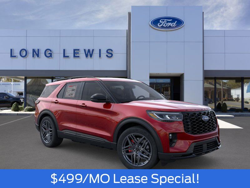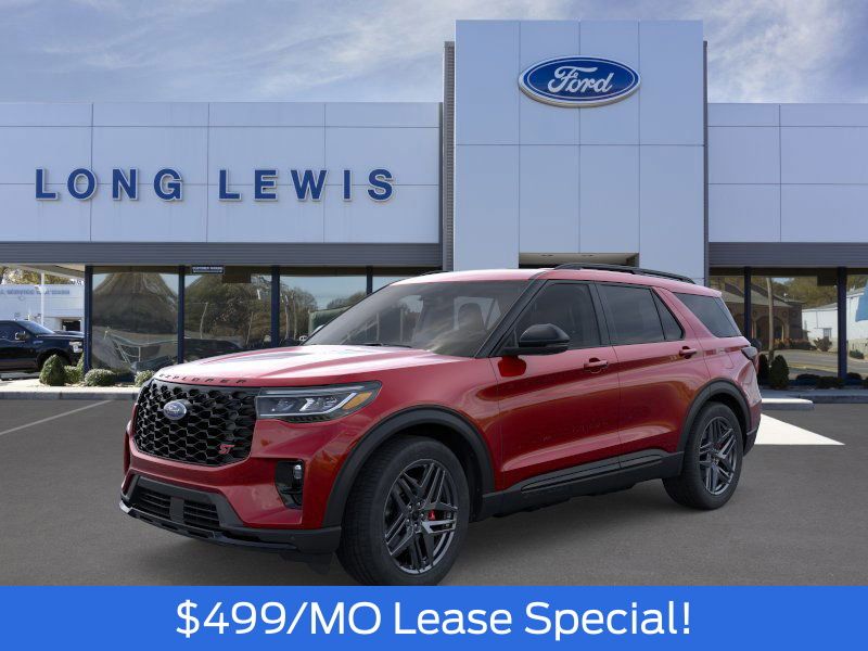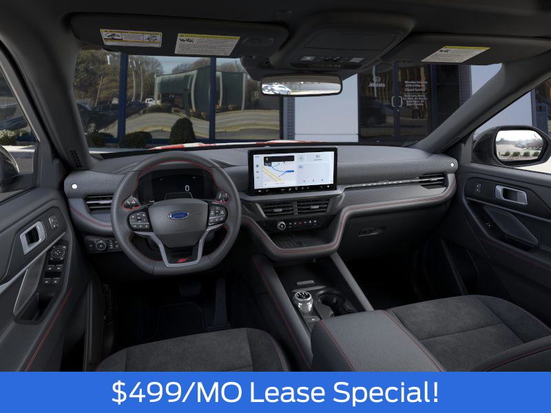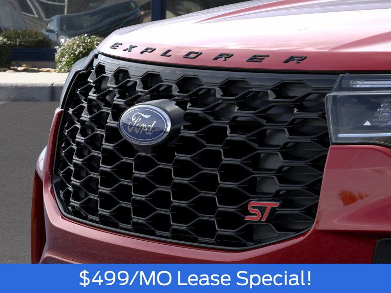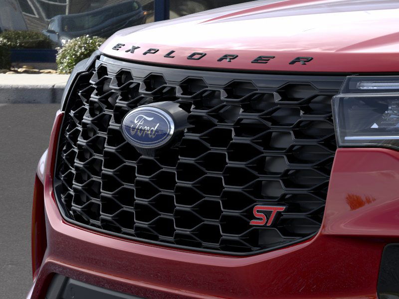 Rapid Red Metallic Tinted Clearcoat 2025 Ford Explorer ST fctp 4WD 10-Speed Automatic 3.0L EcoBoost V6 4WD, 10 Speakers, 3.58 Non-Limited Slip Rear Axle, 3rd row seats: bench, 4-Wheel Disc Brakes, ABS brakes, Air Conditioning, Alloy wheels, Apple CarPlay/Android Auto, Auto High-beam Headlights, Auto-dimming door mirrors, Auto-dimming Rear-View mirror, Automatic temperature control, B&O Sound System by Bang & Olufsen, Brake assist, Bumpers: body-color, Compass, Delay-off headlights, Driver door bin, Driver vanity mirror, Dual front impact airbags, Dual front side impact airbags, Electronic Stability Control, Emergency communication system: 911 Assist, Exterior Parking Camera Rear, Four wheel independent suspension, Front anti-roll bar, Front Bucket Seats, Front Center Armrest, Front dual zone A/C, Front fog lights, Front License Plate Bracket, Front reading lights, Fully automatic headlights, Garage door transmitter, Heated door mirrors, Heated front seats, Heated rear seats, Heated steering wheel, Heated/Ventilated Miko Sport Captain's Chairs, Illuminated entry, Knee airbag, Leather steering wheel, Low tire pressure warning, Memory seat, Multicontour Seats w/Front Active Motion, Navigation System, Occupant sensing airbag, Outside temperature display, Overhead airbag, Overhead console, Panic alarm, Panoramic Vista Roof w/Power Shade, Passenger door bin, Passenger vanity mirror, Power door mirrors, Power driver seat, Power Liftgate, Power passenger seat, Power steering, Power windows, Radio: B&O Sound System by Bang & Olufsen, Rain sensing wipers, Rear air conditioning, Rear anti-roll bar, Rear reading lights, Rear window defroster, Rear window wiper, Remote keyless entry, SecuriCode Keyless Entry Keypad, Security system, Speed control, Speed-sensing steering, Speed-Sensitive Wipers, Split folding rear seat, Spoiler, Sport steering wheel, Steering wheel mounted audio controls, Sun and Sound Package, Tachometer, Telescoping steering wheel, Tilt steering wheel, Traction control, Trip computer, Turn signal indicator mirrors, Variably intermittent wipers, Ventilated front seats, Wheels: 21" Magnetite-Painted Aluminum, 4WD.