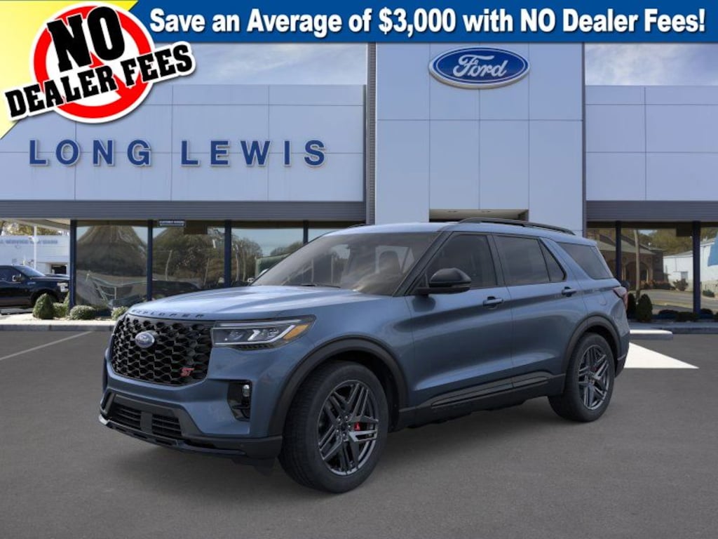 Vapor Blue Metallic 2025 Ford Explorer ST 4WD 10-Speed Automatic 3.0L EcoBoost V6 4WD, 10 Speakers, 3.58 Non-Limited Slip Rear Axle, 3rd row seats: bench, 4-Wheel Disc Brakes, ABS brakes, Air Conditioning, Alloy wheels, Apple CarPlay/Android Auto, Auto High-beam Headlights, Auto-dimming door mirrors, Auto-dimming Rear-View mirror, Automatic temperature control, B&O Sound System by Bang & Olufsen, Brake assist, Bumpers: body-color, Compass, Delay-off headlights, Driver door bin, Driver vanity mirror, Dual front impact airbags, Dual front side impact airbags, Electronic Stability Control, Emergency communication system: 911 Assist, Exterior Parking Camera Rear, Four wheel independent suspension, Front anti-roll bar, Front Bucket Seats, Front Center Armrest, Front dual zone A/C, Front fog lights, Front License Plate Bracket, Front reading lights, Fully automatic headlights, Garage door transmitter, Heated door mirrors, Heated front seats, Heated rear seats, Heated steering wheel, Heated/Ventilated Miko Sport Captain's Chairs, Illuminated entry, Knee airbag, Leather steering wheel, Low tire pressure warning, Memory seat, Multicontour Seats w/Front Active Motion, Navigation System, Occupant sensing airbag, Outside temperature display, Overhead airbag, Overhead console, Panic alarm, Panoramic Vista Roof w/Power Shade, Passenger door bin, Passenger vanity mirror, Power door mirrors, Power driver seat, Power Liftgate, Power passenger seat, Power steering, Power windows, Radio: B&O Sound System by Bang & Olufsen, Rain sensing wipers, Rear air conditioning, Rear anti-roll bar, Rear reading lights, Rear window defroster, Rear window wiper, Remote keyless entry, SecuriCode Keyless Entry Keypad, Security system, Speed control, Speed-sensing steering, Speed-Sensitive Wipers, Split folding rear seat, Spoiler, Sport steering wheel, Steering wheel mounted audio controls, Sun and Sound Package, Tachometer, Telescoping steering wheel, Tilt steering wheel, Traction control, Trip computer, Turn signal indicator mirrors, Variably intermittent wipers, Ventilated front seats, Wheels: 21" Magnetite-Painted Aluminum, 4WD.