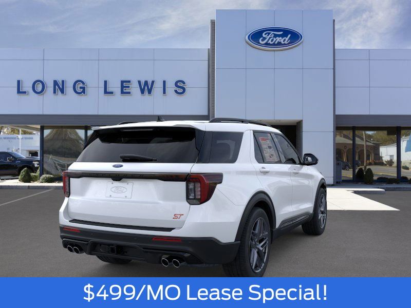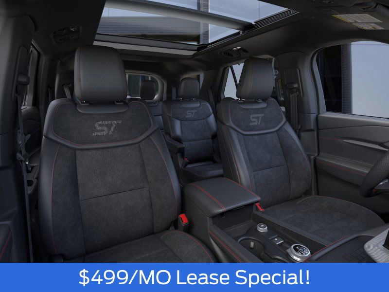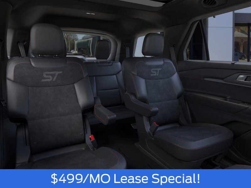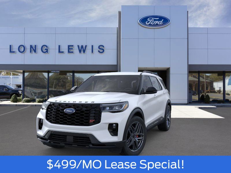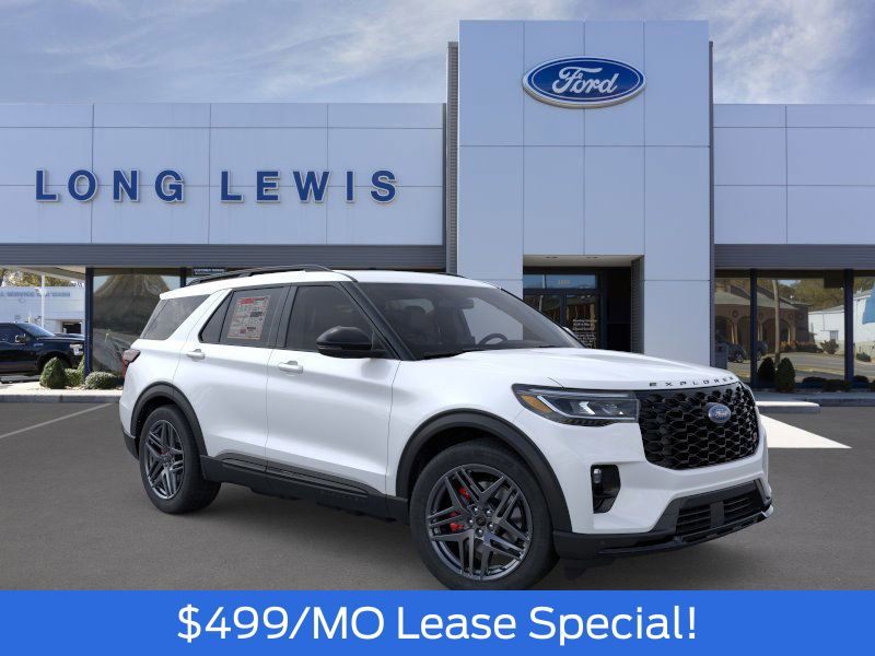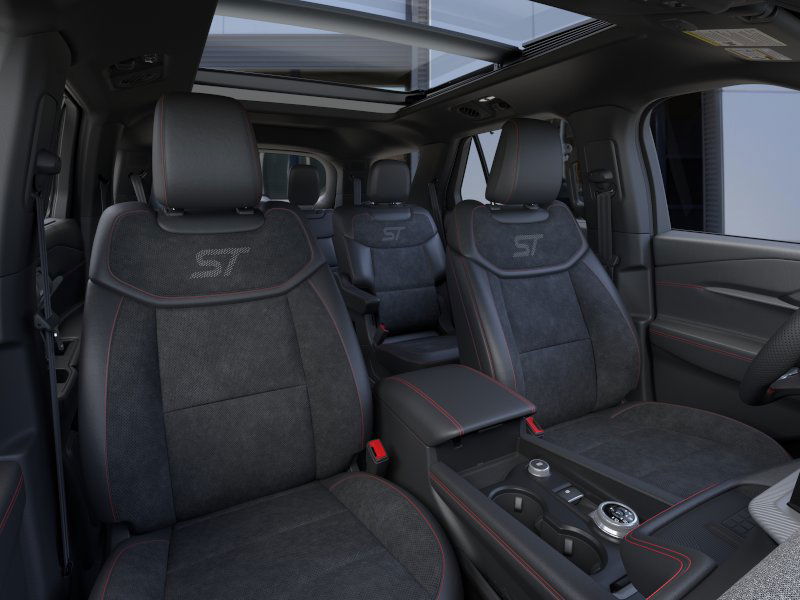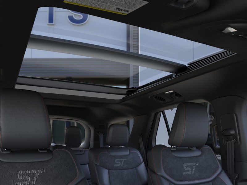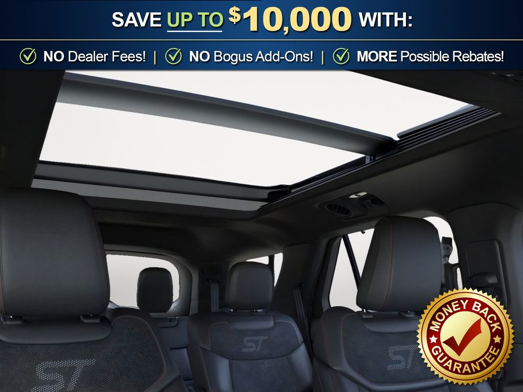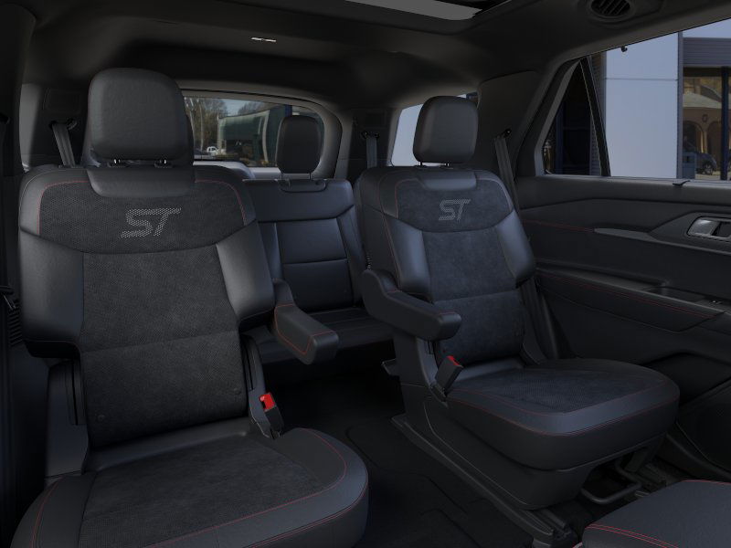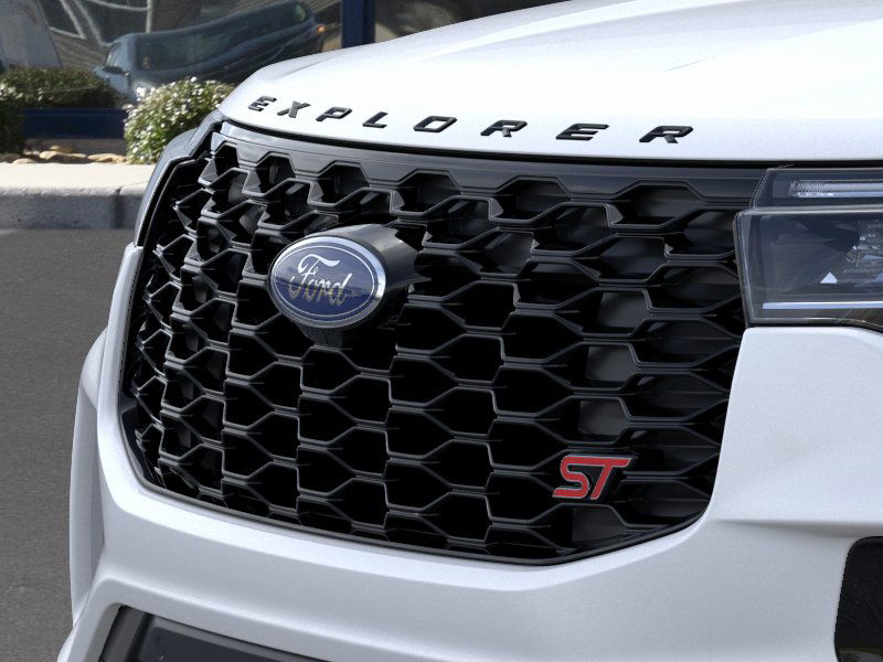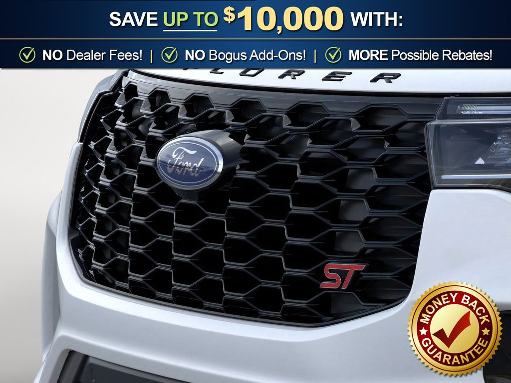 Star White Metallic Tri-Coat 2025 Ford Explorer ST fctp 4WD 10-Speed Automatic 3.0L EcoBoost V6 4WD, 10 Speakers, 3.58 Non-Limited Slip Rear Axle, 3rd row seats: bench, 4-Wheel Disc Brakes, ABS brakes, Air Conditioning, Alloy wheels, AM/FM radio: SiriusXM with 360L, Apple CarPlay/Android Auto, Auto High-beam Headlights, Auto-dimming door mirrors, Auto-dimming Rear-View mirror, Automatic temperature control, B&O Sound System by Bang & Olufsen, Brake assist, Bumpers: body-color, Compass, Delay-off headlights, Driver door bin, Driver vanity mirror, Dual front impact airbags, Dual front side impact airbags, Electronic Stability Control, Emergency communication system: 911 Assist, Exterior Parking Camera Rear, Four wheel independent suspension, Front anti-roll bar, Front Bucket Seats, Front Center Armrest, Front dual zone A/C, Front fog lights, Front License Plate Bracket, Front reading lights, Fully automatic headlights, Garage door transmitter, Heated door mirrors, Heated front seats, Heated rear seats, Heated steering wheel, Heated/Ventilated Miko Sport Captain's Chairs, Illuminated entry, Knee airbag, Leather steering wheel, Low tire pressure warning, Memory seat, Multicontour Seats w/Front Active Motion, Navigation System, Occupant sensing airbag, Outside temperature display, Overhead airbag, Overhead console, Panic alarm, Panoramic Vista Roof w/Power Shade, Passenger door bin, Passenger vanity mirror, Power door mirrors, Power driver seat, Power Liftgate, Power passenger seat, Power steering, Power windows, Radio: B&O Sound System by Bang & Olufsen, Rain sensing wipers, Rear air conditioning, Rear anti-roll bar, Rear reading lights, Rear window defroster, Rear window wiper, Remote keyless entry, SecuriCode Keyless Entry Keypad, Security system, Speed control, Speed-sensing steering, Speed-Sensitive Wipers, Split folding rear seat, Spoiler, Sport steering wheel, Steering wheel mounted audio controls, Sun and Sound Package, Tachometer, Telescoping steering wheel, Tilt steering wheel, Traction control, Trip computer, Turn signal indicator mirrors, Variably intermittent wipers, Ventilated front seats, Wheels: 21" Magnetite-Painted Aluminum, 4WD.