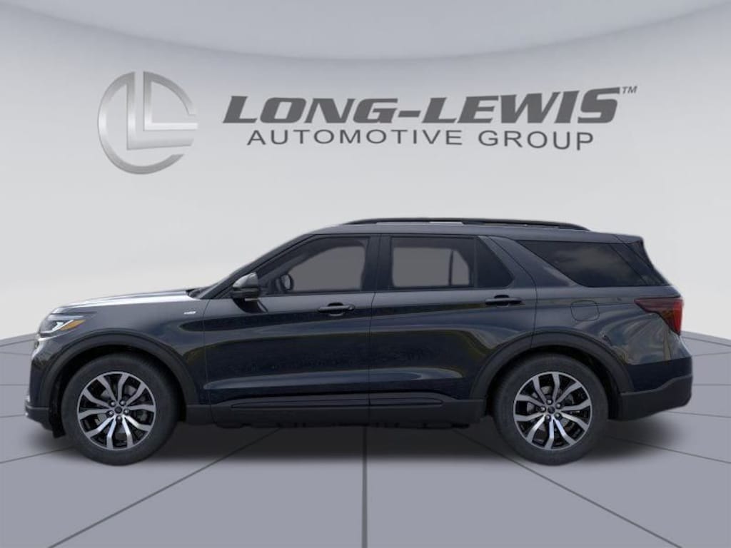 Black Metallic 2025 Ford Explorer ST-Line fctp RWD 10-Speed Automatic 2.3L EcoBoost I-4 10 Speakers, 110V/150W AC Power Outlet, 2nd Row Heated Seats, 3.58 Non-Limited Slip Rear Axle, 3rd row seats: bench, 4-Wheel Disc Brakes, ABS brakes, Air Conditioning, Alloy wheels, AM/FM radio: SiriusXM with 360L, Ambient Lighting, Apple CarPlay/Android Auto, Auto High-beam Headlights, Auto-Dimming Interior Rear-View Mirror, Automatic temperature control, Brake assist, Bumpers: body-color, Compass, Delay-off headlights, Driver door bin, Driver vanity mirror, Dual front impact airbags, Dual front side impact airbags, Electronic Stability Control, Emergency communication system: 911 Assist, Equipment Group 300A Standard Package, Exterior Parking Camera Rear, Four wheel independent suspension, Front anti-roll bar, Front Bucket Seats, Front Center Armrest, Front dual zone A/C, Front fog lights, Front reading lights, Fully automatic headlights, Garage door transmitter, Heated door mirrors, Heated front seats, Heated steering wheel, Heated Unique Cloth Captain's Chairs, Illuminated entry, Knee airbag, Leather steering wheel, Low tire pressure warning, Memory Driver's Seat, Navigation System, Occupant sensing airbag, Outside temperature display, Overhead airbag, Overhead console, Panic alarm, Passenger door bin, Passenger vanity mirror, Power door mirrors, Power driver seat, Power Liftgate, Power passenger seat, Power steering, Power windows, Power-Folding Sideview Mirrors w/Autofold, Premium Package, Radio: B&O Sound System by Bang & Olufsen, Rain-Sensing Wipers (Front Only), Rear air conditioning, Rear anti-roll bar, Rear reading lights, Rear window defroster, Rear window wiper, Remote keyless entry, Security system, Speed control, Speed-sensing steering, Speed-Sensitive Wipers, Split folding rear seat, Spoiler, Steering wheel mounted audio controls, Tachometer, Telescoping steering wheel, Tilt steering wheel, Traction control, Trip computer, Variably intermittent wipers, Wheels: 20" Ebony-Painted Machined Aluminum, Wireless Charging Pad.
