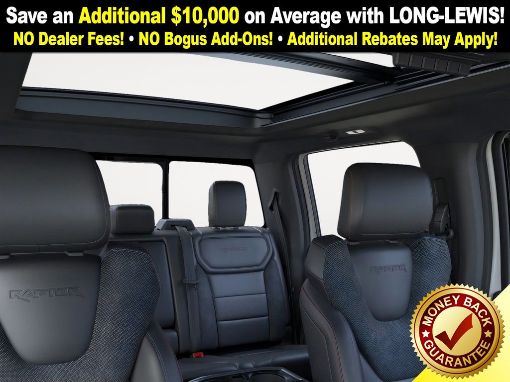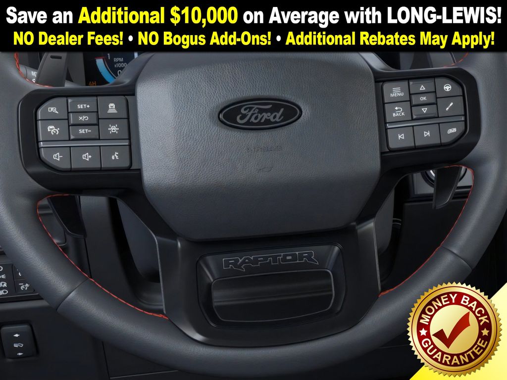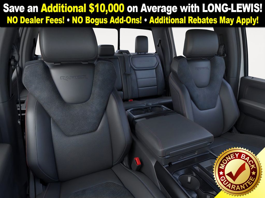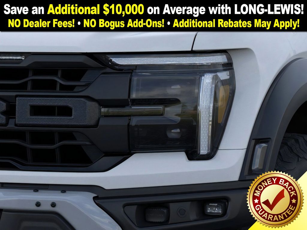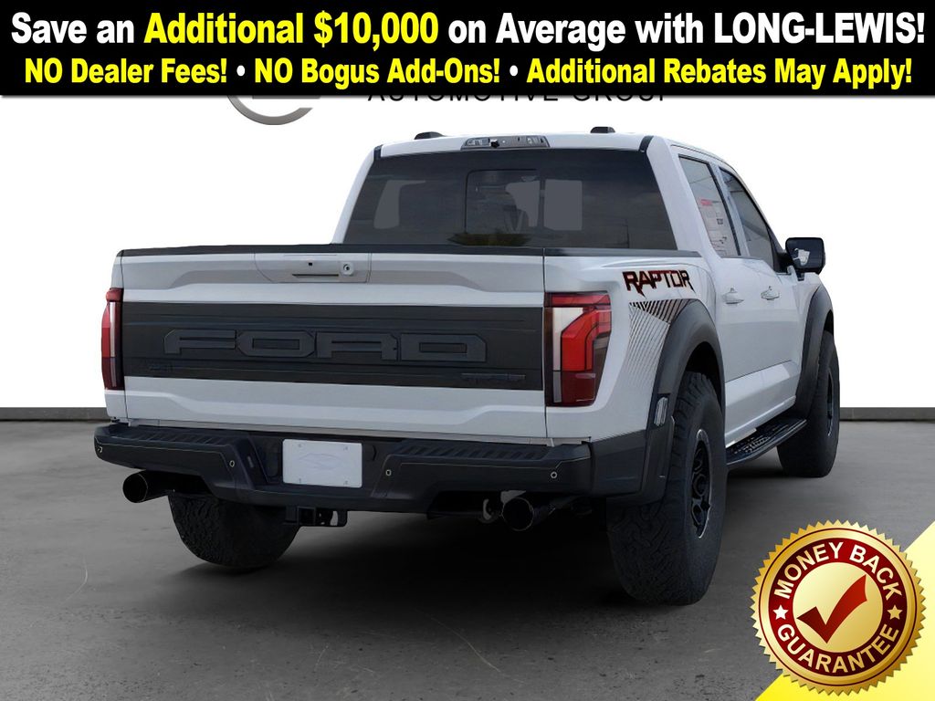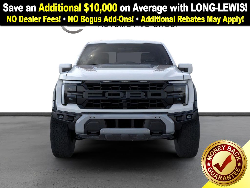 Space White Metallic 2025 Ford F-150 Raptor NFT 4WD 10-Speed Automatic 3.5L V6 EcoBoost 4WD, 14 Speakers, 17" Cast Aluminum Wheels, 4-Wheel Disc Brakes, ABS brakes, Adjustable pedals, Air Conditioning, Alloy wheels, AM/FM radio: SiriusXM with 360L, Auto High-beam Headlights, Auto tilt-away steering wheel, Auto-dimming door mirrors, Auto-dimming Rear-View mirror, Automatic temperature control, Brake assist, Bumpers: body-color, Carbon Fiber Interior Appliques, Compass, Delay-off headlights, Driver door bin, Driver vanity mirror, Dual front impact airbags, Dual front side impact airbags, Dual Valve Shocks, Electronic Locking w/4.10 Axle Ratio, Electronic Stability Control, Emergency communication system: SYNC 4 911 Assist, Equipment Group 802A Raptor 37, Front anti-roll bar, Front Bucket Seats, Front Center Armrest, Front dual zone A/C, Front fog lights, Front License Plate Bracket, Front reading lights, Front wheel independent suspension, Fully automatic headlights, Garage door transmitter, Heads-Up Display, Heated door mirrors, Heated front seats, Heated rear seats, Heated steering wheel, Illuminated entry, Internet access capable: FordPass Connect 5G, Lane Departure Warning System, Leather steering wheel, Leather Trimmed Seats, Low tire pressure warning, Memory seat, Modular Front Bumper, Navigation system: Connected Navigation, Occupant sensing airbag, Outside temperature display, Overhead airbag, Overhead console, Panic alarm, Passenger door bin, Passenger vanity mirror, Pedal memory, Power door mirrors, Power driver seat, Power passenger seat, Power steering, Power windows, Radio data system, Radio: B&O Unleashed Sound System by Bang & Olufsen, Rain sensing wipers, Rear reading lights, Rear step bumper, Rear window defroster, RECARO Alcantara Suede Front Seats, RECARO w/Code Orange Stitching Front Seats, Remote keyless entry, Security system, Speed control, Speed-sensing steering, Split folding rear seat, Steering wheel memory, Steering wheel mounted audio controls, SYNC 4 w/Enhanced Voice Recognition, Tachometer, Telescoping steering wheel, Tilt steering wheel, Traction control, Trip computer, Turn signal indicator mirrors, Twin Panel Moonroof, Variably intermittent wipers, Ventilated front seats, Wheels: Raptor 37 Unique 17" Cast Aluminum, 4WD.