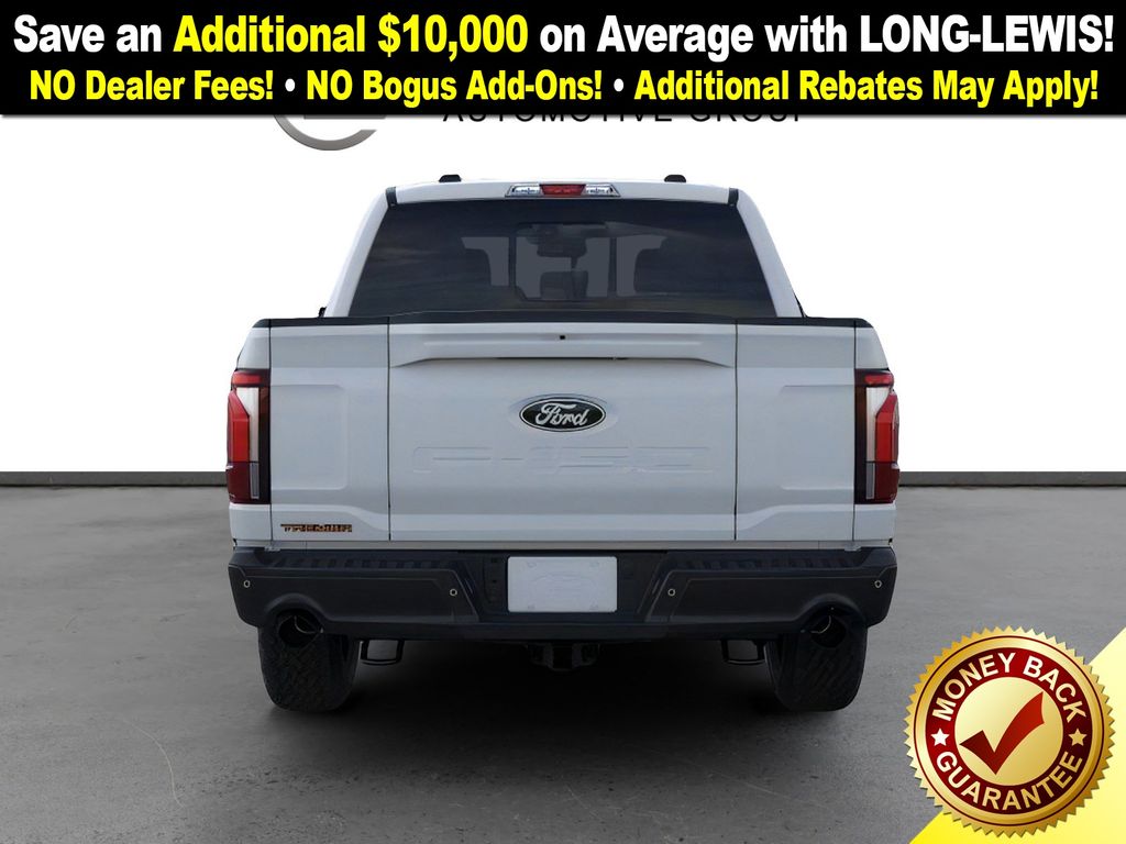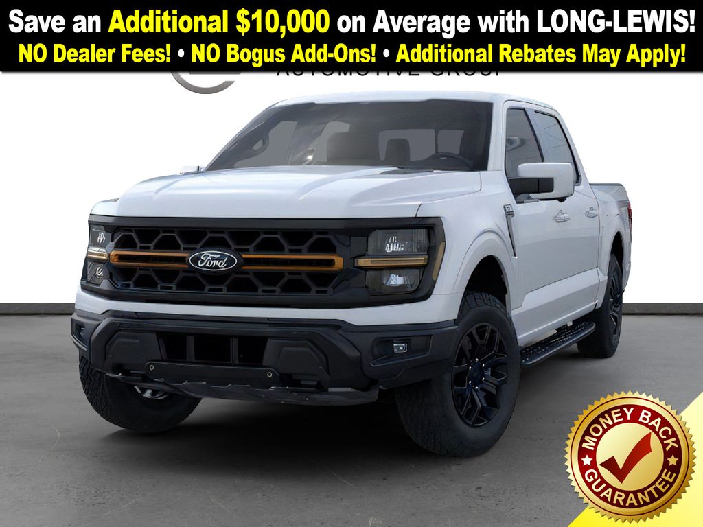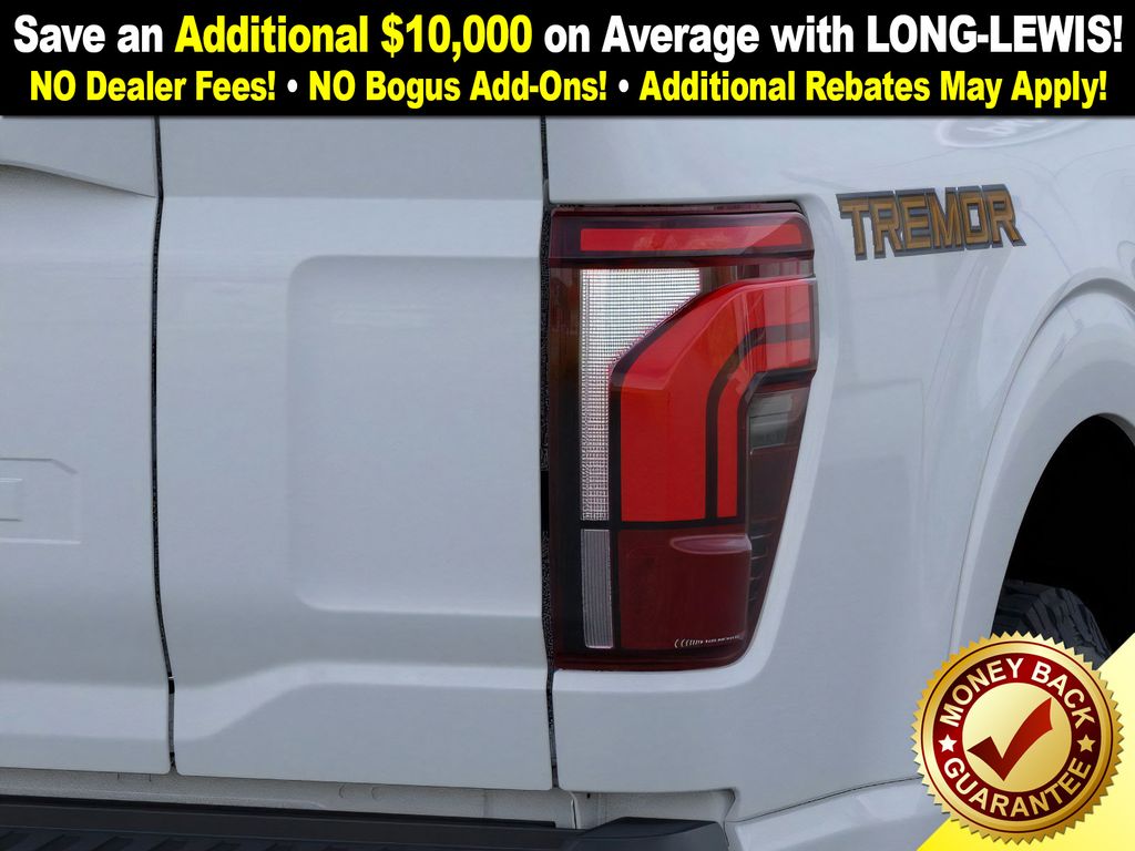 Space White Metallic 2025 Ford F-150 Tremor fctp 4WD 10-Speed Automatic 5.0L V8 4WD, 4-Wheel Disc Brakes, 8 Speakers, ABS brakes, Adjustable pedals, Air Conditioning, Alloy wheels, AM/FM radio: SiriusXM with 360L, Auto High-beam Headlights, Auto-dimming door mirrors, Auto-dimming Rear-View mirror, Automatic temperature control, Brake assist, Bumpers: body-color, Compass, Delay-off headlights, Driver door bin, Driver vanity mirror, Dual front impact airbags, Dual front side impact airbags, Electronic Locking w/3.73 Axle Ratio, Electronic Stability Control, Emergency communication system: SYNC 4 911 Assist, Front anti-roll bar, Front Bucket Seats, Front Center Armrest, Front dual zone A/C, Front fog lights, Front License Plate Bracket, Front reading lights, Front wheel independent suspension, Fully automatic headlights, GVWR: 7,100 lbs Payload Package, Heated door mirrors, Heated front seats, Illuminated entry, Low tire pressure warning, Navigation system: Connected Navigation, Occupant sensing airbag, Outside temperature display, Overhead airbag, Overhead console, Panic alarm, Passenger door bin, Passenger vanity mirror, Power door mirrors, Power driver seat, Power passenger seat, Power steering, Power windows, Radio data system, Radio: B&O Sound System by Bang & Olufsen, Rear reading lights, Rear step bumper, Rear window defroster, Remote keyless entry, Security system, Speed control, Split folding rear seat, Steering wheel mounted audio controls, SYNC 4 w/Enhanced Voice Recognition, Tachometer, Telescoping steering wheel, Tilt steering wheel, Traction control, Trip computer, Turn signal indicator mirrors, Twin Panel Moonroof, Unique Sport Cloth 40/Console/40 Power Front Seat, Unique Tremor Leather-Trimmed Bucket Seats, Variably intermittent wipers, Voltmeter, Wheels: 18" Alloy w/Dark Matte Finish, 4WD.