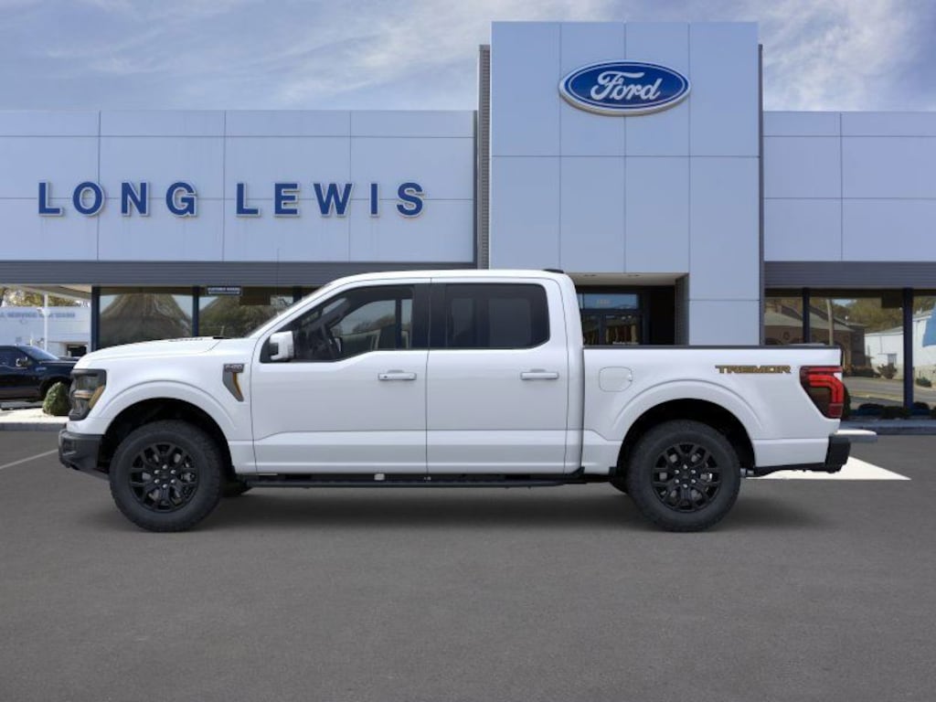 Space White Metallic 2025 Ford F-150 Tremor 4WD 10-Speed Automatic 5.0L V8 4WD, 4-Wheel Disc Brakes, 8 Speakers, ABS brakes, Adjustable pedals, Air Conditioning, Alloy wheels, AM/FM radio: SiriusXM with 360L, Auto High-beam Headlights, Auto-dimming door mirrors, Auto-dimming Rear-View mirror, Automatic temperature control, Brake assist, Bumpers: body-color, Compass, Delay-off headlights, Driver door bin, Driver vanity mirror, Dual front impact airbags, Dual front side impact airbags, Electronic Locking w/3.73 Axle Ratio, Electronic Stability Control, Emergency communication system: SYNC 4 911 Assist, Front anti-roll bar, Front Bucket Seats, Front Center Armrest, Front dual zone A/C, Front fog lights, Front License Plate Bracket, Front reading lights, Front wheel independent suspension, Fully automatic headlights, GVWR: 7,100 lbs Payload Package, Heated door mirrors, Heated front seats, Illuminated entry, Low tire pressure warning, Navigation system: Connected Navigation, Occupant sensing airbag, Outside temperature display, Overhead airbag, Overhead console, Panic alarm, Passenger door bin, Passenger vanity mirror, Power door mirrors, Power driver seat, Power passenger seat, Power steering, Power windows, Radio data system, Radio: B&O Sound System by Bang & Olufsen, Rear reading lights, Rear step bumper, Rear window defroster, Remote keyless entry, Security system, Speed control, Split folding rear seat, Steering wheel mounted audio controls, SYNC 4 w/Enhanced Voice Recognition, Tachometer, Telescoping steering wheel, Tilt steering wheel, Traction control, Trip computer, Turn signal indicator mirrors, Twin Panel Moonroof, Unique Sport Cloth 40/Console/40 Power Front Seat, Unique Tremor Leather-Trimmed Bucket Seats, Variably intermittent wipers, Voltmeter, Wheels: 18" Alloy w/Dark Matte Finish, 4WD.