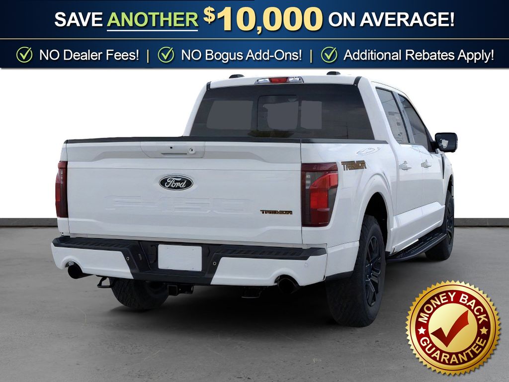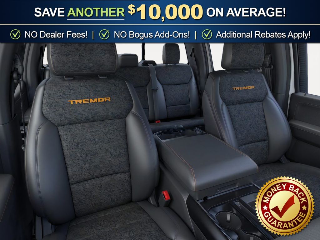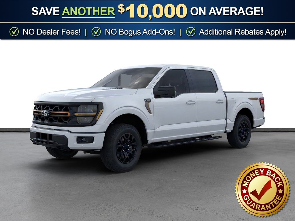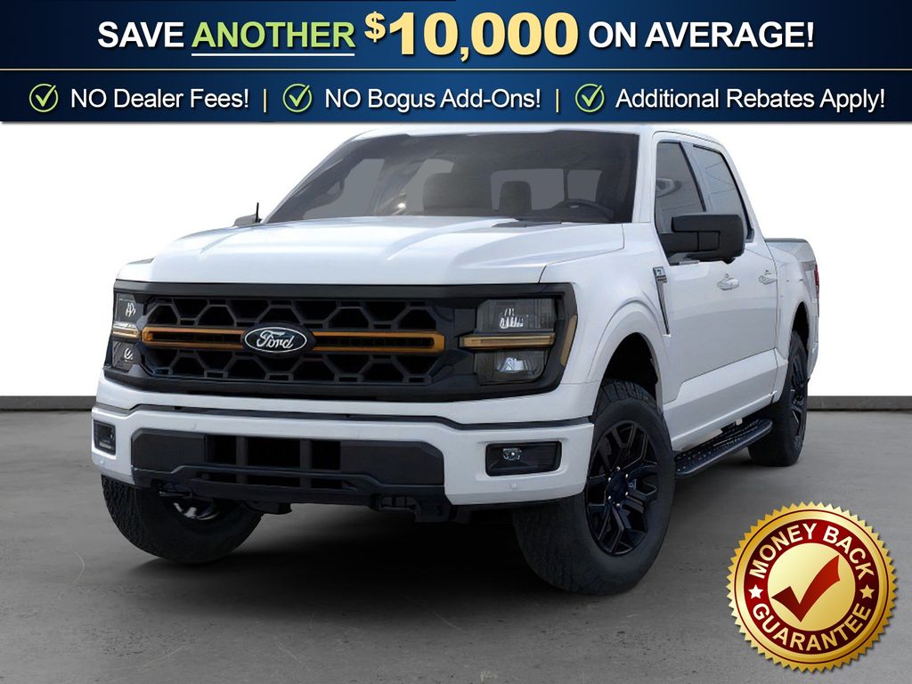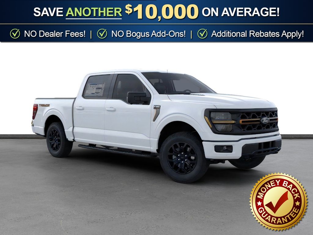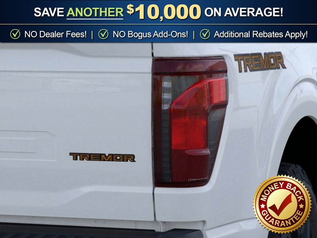 Oxford White 2025 Ford F-150 Tremor fctp 4WD 10-Speed Automatic 3.5L V6 EcoBoost 4WD, 4 Pickup Box Tie-Down Plates, 4-Wheel Disc Brakes, 8 Speakers, ABS brakes, Adjustable pedals, Air Conditioning, Alloy wheels, AM/FM radio: SiriusXM with 360L, Auto High-beam Headlights, Auto-dimming door mirrors, Auto-dimming Rear-View mirror, Automatic temperature control, Bed Utility Package, Brake assist, Bumpers: body-color, Compass, Delay-off headlights, Driver door bin, Driver vanity mirror, Dual front impact airbags, Dual front side impact airbags, Electronic Locking w/3.73 Axle Ratio, Electronic Stability Control, Emergency communication system: SYNC 4 911 Assist, Front anti-roll bar, Front Bucket Seats, Front Center Armrest, Front dual zone A/C, Front fog lights, Front License Plate Bracket, Front reading lights, Front wheel independent suspension, Fully automatic headlights, GVWR: 7,100 lbs Payload Package, Heated door mirrors, Heated front seats, Illuminated entry, LED Box Lighting, Low tire pressure warning, Navigation system: Connected Navigation, Occupant sensing airbag, Outside temperature display, Overhead airbag, Overhead console, Panic alarm, Passenger door bin, Passenger vanity mirror, Power door mirrors, Power driver seat, Power passenger seat, Power steering, Power Tailgate, Power windows, Radio data system, Radio: B&O Sound System by Bang & Olufsen, Rear reading lights, Rear step bumper, Rear window defroster, Remote keyless entry, Security system, Speed control, Split folding rear seat, Steering wheel mounted audio controls, SYNC 4 w/Enhanced Voice Recognition, Tachometer, Tailgate Step w/Tailgate Work Surface, Telescoping steering wheel, Tilt steering wheel, Traction control, Trip computer, Turn signal indicator mirrors, Unique Sport Cloth 40/Console/40 Power Front Seat, Variably intermittent wipers, Voltmeter, Wheels: 18" Alloy w/Dark Matte Finish, 4WD.