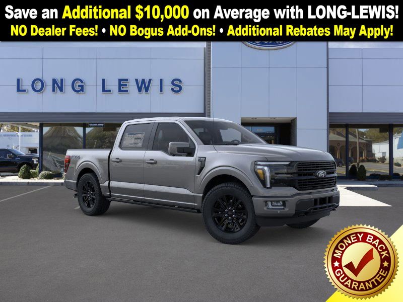 Carbonized Gray Metallic 2025 Ford F-150 Platinum fctp 4WD 10-Speed Automatic 3.5L V6 EcoBoost 4WD, 4-Wheel Disc Brakes, 4x4 FX4 Off-Road Bodyside Decal, 8 Speakers, ABS brakes, Adjustable pedals, Air Conditioning, Alloy wheels, AM/FM radio: SiriusXM with 360L, Auto High-beam Headlights, Auto tilt-away steering wheel, Auto-dimming door mirrors, Auto-dimming Rear-View mirror, Automatic temperature control, Brake assist, Bumpers: body-color, Compass, Delay-off headlights, Driver door bin, Driver vanity mirror, Dual front impact airbags, Dual front side impact airbags, Electronic Locking w/3.55 Axle Ratio, Electronic Stability Control, Emergency communication system: SYNC 4 911 Assist, Front anti-roll bar, Front Bucket Seats, Front Center Armrest, Front dual zone A/C, Front fog lights, Front License Plate Bracket, Front reading lights, Front wheel independent suspension, Fully automatic headlights, FX4 Off-Road Package, Garage door transmitter, Heated door mirrors, Heated front seats, Heated rear seats, Heated steering wheel, Hill Descent Control, Illuminated entry, Leather steering wheel, Low tire pressure warning, Memory seat, Monotube Rear Shocks, Navigation system: Connected Navigation, Occupant sensing airbag, Off-Road Tuned Front Shock Absorbers, Outside temperature display, Overhead airbag, Overhead console, Panic alarm, Passenger door bin, Passenger vanity mirror, Pedal memory, Power door mirrors, Power driver seat, Power passenger seat, Power steering, Power windows, Radio data system, Radio: B&O Sound System by Bang & Olufsen, Rain sensing wipers, Rear reading lights, Rear seat center armrest, Rear step bumper, Rear window defroster, Remote keyless entry, Rock Crawl Mode, Security system, Speed control, Split folding rear seat, Steering wheel memory, Steering wheel mounted audio controls, SYNC 4 w/Enhanced Voice Recognition, Tachometer, Telescoping steering wheel, Tilt steering wheel, Traction control, Tray Style Floor Liner, Trip computer, Turn signal indicator mirrors, Unique Multi-Contour Leather Bucket Seats, Variably intermittent wipers, Ventilated front seats, Voltmeter, Wheels: 20" Painted Gloss Ebony Black, 4WD.