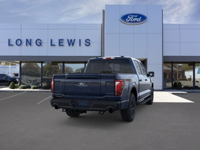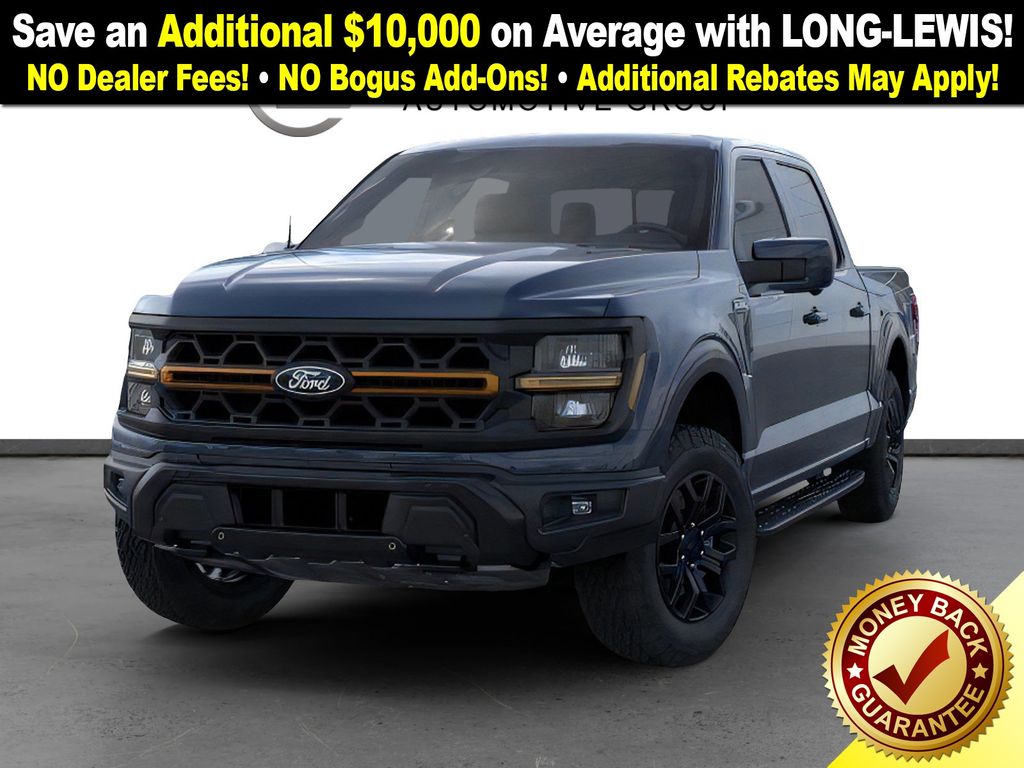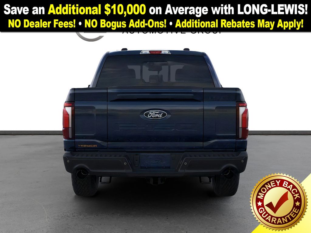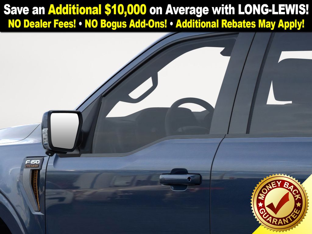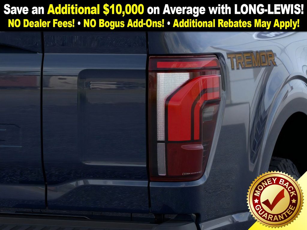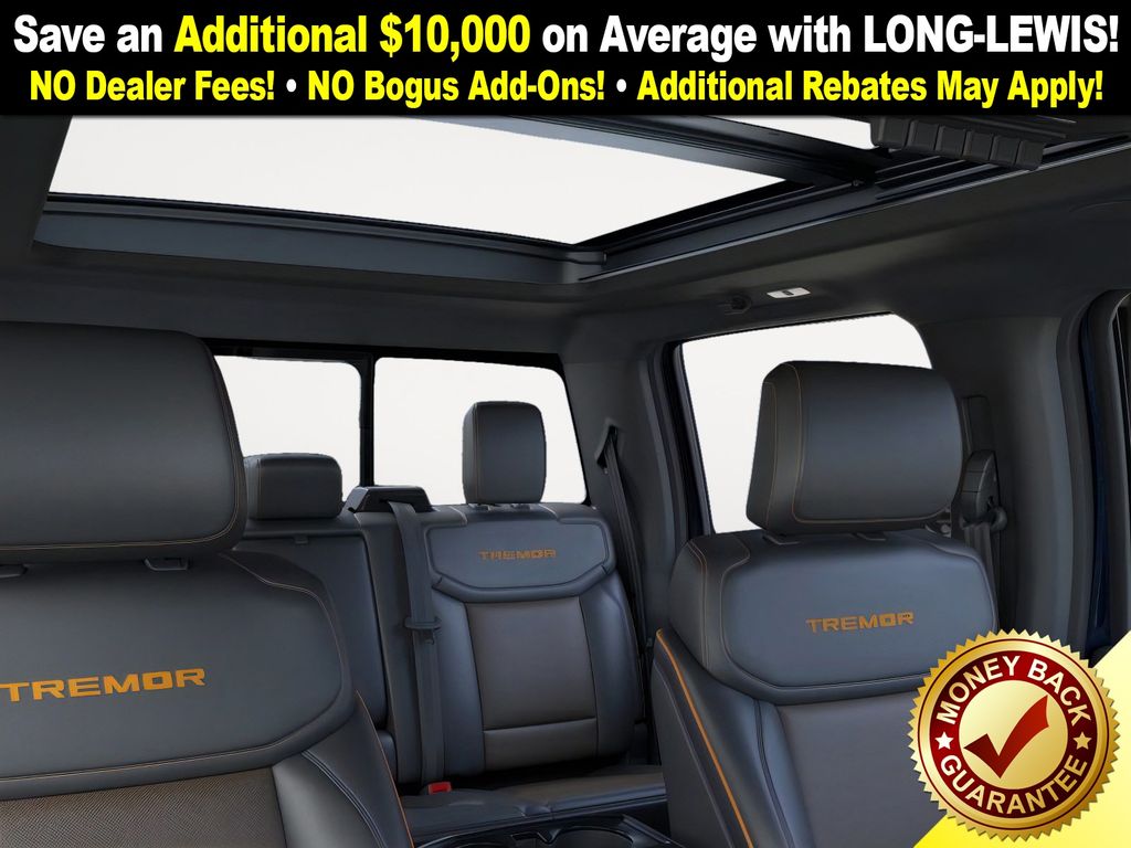 Antimatter Blue Metallic 2025 Ford F-150 Tremor fctp 4WD 10-Speed Automatic 5.0L V8 4WD, 4-Wheel Disc Brakes, 8 Speakers, ABS brakes, Adjustable pedals, Air Conditioning, Alloy wheels, AM/FM radio: SiriusXM with 360L, Auto High-beam Headlights, Auto-dimming door mirrors, Auto-dimming Rear-View mirror, Automatic temperature control, Brake assist, Bumpers: body-color, Compass, Delay-off headlights, Driver door bin, Driver vanity mirror, Dual front impact airbags, Dual front side impact airbags, Electronic Locking w/3.73 Axle Ratio, Electronic Stability Control, Emergency communication system: SYNC 4 911 Assist, Front anti-roll bar, Front Bucket Seats, Front Center Armrest, Front dual zone A/C, Front fog lights, Front License Plate Bracket, Front reading lights, Front wheel independent suspension, Fully automatic headlights, GVWR: 7,100 lbs Payload Package, Heated door mirrors, Heated front seats, Illuminated entry, Low tire pressure warning, Navigation system: Connected Navigation, Occupant sensing airbag, Outside temperature display, Overhead airbag, Overhead console, Panic alarm, Passenger door bin, Passenger vanity mirror, Power door mirrors, Power driver seat, Power passenger seat, Power steering, Power windows, Radio data system, Radio: B&O Sound System by Bang & Olufsen, Rear reading lights, Rear step bumper, Rear window defroster, Remote keyless entry, Security system, Speed control, Split folding rear seat, Steering wheel mounted audio controls, SYNC 4 w/Enhanced Voice Recognition, Tachometer, Telescoping steering wheel, Tilt steering wheel, Traction control, Trip computer, Turn signal indicator mirrors, Twin Panel Moonroof, Unique Sport Cloth 40/Console/40 Power Front Seat, Unique Tremor Leather-Trimmed Bucket Seats, Variably intermittent wipers, Voltmeter, Wheels: 18" Alloy w/Dark Matte Finish, 4WD.