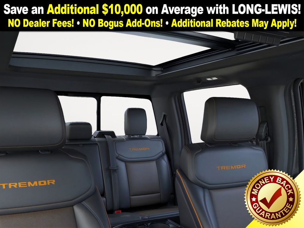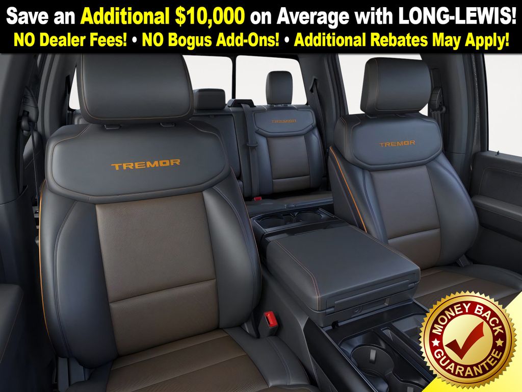 My/Nb 2025 Ford F-150 Tremor NFT 4WD 10-Speed Automatic 3.5L V6 EcoBoost 4WD, 4-Wheel Disc Brakes, 8 Speakers, ABS brakes, Adjustable pedals, Air Conditioning, Alloy wheels, AM/FM radio: SiriusXM with 360L, Auto High-beam Headlights, Auto-dimming door mirrors, Auto-dimming Rear-View mirror, Automatic temperature control, Brake assist, Bumpers: body-color, Compass, Delay-off headlights, Driver door bin, Driver vanity mirror, Dual front impact airbags, Dual front side impact airbags, Electronic Locking w/3.73 Axle Ratio, Electronic Stability Control, Emergency communication system: SYNC 4 911 Assist, Front anti-roll bar, Front Bucket Seats, Front Center Armrest, Front dual zone A/C, Front fog lights, Front reading lights, Front wheel independent suspension, Fully automatic headlights, GVWR: 7,100 lbs Payload Package, Heated door mirrors, Heated front seats, Illuminated entry, Internet access capable: FordPass Connect 5G, Low tire pressure warning, Navigation system: Connected Navigation, Occupant sensing airbag, Outside temperature display, Overhead airbag, Overhead console, Panic alarm, Passenger door bin, Passenger vanity mirror, Power door mirrors, Power driver seat, Power passenger seat, Power steering, Power windows, Radio data system, Radio: B&O Sound System by Bang & Olufsen, Rear reading lights, Rear step bumper, Rear window defroster, Remote keyless entry, Security system, Speed control, Split folding rear seat, Steering wheel mounted audio controls, SYNC 4 w/Enhanced Voice Recognition, Tachometer, Telescoping steering wheel, Tilt steering wheel, Traction control, Trip computer, Turn signal indicator mirrors, Unique Sport Cloth 40/Console/40 Power Front Seat, Variably intermittent wipers, Voltmeter, Wheels: 18" Alloy w/Dark Matte Finish, 4WD.