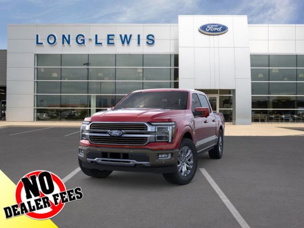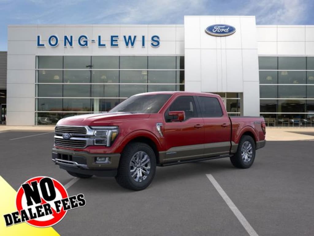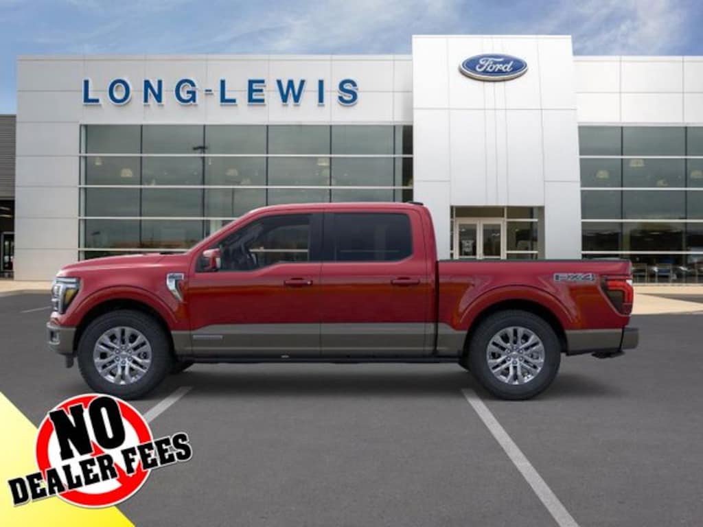 Rapid Red Metallic Tinted Clearcoat 2025 Ford F-150 King Ranch 4WD 10-Speed Automatic 3.5L PowerBoost Full-Hybrid V6 3.5L PowerBoost Full-Hybrid V6, 4WD, 14 Speakers, 4-Wheel Disc Brakes, ABS brakes, Adjustable pedals, Air Conditioning, Alloy wheels, AM/FM radio, Auto High-beam Headlights, Auto tilt-away steering wheel, Auto-dimming door mirrors, Auto-dimming Rear-View mirror, Automatic temperature control, Brake assist, Chrome wheels, Compass, Delay-off headlights, Driver door bin, Driver vanity mirror, Dual front impact airbags, Dual front side impact airbags, Electronic Locking w/3.55 Axle Ratio, Electronic Stability Control, Emergency communication system: SYNC 4 911 Assist, Front anti-roll bar, Front Bucket Seats, Front Center Armrest, Front dual zone A/C, Front fog lights, Front License Plate Bracket, Front reading lights, Front wheel independent suspension, Fully automatic headlights, FX4 Off-Road Package, Garage door transmitter, Genuine wood dashboard insert, Heads-Up Display, Heated door mirrors, Heated front seats, Heated rear seats, Heated steering wheel, Hill Descent Control, Illuminated entry, King Ranch Multicontour Leather Bucket Seats, Leather steering wheel, Low tire pressure warning, Max Tow Electronic Locking w/3.73 Axle Ratio, Memory seat, Monotube Rear Shocks, Navigation system: Connected Navigation, Occupant sensing airbag, Off-Road Tuned Front Shock Absorbers, Outside temperature display, Overhead airbag, Overhead console, Panic alarm, Passenger door bin, Passenger vanity mirror, Pedal memory, Power door mirrors, Power driver seat, Power moonroof, Power passenger seat, Power steering, Power windows, Radio data system, Radio: B&O Unleashed Sound System by Bang & Olufsen, Rain sensing wipers, Rear reading lights, Rear seat center armrest, Rear step bumper, Rear window defroster, Remote keyless entry, Retractable Rear Center Step, Rock Crawl Mode, Security system, Speed control, Split folding rear seat, Steering wheel memory, Steering wheel mounted audio controls, SYNC 4 w/Enhanced Voice Recognition, Tachometer, Telescoping steering wheel, Tilt steering wheel, Traction control, Trip computer, Turn signal indicator mirrors, Variably intermittent wipers, Ventilated front seats, Voltmeter, Wheels: 20" Chrome-Like PVD, 3.5L PowerBoost Full-Hybrid V6, 4WD.
