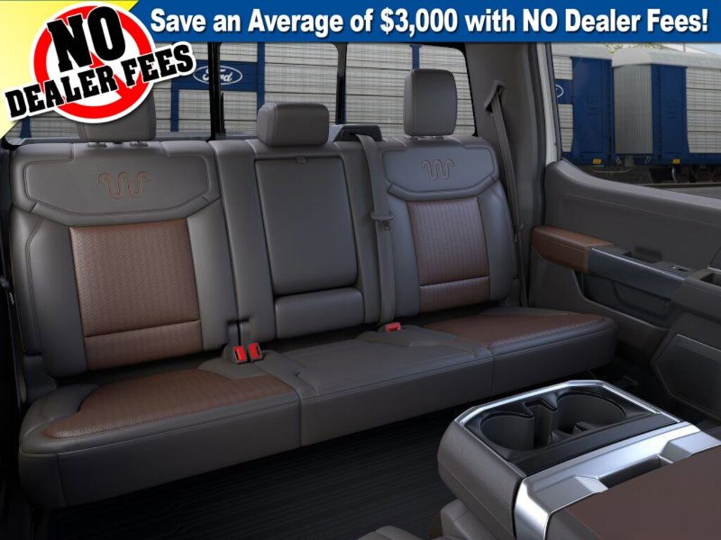 FX4 Off-Road Package (4x4 FX4 Off-Road Bodyside Decal, Hill Descent Control, Monotube Rear Shocks, Off-Road Tuned Front Shock Absorbers, and Rock Crawl Mode), 3.5L PowerBoost Full-Hybrid V6, 4WD, 14 Speakers, 4-Wheel Disc Brakes, ABS brakes, Adjustable pedals, Air Conditioning, Alloy wheels, AM/FM radio: SiriusXM with 360L, Auto High-beam Headlights, Auto tilt-away steering wheel, Auto-dimming door mirrors, Auto-dimming Rear-View mirror, Automatic temperature control, Brake assist, Chrome wheels, Compass, Delay-off headlights, Driver door bin, Driver vanity mirror, Dual front impact airbags, Dual front side impact airbags, Electronic Stability Control, Emergency communication system: SYNC 4 911 Assist, Front anti-roll bar, Front Bucket Seats, Front Center Armrest, Front dual zone A/C, Front fog lights, Front License Plate Bracket, Front reading lights, Front wheel independent suspension, Fully automatic headlights, Garage door transmitter, Genuine wood dashboard insert, Heads-Up Display, Heated door mirrors, Heated front seats, Heated rear seats, Heated steering wheel, Illuminated entry, King Ranch Multicontour Leather Bucket Seats, Leather steering wheel, Low tire pressure warning, Memory seat, Navigation system: Connected Navigation, Occupant sensing airbag, Outside temperature display, Overhead airbag, Overhead console, Panic alarm, Passenger door bin, Passenger vanity mirror, Pedal memory, Power door mirrors, Power driver seat, Power moonroof, Power passenger seat, Power steering, Power windows, Radio data system, Radio: B&O Unleashed Sound System by Bang & Olufsen, Rain sensing wipers, Rear reading lights, Rear seat center armrest, Rear step bumper, Rear window defroster, Remote keyless