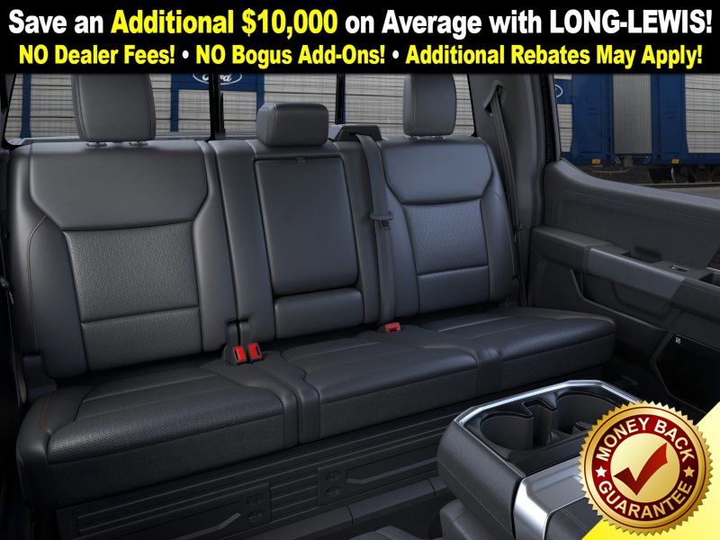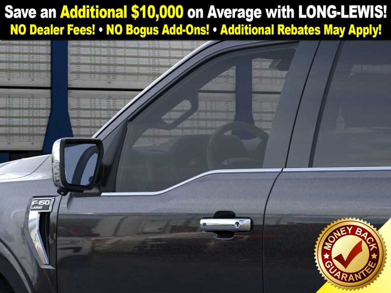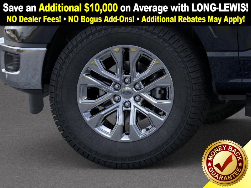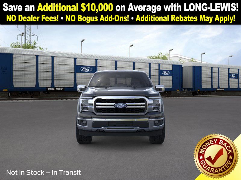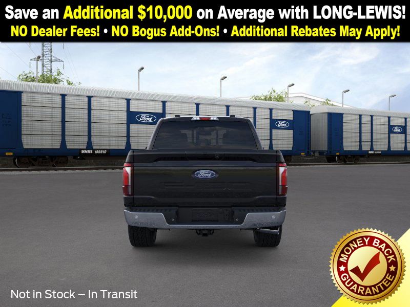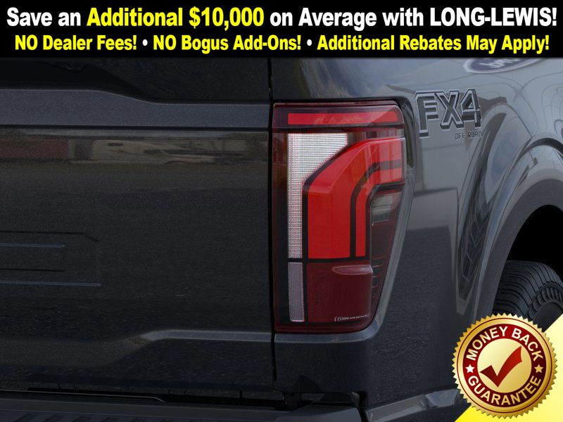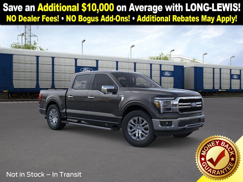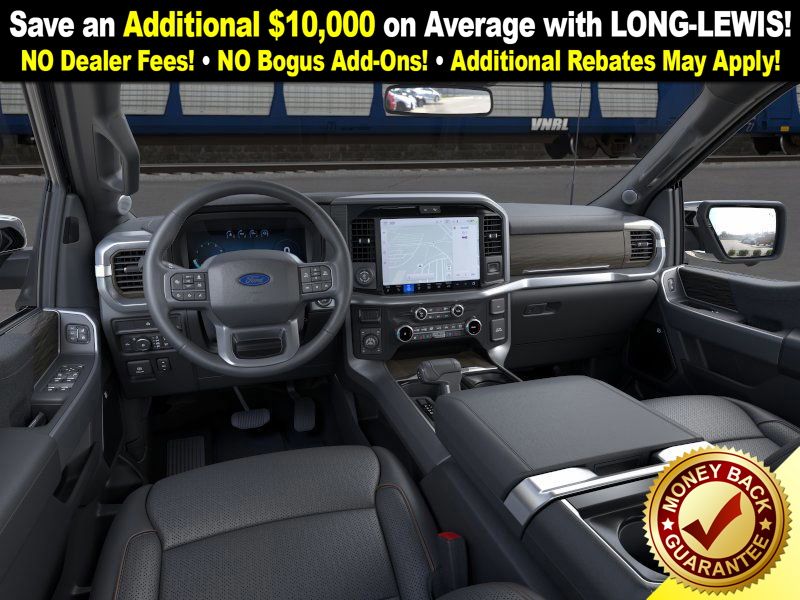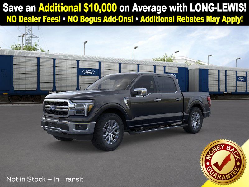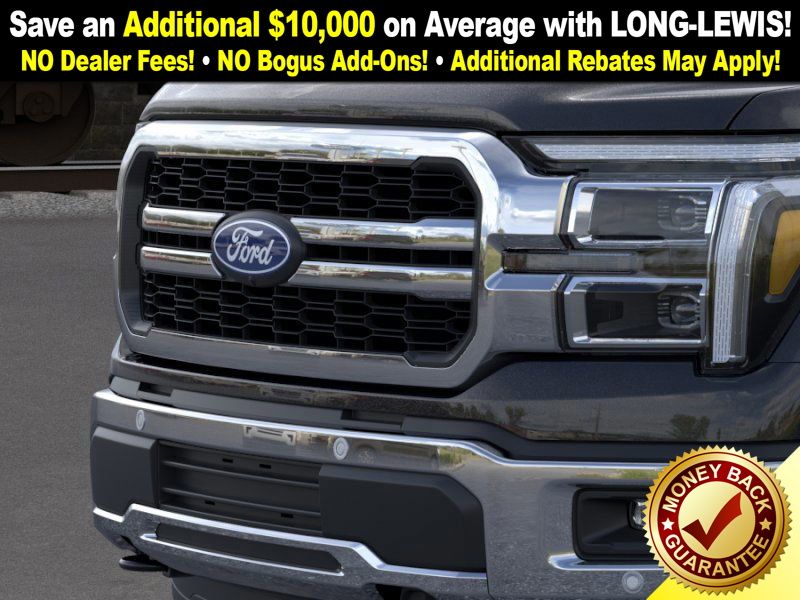 Agate Black Metallic 2025 Ford F-150 Lariat NFT 4WD 10-Speed Automatic 5.0L V8 4WD, 4-Wheel Disc Brakes, 4x4 FX4 Off-Road Bodyside Decal, 8 Speakers, ABS brakes, ActiveX Trimmed Bucket Seats, Adjustable pedals, Air Conditioning, Alloy wheels, AM/FM radio: SiriusXM with 360L, Auto High-beam Headlights, Auto-dimming door mirrors, Auto-dimming Rear-View mirror, Automatic temperature control, Brake assist, Bumpers: chrome, Chrome wheels, Compass, Delay-off headlights, Driver door bin, Driver vanity mirror, Dual front impact airbags, Dual front side impact airbags, Electronic Stability Control, Emergency communication system: SYNC 4 911 Assist, Front anti-roll bar, Front Bucket Seats, Front Center Armrest, Front dual zone A/C, Front fog lights, Front License Plate Bracket, Front reading lights, Front wheel independent suspension, Fully automatic headlights, FX4 Off-Road Package, Garage door transmitter, Heated door mirrors, Heated front seats, Heated steering wheel, Hill Descent Control, Illuminated entry, Internet access capable: FordPass Connect 5G, Low tire pressure warning, Memory seat, Monotube Rear Shocks, Navigation system: Connected Navigation, Occupant sensing airbag, Off-Road Tuned Front Shock Absorbers, Outside temperature display, Overhead airbag, Overhead console, Panic alarm, Passenger door bin, Passenger vanity mirror, Pedal memory, Power door mirrors, Power driver seat, Power passenger seat, Power steering, Power windows, Radio data system, Radio: B&O Sound System by Bang & Olufsen, Rain sensing wipers, Rear reading lights, Rear seat center armrest, Rear step bumper, Rear window defroster, Remote keyless entry, Rock Crawl Mode, Security system, Speed control, Split folding rear seat, Steering wheel mounted audio controls, SYNC 4 w/Enhanced Voice Recognition, Tachometer, Telescoping steering wheel, Tilt steering wheel, Traction control, Tray Style Floor Liner w/o Carpet Mats, Trip computer, Turn signal indicator mirrors, Variably intermittent wipers, Ventilated front seats, Voltmeter, Wheels: 18" Chrome-Like PVD, 4WD.