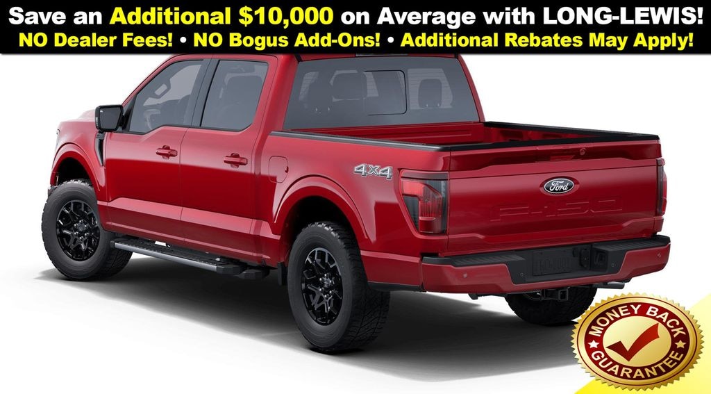 Dealer Discount of $7,480 off MSRP Rapid Red Metallic Tinted Clearcoat 2025 Ford F-150 XLT 4WD 10-Speed Automatic 5.0L V8 4WD, 4 Pickup Box Tie-Down Plates, 4-Wheel Disc Brakes, 6 Speakers, ABS brakes, Air Conditioning, Alloy wheels, AM/FM radio: SiriusXM with 360L, Auto High-beam Headlights, Bed Utility Package, Brake assist, Bumpers: chrome, Chrome wheels, Cloth 40/20/40 Front Seat, Compass, Delay-off headlights, Driver door bin, Driver vanity mirror, Dual front impact airbags, Dual front side impact airbags, Electronic Stability Control, Emergency communication system: SYNC 4 911 Assist, Front anti-roll bar, Front Center Armrest, Front fog lights, Front License Plate Bracket, Front reading lights, Front wheel independent suspension, Fully automatic headlights, FX4 Off-Road Package, Heated door mirrors, Illuminated entry, LED Box Lighting, Low tire pressure warning, Occupant sensing airbag, Outside temperature display, Overhead airbag, Overhead console, Panic alarm, Passenger door bin, Passenger vanity mirror, Power door mirrors, Power steering, Power windows, Radio data system, Radio: AM/FM Stereo w/SiriusXM 360L, Rear Parking Sensors, Rear reading lights, Rear step bumper, Rear window defroster, Remote keyless entry, Security system, Speed control, Split folding rear seat, Steering wheel mounted audio controls, SYNC 4 w/Enhanced Voice Recognition, Tachometer, Tailgate Step w/Tailgate Work Surface, Telescoping steering wheel, Tilt steering wheel, Traction control, Trip computer, Variably intermittent wipers, Voltmeter, Wheels: 18" Chrome-Like PVD, 4WD.