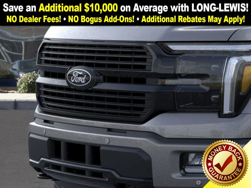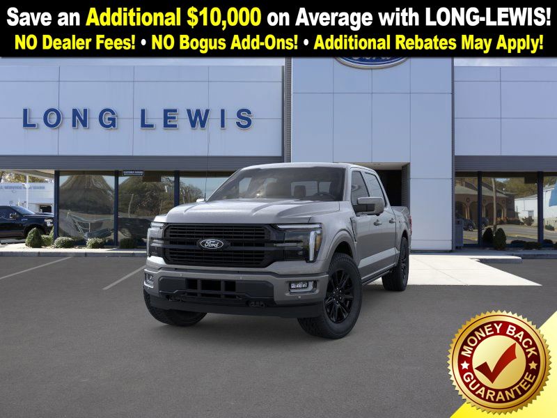 Carbonized Gray Metallic 2025 Ford F-150 Platinum fctp 4WD 10-Speed Automatic 3.5L V6 EcoBoost 4WD, 4-Wheel Disc Brakes, 4x4 FX4 Off-Road Bodyside Decal, 8 Speakers, ABS brakes, Adjustable pedals, Air Conditioning, Alloy wheels, Auto High-beam Headlights, Auto tilt-away steering wheel, Auto-dimming door mirrors, Auto-dimming Rear-View mirror, Automatic temperature control, Brake assist, Bumpers: body-color, Compass, Delay-off headlights, Driver door bin, Driver vanity mirror, Dual front impact airbags, Dual front side impact airbags, Electronic Locking w/3.55 Axle Ratio, Electronic Stability Control, Emergency communication system: SYNC 4 911 Assist, Front anti-roll bar, Front Bucket Seats, Front Center Armrest, Front dual zone A/C, Front fog lights, Front License Plate Bracket, Front reading lights, Front wheel independent suspension, Fully automatic headlights, FX4 Off-Road Package, Garage door transmitter, Heated door mirrors, Heated front seats, Heated rear seats, Heated steering wheel, Hill Descent Control, Illuminated entry, Leather steering wheel, Low tire pressure warning, Max Tow Electronic Locking w/3.55 Axle Ratio, Memory seat, Monotube Rear Shocks, Navigation system: Connected Navigation, Occupant sensing airbag, Off-Road Tuned Front Shock Absorbers, Outside temperature display, Overhead airbag, Overhead console, Panic alarm, Passenger door bin, Passenger vanity mirror, Pedal memory, Power door mirrors, Power driver seat, Power passenger seat, Power steering, Power windows, Radio data system, Radio: B&O Sound System by Bang & Olufsen, Rain sensing wipers, Rear reading lights, Rear seat center armrest, Rear step bumper, Rear window defroster, Remote keyless entry, Rock Crawl Mode, Security system, Speed control, Split folding rear seat, Steering wheel memory, Steering wheel mounted audio controls, SYNC 4 w/Enhanced Voice Recognition, Tachometer, Telescoping steering wheel, Tilt steering wheel, Traction control, Tray Style Floor Liner, Trip computer, Turn signal indicator mirrors, Unique Multi-Contour Leather Bucket Seats, Variably intermittent wipers, Ventilated front seats, Voltmeter, Wheels: 20" Painted Gloss Ebony Black, 4WD.