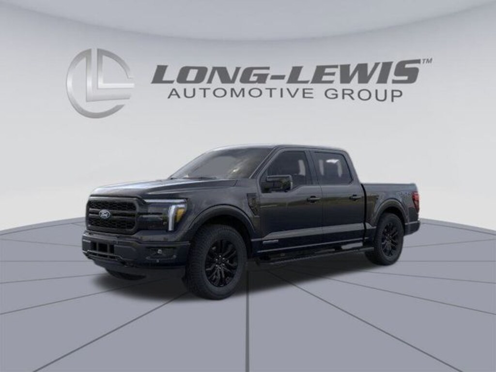 Agate Black Metallic 2025 Ford F-150 Lariat 4WD 10-Speed Automatic 3.5L PowerBoost Full-Hybrid V6 3.31 Axle Ratio, 4 Pickup Box Tie-Down Plates, 4-Wheel Disc Brakes, 4x4 FX4 Off-Road Bodyside Decal, 6" Angular Bright Anodized Step Bar, 6" Extended Running Boards, 8 Speakers, ABS brakes, ActiveX Trimmed Bucket Seats, ActiveX Trimmed Bucket Seats (B), Adjustable pedals, Air Conditioning, Alloy wheels, AM/FM radio: SiriusXM with 360L, Auto High-beam Headlights, Auto-dimming door mirrors, Auto-dimming Rear-View mirror, Automatic temperature control, Bed Utility Package, Black Exterior Badging, Black Grille, Black Taillamp Bezels, Body-Color Front & Rear Bumpers, Body-Color Skull Caps & Door Handles, Brake assist, Bumpers: chrome, Chrome wheels, Compass, Console Worksurface, Dark Interior Appliques, Delay-off headlights, Driver door bin, Driver vanity mirror, Dual front impact airbags, Dual front side impact airbags, Electronic Locking w/3.73 Axle Ratio, Electronic Stability Control, Emergency communication system: SYNC 4 911 Assist, Equipment Group 501A Mid, Front anti-roll bar, Front Bucket Seats, Front Center Armrest, Front dual zone A/C, Front fog lights, Front reading lights, Front wheel independent suspension, Fully automatic headlights, FX4 Off-Road Package, Garage door transmitter, Gray Box Side Decal, Heated door mirrors, Heated front seats, Heated steering wheel, Hill Descent Control, Illuminated Driver & Passenger Visors, Illuminated entry, Lariat Black Appearance Package, LED Box Lighting, Low tire pressure warning, Matte Black Tailgate F-150 Decal, Memory seat, Mobile Office Package, Monotube Rear Shocks, Navigation system: Connected Navigation, Occupant sensing airbag, Off-Road Tuned Front Shock Absorbers, Outside temperature display, Overhead airbag, Overhead console, Panic alarm, Partitioned Lockable Rear Storage, Passenger door bin, Passenger vanity mirror, Pedal memory, Power door mirrors, Power driver seat, Power passenger seat, Power steering, Power Tailgate, Power windows, Power-Sliding Rear Window, Pro Access Tailgate, Pro Power Onboard - 7.2KW, Radio data system, Radio: B&O Sound System by Bang & Olufsen, Rain sensing wipers, Rear reading lights, Rear seat center armrest, Rear step bumper, Rear window defroster, Remote keyless entry, Rock Crawl Mode, Security system, Speed control, Split folding rear seat, Steering wheel mounted audio controls, SYNC 4 w/Enhanced Voice Recognition, Tachometer, Telescoping steering wheel, Tilt steering wheel, Tow/Haul Package, Traction control, Tray Style Floor Liner w/o Carpet Mats, Trip computer, Turn signal indicator mirrors, Twin Panel Moonroof, Variably intermittent wipers, Ventilated front seats, Voltmeter, Wheels: 18" Chrome-Like PVD, Wheels: 20" Chrome-Like PVD, Wireless Charging.