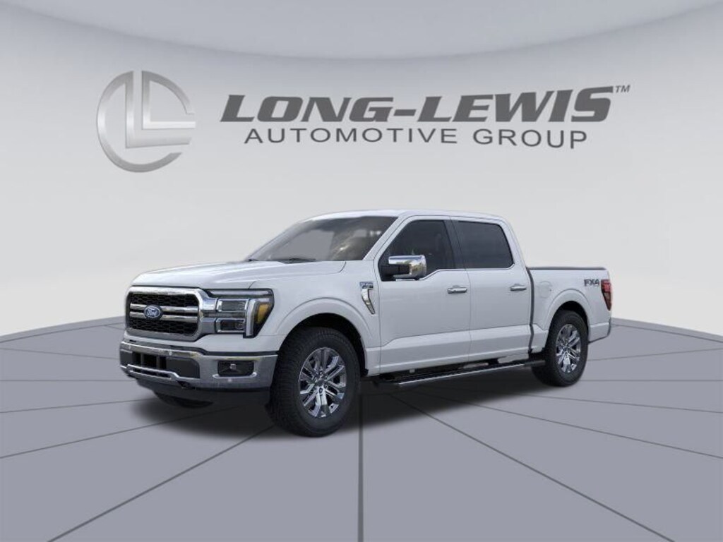 Oxford White 2025 Ford F-150 Lariat fctp 4WD 10-Speed Automatic 3.5L V6 EcoBoost 4WD, 4 Pickup Box Tie-Down Plates, 4-Wheel Disc Brakes, 4x4 FX4 Off-Road Bodyside Decal, 6" Angular Bright Anodized Step Bar, 6" Extended Running Boards, 8 Speakers, ABS brakes, ActiveX Trimmed Bucket Seats, ActiveX Trimmed Smoked Truffle Bucket Seats, Adjustable pedals, Air Conditioning, Alloy wheels, AM/FM radio: SiriusXM with 360L, Auto High-beam Headlights, Auto-dimming door mirrors, Auto-dimming Rear-View mirror, Automatic temperature control, Bed Utility Package, Brake assist, Bumpers: chrome, Chrome wheels, Compass, Delay-off headlights, Driver door bin, Driver vanity mirror, Dual front impact airbags, Dual front side impact airbags, Electronic Stability Control, Emergency communication system: SYNC 4 911 Assist, Equipment Group 501A Mid, Front anti-roll bar, Front Bucket Seats, Front Center Armrest, Front dual zone A/C, Front fog lights, Front License Plate Bracket, Front reading lights, Front wheel independent suspension, Fully automatic headlights, FX4 Off-Road Package, Garage door transmitter, Heated door mirrors, Heated front seats, Heated steering wheel, Hill Descent Control, Illuminated Driver & Passenger Visors, Illuminated entry, LED Box Lighting, Low tire pressure warning, Memory seat, Monotube Rear Shocks, Navigation system: Connected Navigation, Occupant sensing airbag, Off-Road Tuned Front Shock Absorbers, Outside temperature display, Overhead airbag, Overhead console, Panic alarm, Passenger door bin, Passenger vanity mirror, Pedal memory, Power door mirrors, Power driver seat, Power passenger seat, Power steering, Power Tailgate, Power windows, Power-Sliding Rear Window, Pro Access Tailgate, Radio data system, Radio: B&O Sound System by Bang & Olufsen, Rain sensing wipers, Rear reading lights, Rear seat center armrest, Rear step bumper, Rear window defroster, Remote keyless entry, Rock Crawl Mode, Security system, Speed control, Split folding rear seat, Steering wheel mounted audio controls, SYNC 4 w/Enhanced Voice Recognition, Tachometer, Telescoping steering wheel, Tilt steering wheel, Tow/Haul Package, Traction control, Tray Style Floor Liner w/o Carpet Mats, Trip computer, Turn signal indicator mirrors, Variably intermittent wipers, Ventilated front seats, Voltmeter, Wheels: 18" Chrome-Like PVD, Wheels: 20" Chrome-Like PVD, 4WD.