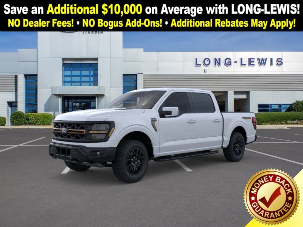 Dealer Discount of $5,157 off MSRP Space White Metallic 2025 Ford F-150 Tremor 4WD 10-Speed Automatic 5.0L V8 4WD, 4-Wheel Disc Brakes, 8 Speakers, ABS brakes, Adjustable pedals, Air Conditioning, Alloy wheels, AM/FM radio: SiriusXM with 360L, Auto High-beam Headlights, Auto-dimming door mirrors, Auto-dimming Rear-View mirror, Automatic temperature control, Brake assist, Bumpers: body-color, Compass, Delay-off headlights, Driver door bin, Driver vanity mirror, Dual front impact airbags, Dual front side impact airbags, Electronic Locking w/3.73 Axle Ratio, Electronic Stability Control, Emergency communication system: SYNC 4 911 Assist, Front anti-roll bar, Front Bucket Seats, Front Center Armrest, Front dual zone A/C, Front fog lights, Front License Plate Bracket, Front reading lights, Front wheel independent suspension, Fully automatic headlights, GVWR: 7,100 lbs Payload Package, Heated door mirrors, Heated front seats, Illuminated entry, Low tire pressure warning, Navigation system: Connected Navigation, Occupant sensing airbag, Outside temperature display, Overhead airbag, Overhead console, Panic alarm, Passenger door bin, Passenger vanity mirror, Power door mirrors, Power driver seat, Power passenger seat, Power steering, Power windows, Radio data system, Radio: B&O Sound System by Bang & Olufsen, Rear reading lights, Rear step bumper, Rear window defroster, Remote keyless entry, Security system, Speed control, Split folding rear seat, Steering wheel mounted audio controls, SYNC 4 w/Enhanced Voice Recognition, Tachometer, Telescoping steering wheel, Tilt steering wheel, Traction control, Trip computer, Turn signal indicator mirrors, Unique Sport Cloth 40/Console/40 Power Front Seat, Unique Tremor Leather-Trimmed Bucket Seats, Variably intermittent wipers, Voltmeter, Wheels: 18" Alloy w/Dark Matte Finish, 4WD.