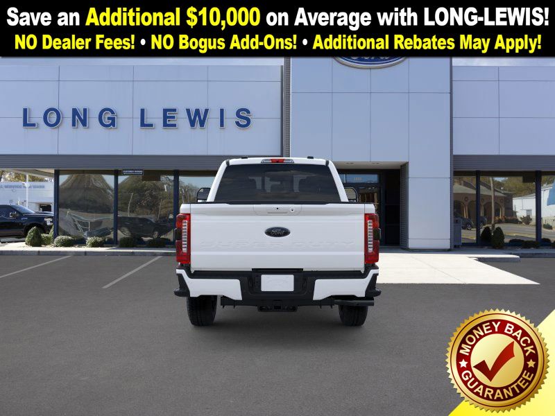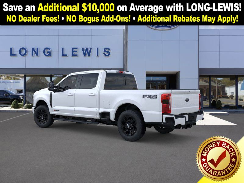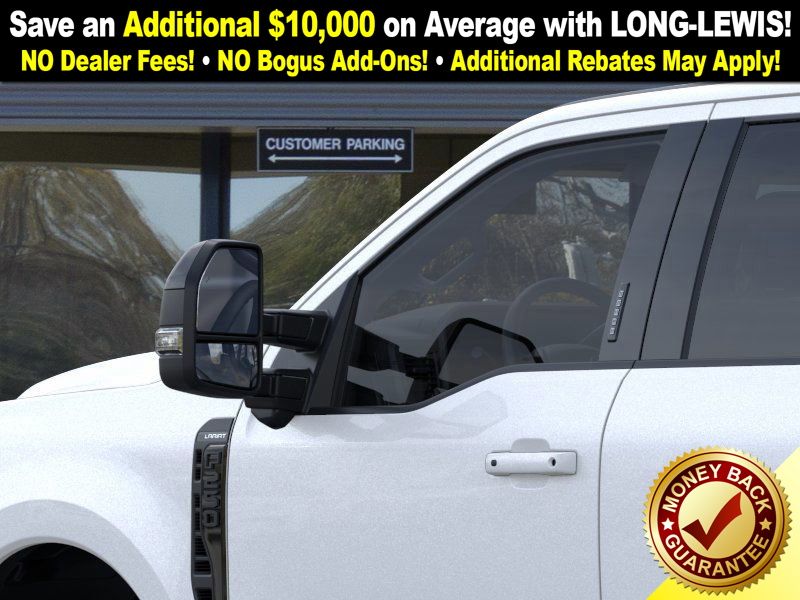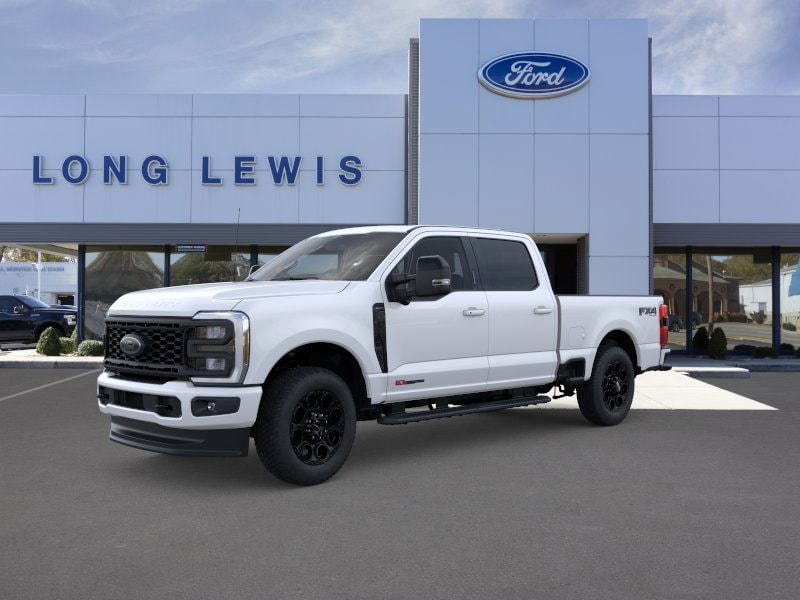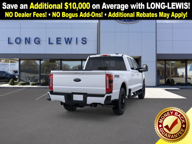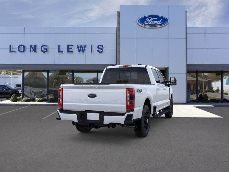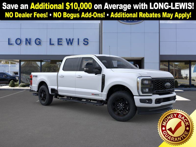 Star White Metallic Tri-Coat 2025 Ford F-250SD Lariat NFT 4WD 10-Speed Automatic 6.7L High Output Power Stroke V8 Diesel 4WD, 4-Way Adjustable Headrests, 4-Wheel Disc Brakes, 410 Amp Dual Alternators, 6" Ebony Black Angular Running Boards, 8 Speakers, ABS brakes, Adjustable pedals, Air Conditioning, Alloy wheels, AM/FM radio: SiriusXM with 360L, Auto High-beam Headlights, Auto-dimming Rear-View mirror, Automatic High Beam, Automatic temperature control, Black Appearance Package, Black Painted Front Grille Surround, Brake assist, Bumpers: chrome, Compass, Delay-off headlights, Driver door bin, Driver vanity mirror, Dual AGM 68 AH Battery, Dual front impact airbags, Dual front side impact airbags, Ebony Black Painted Mirror Caps, Electronic Stability Control, Emergency communication system: SYNC 4 911 Assist, Engine Block Heater, Flow-Through Console, Front ActiveX Trimmed 40/Console/40 Seats, Front anti-roll bar, Front Bucket Seats, Front Center Armrest, Front dual zone A/C, Front fog lights, Front reading lights, Fully automatic headlights, FX4 Off-Road Package, Garage door transmitter, Head-Up Display, Heated door mirrors, Heated front seats, Heated rear seats, Heated steering wheel, High Capacity 11.6" Axle Upgrade Package, Hill Descent Control, Illuminated entry, Lane-Keeping System, Lariat Ultimate Package, Low tire pressure warning, Memory seat, Navigation System, Off-Road Specifically Tuned Shock Absorbers, Order Code 608A, Outside temperature display, Overhead airbag, Overhead console, Panic alarm, Passenger door bin, Passenger vanity mirror, Pedal memory, Post-Collision Braking, Power door mirrors, Power driver seat, Power passenger seat, Power steering, Power windows, Power-Deployable Running Boards, Pre-Collision Assist, Privacy Glass, Pro Trailer Backup Assist, Pro Trailer Hitch Assist, Radio: B&O Unleashed Sound System by Bang & Olufsen, Rain sensing wipers, Rapid-Heat Supplemental Cab Heater, Rear Parking Sensors, Rear reading lights, Rear seat center armrest, Rear step bumper, Rear window defroster, Remote keyless entry, Security system, Speed control, Split folding rear seat, Steering wheel mounted audio controls, Tachometer, Telescoping steering wheel, Tilt steering wheel, Traction control, Trip computer, Turn signal indicator mirrors, Twin Panel Power Moonroof, Unique FX4 Off-Road Box Decal, Upfitter Switches (6), Variably intermittent wipers, Ventilated front seats, 4WD.