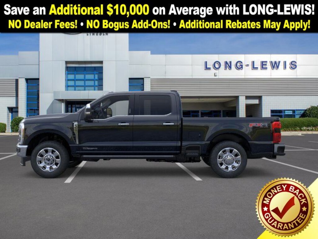 Dealer Discount of $7,164 off MSRP Agate Black Metallic 2025 Ford F-350SD King Ranch NFT 4WD 10-Speed Automatic Power Stroke 6.7L V8 DI 32V OHV Turbodiesel 4WD, 14 Speakers, 4-Wheel Disc Brakes, 410 Amp Dual Alternators, 5th Wheel/Gooseneck Hitch Prep Package, ABS brakes, Adjustable pedals, Air Conditioning, All-Weather Floor Mats, Alloy wheels, AM/FM radio: SiriusXM with 360L, Auto High-beam Headlights, Auto tilt-away steering wheel, Auto-dimming Rear-View mirror, Automatic temperature control, Brake assist, Chrome Package, Compass, Delay-off headlights, Driver door bin, Driver vanity mirror, Dual front impact airbags, Dual front side impact airbags, Electronic Stability Control, Emergency communication system: SYNC 4 911 Assist, Engine Block Heater, Flow-Through Console, Front anti-roll bar, Front Bucket Seats, Front Center Armrest, Front dual zone A/C, Front fog lights, Front reading lights, Fully automatic headlights, FX4 Off-Road Package, Garage door transmitter, Heads-Up Display, Heated door mirrors, Heated front seats, Heated rear seats, Heated steering wheel, Hill Descent Control, Illuminated entry, Leather steering wheel, LED Roof Clearance Lights, Low tire pressure warning, Max Recline Seats, Memory seat, Navigation System, Off-Road Specifically Tuned Shock Absorbers, Order Code 710A, Outside temperature display, Overhead airbag, Overhead console, Panic alarm, Passenger door bin, Passenger vanity mirror, Pedal memory, Power door mirrors, Power driver seat, Power passenger seat, Power steering, Power windows, Pro Power Onboard - 2kW, Radio: B&O Unleashed Sound System by Bang & Olufsen, Rain sensing wipers, Rapid-Heat Supplemental Cab Heater, Rear reading lights, Rear seat center armrest, Rear step bumper, Rear window defroster, Remote keyless entry, Security system, SiriusXM Radio with 360L, Speed control, Split folding rear seat, Steering wheel memory, Steering wheel mounted A/C controls, Steering wheel mounted audio controls, SYNC 4 with Enhanced Voice Recognition, Tachometer, Telescoping steering wheel, Tilt steering wheel, Traction control, Trip computer, Turn signal indicator mirrors, Twin Panel Power Moonroof, Unique FX4 Off-Road Box Decal, Unique King Ranch Leather 40/Console/40 Seats, Upfitter Switches (6), Variably intermittent wipers, Ventilated front seats, Wheels: 20" Bright Machined Cast Aluminum, 4WD.