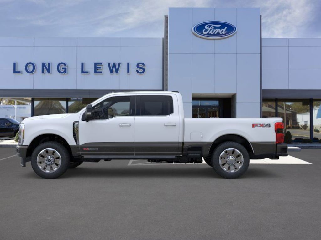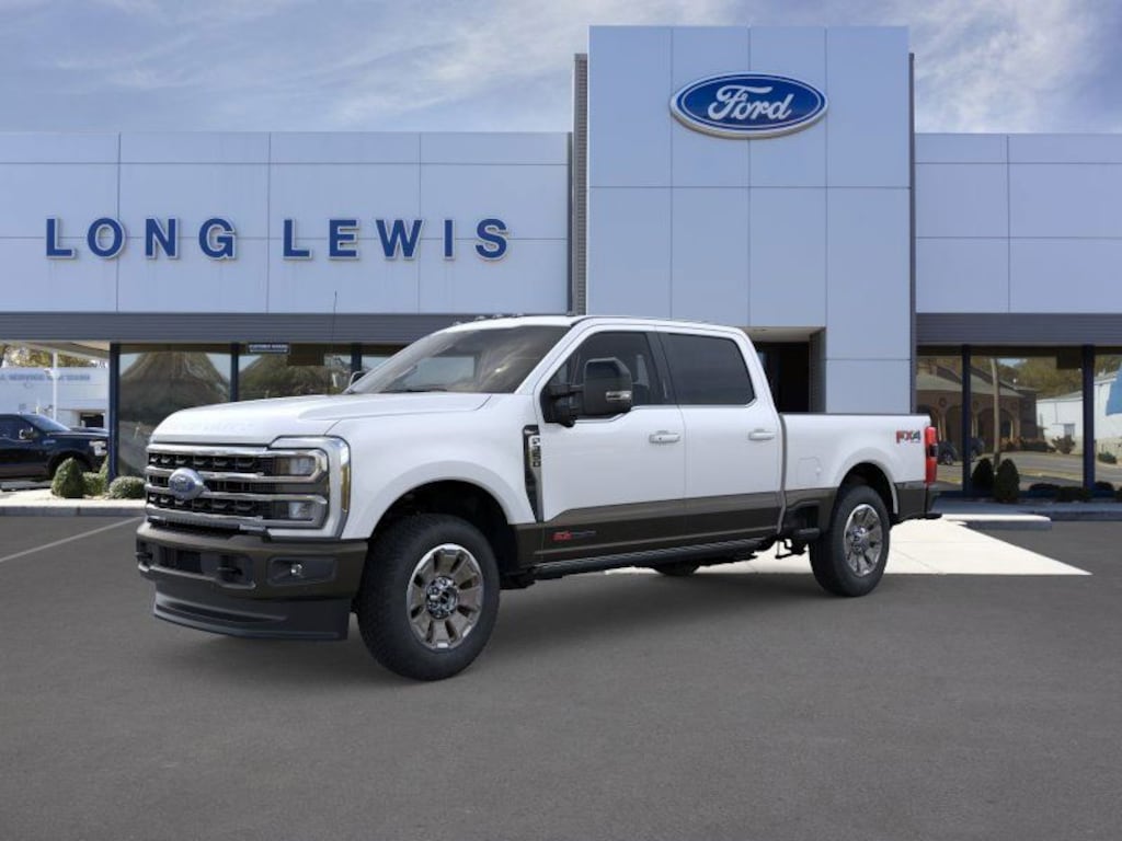 Star White Metallic Tri-Coat 2025 Ford F-350SD King Ranch 4WD 10-Speed Automatic 6.7L High Output Power Stroke V8 Diesel 4WD, 14 Speakers, 4-Wheel Disc Brakes, 410 Amp Dual Alternators, 5th Wheel/Gooseneck Hitch Prep Package, ABS brakes, Adjustable pedals, Air Conditioning, Alloy wheels, AM/FM radio: SiriusXM with 360L, Auto High-beam Headlights, Auto tilt-away steering wheel, Auto-dimming Rear-View mirror, Automatic temperature control, Brake assist, Compass, Delay-off headlights, Driver door bin, Driver vanity mirror, Dual front impact airbags, Dual front side impact airbags, Electronic Stability Control, Electronic-Locking w/3.55 Axle Ratio, Electronic-Locking w/3.73 Axle Ratio, Emergency communication system: SYNC 4 911 Assist, Engine Block Heater, Flow-Through Console, Front anti-roll bar, Front Bucket Seats, Front Center Armrest, Front dual zone A/C, Front fog lights, Front reading lights, Fully automatic headlights, FX4 Off-Road Package, Garage door transmitter, Heads-Up Display, Heated door mirrors, Heated front seats, Heated rear seats, Heated steering wheel, Hill Descent Control, Illuminated entry, Leather steering wheel, LED Roof Clearance Lights, Low tire pressure warning, Max Recline Seats, Memory seat, Navigation System, Off-Road Specifically Tuned Shock Absorbers, Outside temperature display, Overhead airbag, Overhead console, Panic alarm, Passenger door bin, Passenger vanity mirror, Pedal memory, Power door mirrors, Power driver seat, Power passenger seat, Power steering, Power windows, Pro Power Onboard - 2kW, Radio: B&O Unleashed Sound System by Bang & Olufsen, Rain sensing wipers, Rapid-Heat Supplemental Cab Heater, Rear reading lights, Rear seat center armrest, Rear step bumper, Rear window defroster, Remote keyless entry, Security system, SiriusXM Radio w/360L, Speed control, Split folding rear seat, Steering wheel memory, Steering wheel mounted A/C controls, Steering wheel mounted audio controls, SYNC 4 w/Enhanced Voice Recognition, Tachometer, Telescoping steering wheel, Tilt steering wheel, Traction control, Trip computer, Turn signal indicator mirrors, Twin Panel Power Moonroof, Unique FX4 Off-Road Box Decal, Unique King Ranch Leather 40/Console/40 Seats, Upfitter Switches (6), Variably intermittent wipers, Ventilated front seats, Wheels: 20" Bright Machined Cast Aluminum, 4WD.