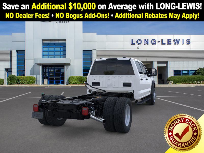Oxford White 2025 Ford F-450SD XL DRW 4WD 10-Speed Automatic Power Stroke 6.7L V8 DI 32V OHV Turbodiesel 4WD, 120V/400W Outlet, 190 Amp Alternator, 350 Amp Dual Alternators, 4-Wheel Disc Brakes, 6 Speakers, 6-Ton Hydraulic Jack, ABS brakes, Air Conditioning, AM/FM radio, Brake assist, Bright Grille, Chrome Front Bumper, Compass, Delay-off headlights, Dual 68 AH/65 AGM Battery, Dual front impact airbags, Dual front side impact airbags, Dual rear wheels, Emergency communication system: SYNC 4 911 Assist, Engine Block Heater, Front anti-roll bar, Front Center Armrest w/Storage, Front License Plate Bracket, Front reading lights, Fully automatic headlights, GVWR: 16,500 lb Payload Package, Halogen Fog Lamps, HD Vinyl 40/20/40 Split Bench Seat, Heated door mirrors, High Capacity Trailer Tow Package, Illuminated entry, Internet access capable: FordPass Connect 5G, Order Code 650A, Outside temperature display, Overhead airbag, Overhead console, Panic alarm, Passenger vanity mirror, Platform Running Boards, Power door mirrors, Power steering, Power windows, Privacy Glass w/Power Sliding Rear Glass, Rear anti-roll bar, Rear reading lights, Rear View Camera & Prep Kit, Rear Window Defroster, Remote keyless entry, Remote Start, Security system, Speed control, Split folding rear seat, Steering wheel mounted audio controls, SYNC 4 Communication & Entertainment System, Tachometer, Telescoping steering wheel, Tilt steering wheel, Traction control, Trailer Brake Controller, Trip computer, Turn signal indicator mirrors, Variably intermittent wipers, Wheels: 19.5" x 6" Argent Painted Steel, XL Chrome Package, 4WD.