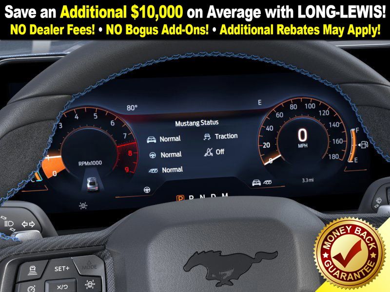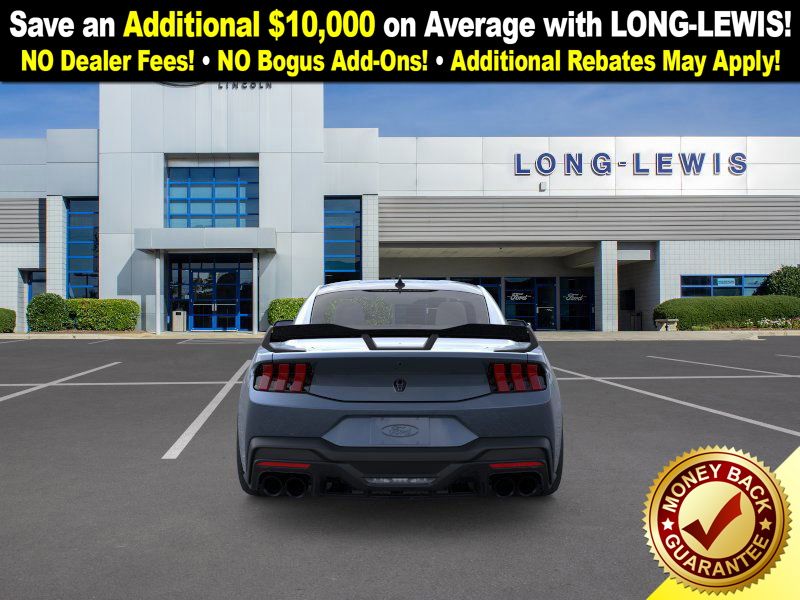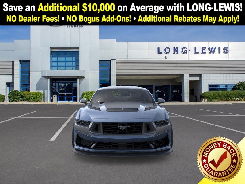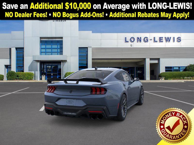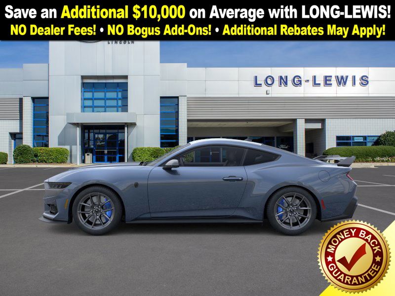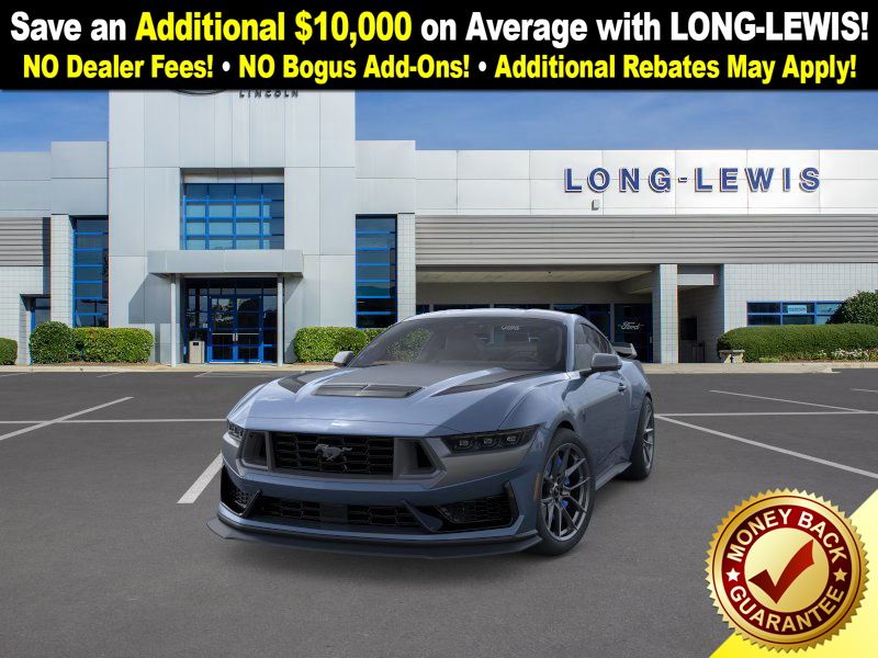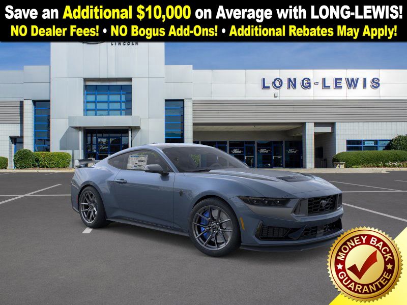 Vapor Blue Metallic 2025 Ford Mustang Dark Horse NFC RWD 10-Speed Automatic 5.0L V8 DOHC 32V 12 Speakers, 4-Wheel Disc Brakes, ABS brakes, Adaptive suspension, Air Conditioning, Alloy wheels, AM/FM radio: SiriusXM with 360L, AM/FM Stereo, Auto High-beam Headlights, Auto-dimming Rear-View mirror, Automatic temperature control, B&O Sound System by Bang & Olufsen, Brake assist, Bumpers: body-color, Cloth/Vinyl Climate-Controlled Bucket Seats, Cloth/Vinyl Heated Bucket Seats, Compass, Dark Horse Appearance Package, Dark Horse Handling Package, Delay-off headlights, Driver door bin, Driver vanity mirror, Dual front impact airbags, Dual front side impact airbags, Electronic Stability Control, Emergency communication system: 911 Assist, Exterior Parking Camera Rear, Four wheel independent suspension, Front anti-roll bar, Front Bucket Seats, Front Center Armrest, Front dual zone A/C, Front reading lights, Front Towing Hooks, Fully automatic headlights, HD Radio, Heated front seats, Heated steering wheel, Illuminated entry, Internet access capable: FordPass Connect, Knee airbag, Low tire pressure warning, Magnetic Damping System, Navigation system: Connected Navigation, Notorious Blue Painted Brake Calipers, Occupant sensing airbag, Outside temperature display, Overhead airbag, Overhead console, Painted Black Roof, Panic alarm, Passenger door bin, Passenger vanity mirror, Performance Front Aero Splitter, Performance Rear Spoiler w/Gurney Flap, Power door mirrors, Power driver seat, Power passenger seat, Power steering, Power windows, Radio data system, Rain sensing wipers, Rear anti-roll bar, Rear Parking Sensors, Rear window defroster, RECARO Micro-Suede/Vinyl Bucket Seats, RECARO Sport Seats, Remote keyless entry, SiriusXM w/360L, Speed control, Speed-sensing steering, Speed-Sensitive Wipers, Split folding rear seat, Spoiler, Sport steering wheel, Steering wheel mounted audio controls, SYNC 4, Tachometer, Telescoping steering wheel, Tilt steering wheel, Traction control, Trip computer, Unique Hood Graphic, Variably intermittent wipers, Voltmeter, Wheels: 19" x 10.5" Fr/19" x 11" Rr Tarnished Alum, Wheels: 19" x 9.5" Fr & 19" x 10" Rr Aluminum.