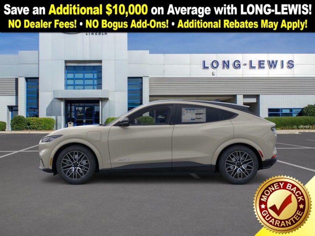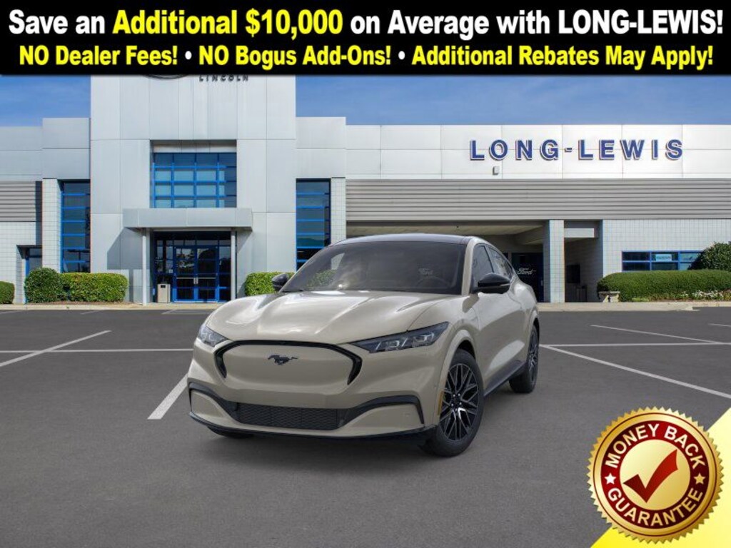 Dealer Discount of $2,041 off MSRP Desert Sand 2025 Ford Mustang Mach-E Premium NFT AWD Single-Speed Automatic Electric Motor 10 Speakers, 4-Wheel Disc Brakes, ABS brakes, Air Conditioning, Alloy wheels, AM/FM radio: SiriusXM with 360L, Apple CarPlay/Android Auto, Auto High-beam Headlights, Auto-dimming Rear-View mirror, Automatic temperature control, Brake assist, Bumpers: body-color, Compass, Delay-off headlights, Driver door bin, Driver vanity mirror, Dual front impact airbags, Dual front side impact airbags, Electronic Stability Control, Emergency communication system: 911 Assist, Equipment Group 300A Standard Package, Exterior Parking Camera Rear, Four wheel independent suspension, Front anti-roll bar, Front Bucket Seats, Front Center Armrest, Front dual zone A/C, Front License Plate Bracket, Front reading lights, Fully automatic headlights, Garage door transmitter, Heated door mirrors, Heated front seats, Heated steering wheel, Heated/Ventilated Perforated ActiveX Bucket Seats, Illuminated entry, Knee airbag, Low tire pressure warning, Memory seat, Mobile Power Cord (120V/240V), Navigation system: Connected Navigation, Occupant sensing airbag, Outside temperature display, Overhead airbag, Overhead console, Panic alarm, Panoramic Fixed-Glass Roof, Passenger door bin, Passenger vanity mirror, Power door mirrors, Power driver seat, Power Liftgate, Power passenger seat, Power steering, Power windows, Radio data system, Radio: B&O Sound System by Bang & Olufsen, Rain sensing wipers, Rear anti-roll bar, Rear seat center armrest, Rear side impact airbag, Rear window defroster, Rear window wiper, Remote keyless entry, Security system, SiriusXM w/360L, Speed control, Speed-sensing steering, Speed-Sensitive Wipers, Split folding rear seat, Spoiler, Steering wheel mounted audio controls, SYNC 4A w/Enhanced Voice Recognition, Telescoping steering wheel, Tilt steering wheel, Traction control, Trip computer, Turn signal indicator mirrors, Variably intermittent wipers, Ventilated front seats, Wheels: 19" Bright Machined-Face Aluminum.