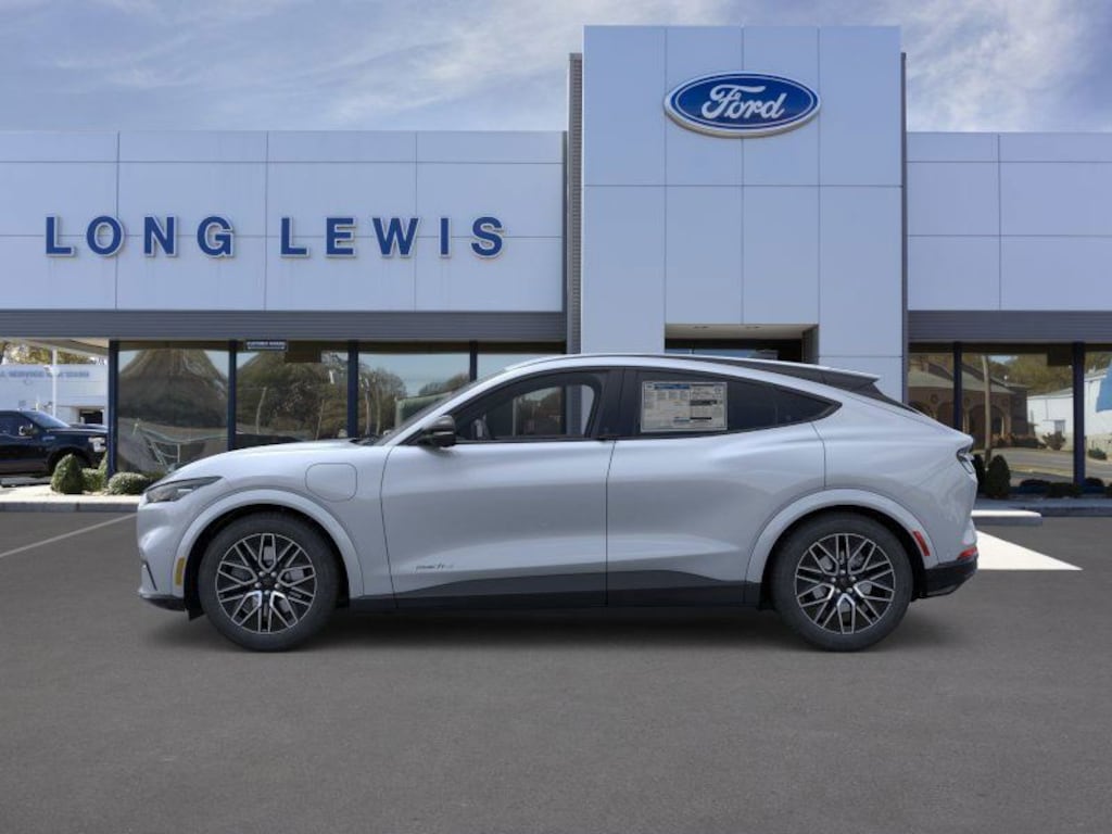Glacier Gray Metallic TriCoat 2025 Ford Mustang Mach-E Premium RWD Single-Speed Automatic Electric Motor 10 Speakers, 4-Wheel Disc Brakes, ABS brakes, Air Conditioning, Alloy wheels, AM/FM radio: SiriusXM with 360L, Apple CarPlay/Android Auto, Auto High-beam Headlights, Auto-dimming Rear-View mirror, Automatic temperature control, Brake assist, Bumpers: body-color, Compass, Delay-off headlights, Driver door bin, Driver vanity mirror, Dual front impact airbags, Dual front side impact airbags, Electronic Stability Control, Emergency communication system: 911 Assist, Exterior Parking Camera Rear, Four wheel independent suspension, Front anti-roll bar, Front Bucket Seats, Front Center Armrest, Front dual zone A/C, Front License Plate Bracket, Front reading lights, Fully automatic headlights, Garage door transmitter, Heated door mirrors, Heated front seats, Heated steering wheel, Heated/Ventilated Perforated ActiveX Bucket Seats, Illuminated entry, Knee airbag, Low tire pressure warning, Memory seat, Mobile Power Cord (120V/240V), Navigation system: Connected Navigation, Occupant sensing airbag, Outside temperature display, Overhead airbag, Overhead console, Panic alarm, Passenger door bin, Passenger vanity mirror, Power door mirrors, Power driver seat, Power Liftgate, Power passenger seat, Power steering, Power windows, Radio data system, Radio: B&O Sound System by Bang & Olufsen, Rain sensing wipers, Rear anti-roll bar, Rear seat center armrest, Rear side impact airbag, Rear window defroster, Rear window wiper, Remote keyless entry, Security system, SiriusXM w/360L, Speed control, Speed-sensing steering, Speed-Sensitive Wipers, Split folding rear seat, Spoiler, Steering wheel mounted audio controls, SYNC 4A w/Enhanced Voice Recognition, Telescoping steering wheel, Tilt steering wheel, Traction control, Trip computer, Turn signal indicator mirrors, Variably intermittent wipers, Ventilated front seats, Wheels: 19" Bright Machined-Face Aluminum.