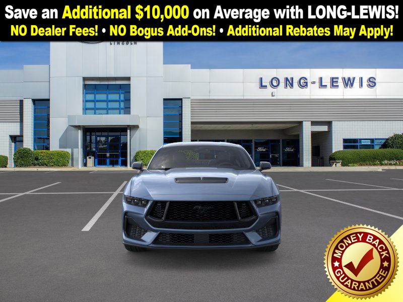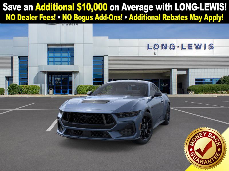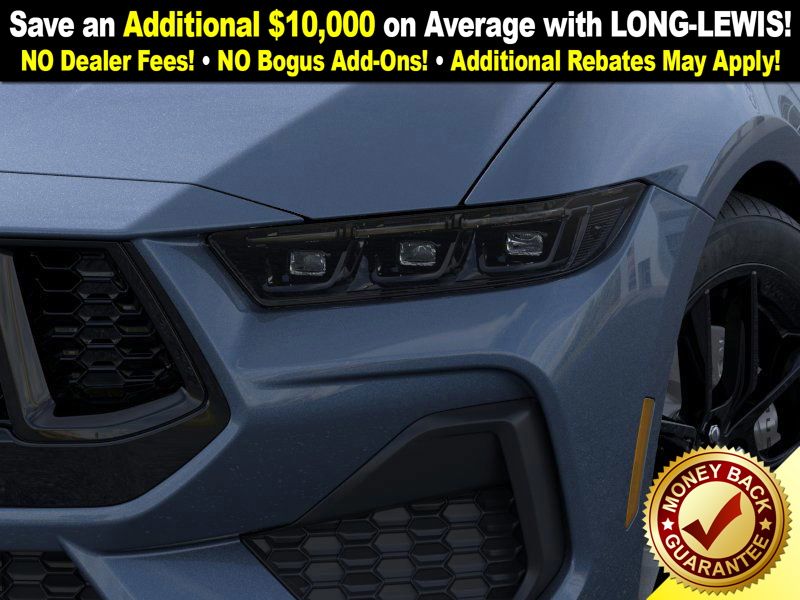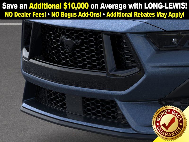 Vapor Blue Metallic 2025 Ford Mustang GT Premium FCT RWD 6-Speed Manual 5.0L V8 Ti-VCT 3.55 Limited Slip Rear Axle, 4-Wheel Disc Brakes, ABS brakes, Active Valve Performance Exhaust, Air Conditioning, Alloy wheels, AM/FM Stereo, Auto High-beam Headlights, Automatic temperature control, B&O Sound System by Bang & Olufsen w/12 Speakers, Brake assist, Bumpers: body-color, Compass, Delay-off headlights, Driver door bin, Driver vanity mirror, Dual front impact airbags, Dual front side impact airbags, Electronic Stability Control, Emergency communication system: 911 Assist, Equipment Group 401A High Package, Exterior Parking Camera Rear, Four wheel independent suspension, Front anti-roll bar, Front Bucket Seats, Front Center Armrest, Front dual zone A/C, Front reading lights, Fully automatic headlights, Headlamps w/Black Bezels, Illuminated Door-Sill Scuff Plates, Illuminated entry, Internet access capable: FordPass Connect, Knee airbag, Leather Shift Knob, Leather steering wheel, Leather-Trimmed Bucket Seats w/Color Accents, Low tire pressure warning, Mustang Nite Pony Package, Mustang Nite Pony Package w/Shadow Black Paint, Occupant sensing airbag, Outside temperature display, Overhead airbag, Overhead console, Panic alarm, Passenger door bin, Passenger vanity mirror, Power door mirrors, Power steering, Power windows, Radio data system, Rain sensing wipers, Rear anti-roll bar, Rear Parking Sensors, Rear window defroster, Remote keyless entry, Speed control, Speed-sensing steering, Speed-Sensitive Wipers, Split folding rear seat, Spoiler, Sport steering wheel, Steering wheel mounted audio controls, SYNC 4, Tachometer, Telescoping steering wheel, Tilt steering wheel, Traction control, Trip computer, Variably intermittent wipers, Voltmeter. Price includes: $1000 - Final Days Mega Bonus Cash. Exp. 01/02/2026 $3500 - Retail Customer Cash. Exp. 01/05/2026