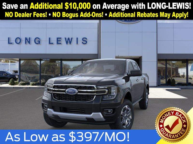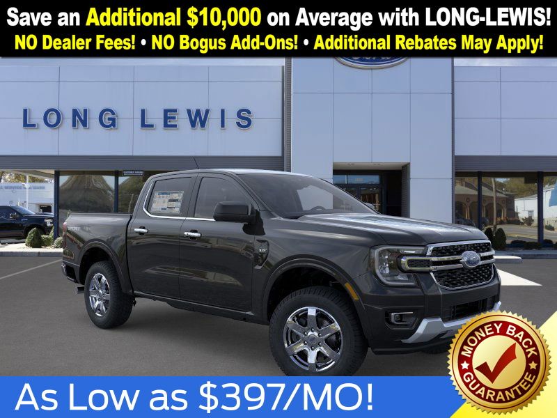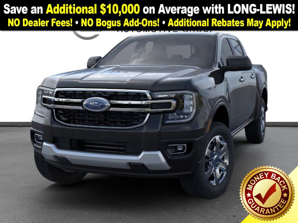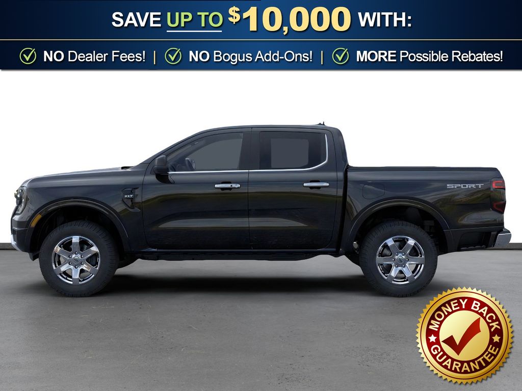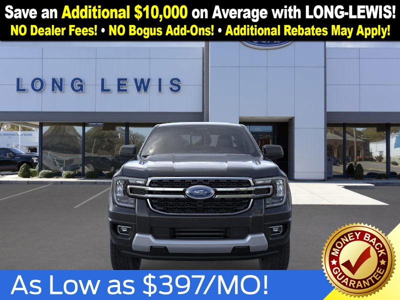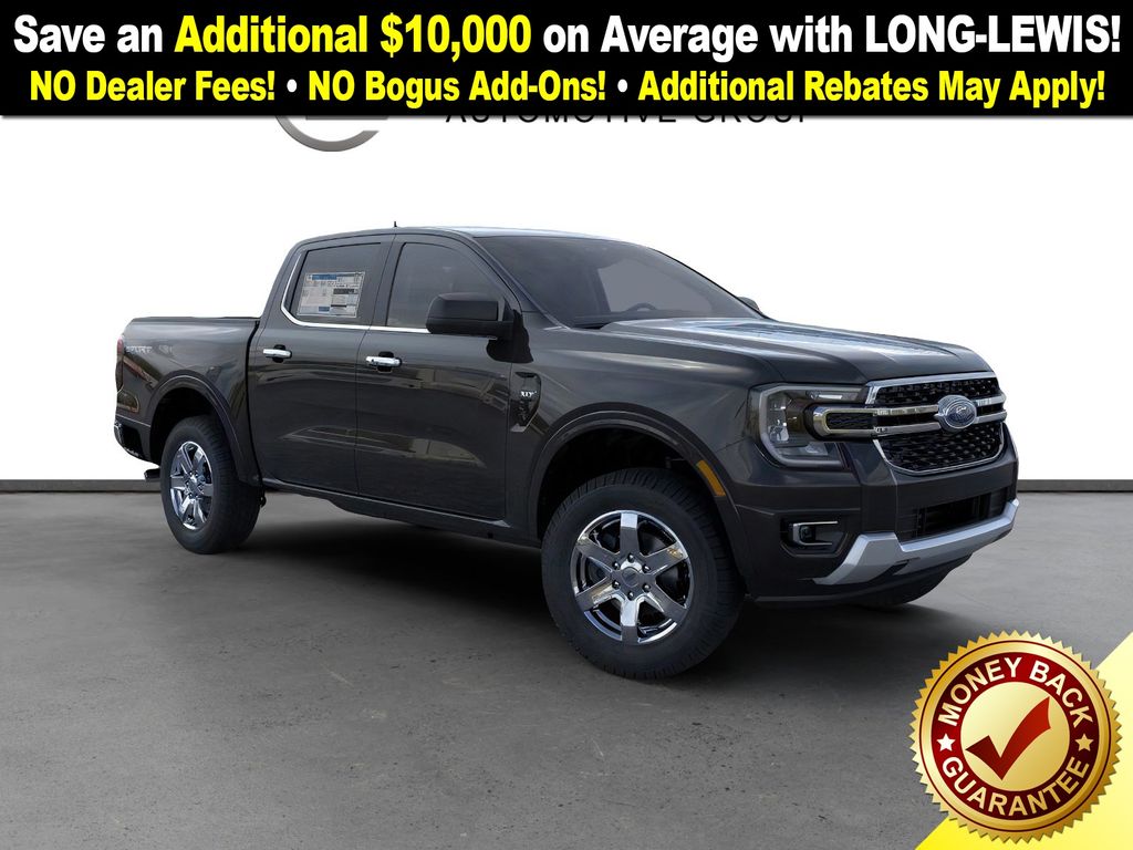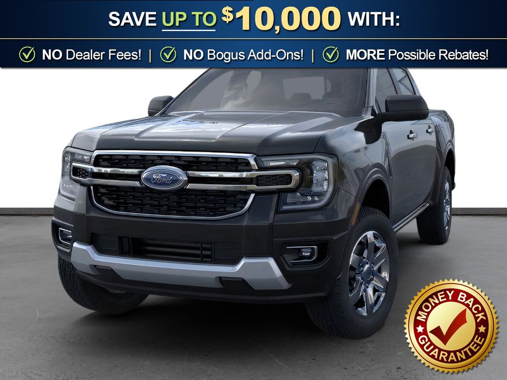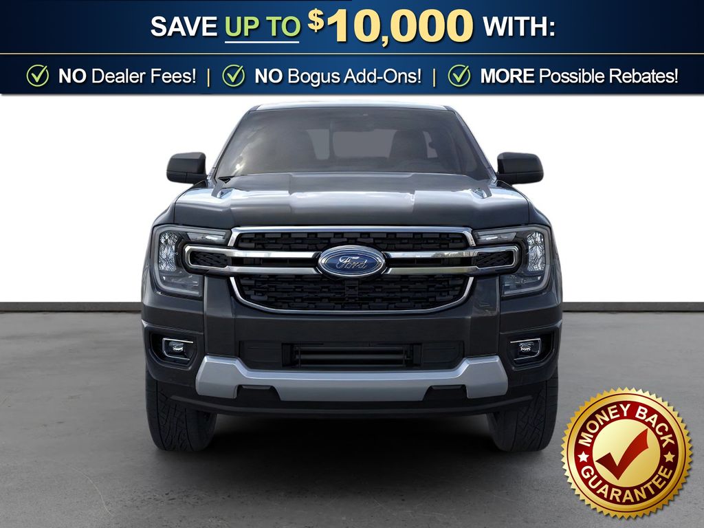 Shadow Black 2025 Ford Ranger XLT fctp RWD 10-Speed Automatic EcoBoost 2.3L I4 GTDi DOHC Turbocharged VCT 3.73 Axle Ratio, 4-Wheel Disc Brakes, 6 Speakers, ABS brakes, Air Conditioning, Alloy wheels, AM/FM radio: SiriusXM, AM/FM Stereo, Auto High-beam Headlights, Auto-dimming Rear-View mirror, Body Color Painted Front Fascia, Brake assist, Chrome Accent Package, Chrome Center Bar & Grille Surround, Chrome Rear Bumper, Cloth Front Bucket Seats, Compass, Delay-off headlights, Driver door bin, Driver vanity mirror, Dual front impact airbags, Dual front side impact airbags, Electronic Stability Control, Electronic-Locking Rear Differential, Emergency communication system: SYNC 4 911 Assist, Front anti-roll bar, Front Bucket Seats, Front Center Armrest, Front fog lights, Front License Plate Bracket, Front reading lights, Front wheel independent suspension, Fully automatic headlights, Gray Painted Center Bar & Grille Surround, Gray Painted Front Fascia & Rear Bumper, Illuminated entry, Integrated Box Side Step, Leather Shift Knob, Low tire pressure warning, Navigation system: Connected Navigation, Occupant sensing airbag, Outside temperature display, Overhead airbag, Overhead console, Painted Body-Color Wheel Lip Molding, Panic alarm, Passenger door bin, Passenger vanity mirror, Power door mirrors, Power steering, Power windows, Rear reading lights, Rear seat center armrest, Rear step bumper, Rear window defroster, Remote keyless entry, Security system, SiriusXM Satellite Radio, Speed control, Speed-sensing steering, Sport Appearance Package, Sport Box Decal, Steering wheel mounted audio controls, SYNC 4A w/Connected Navigation, Telescoping steering wheel, Tilt steering wheel, Traction control, Trip computer, Variably intermittent wipers, Voltmeter, Wheels: 17" Gray-Painted Aluminum, Wheels: 18" Chrome-Like PVD.
