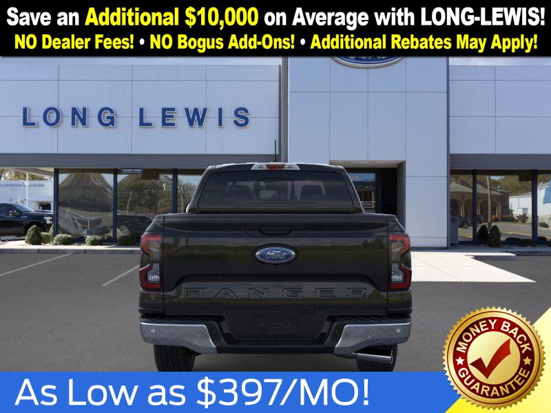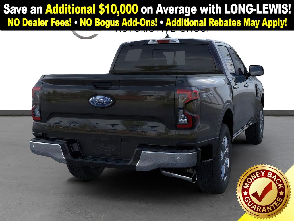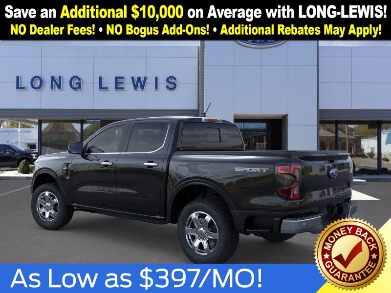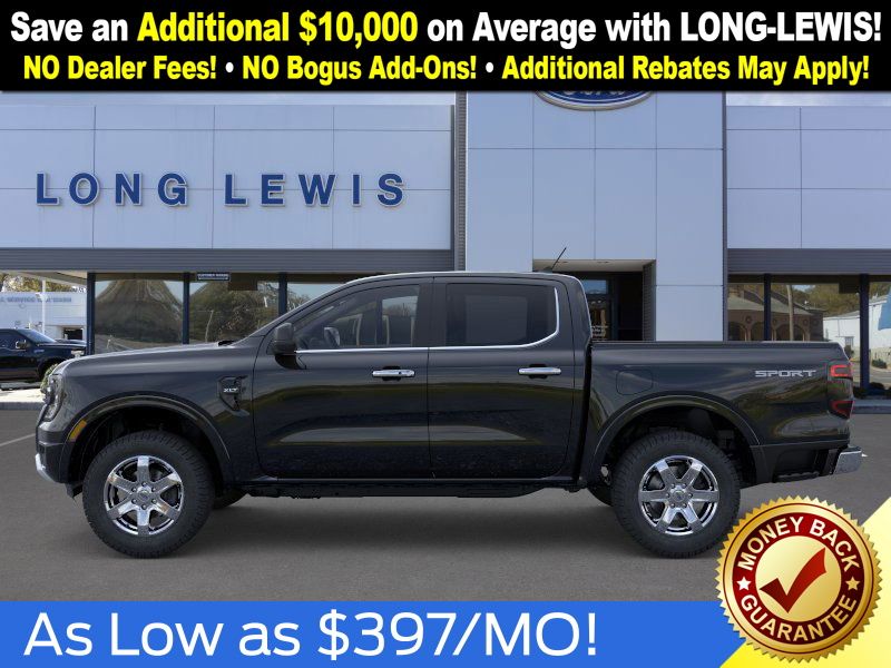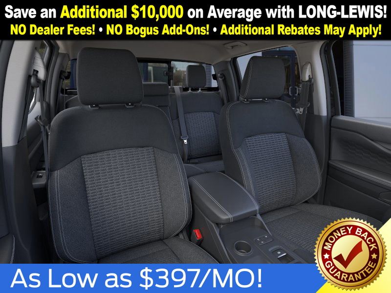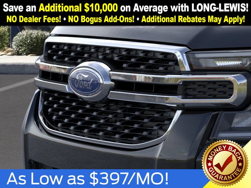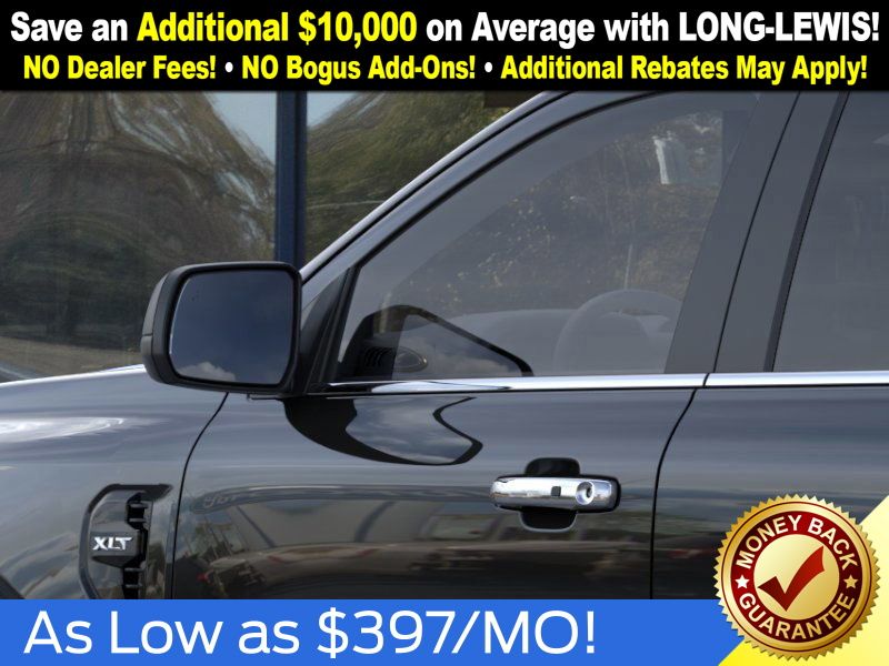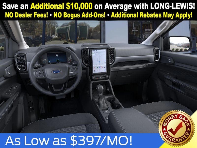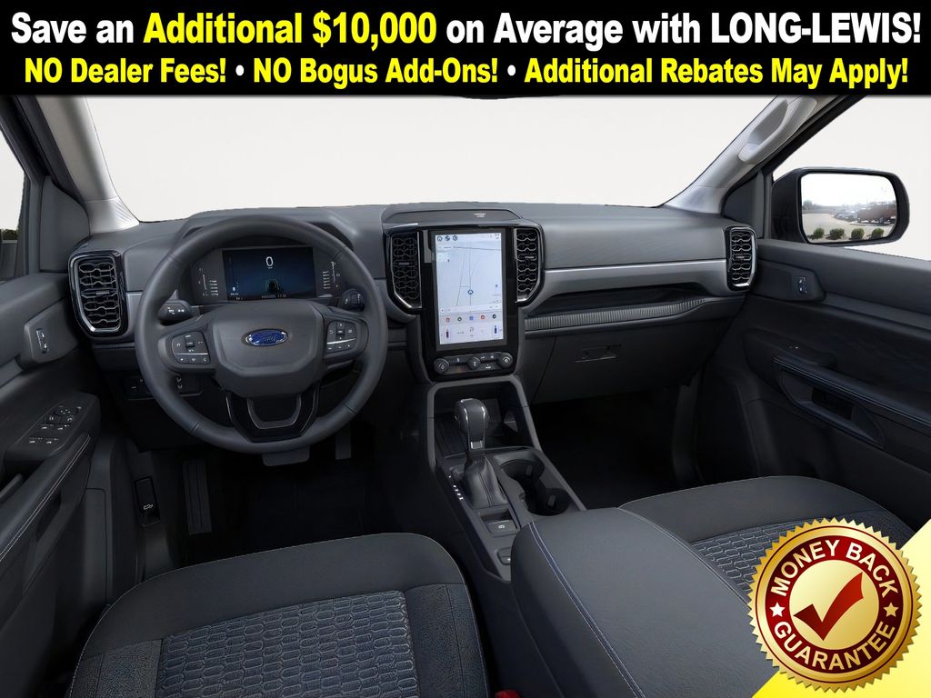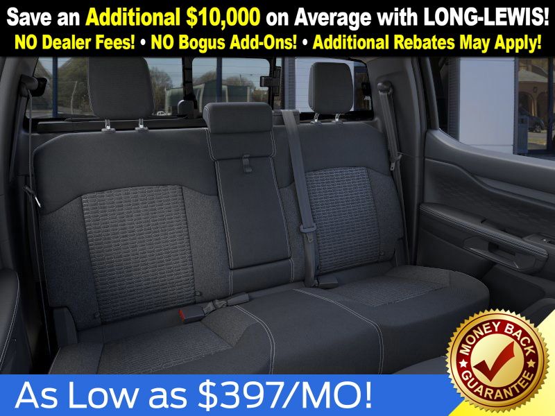 Shadow Black 2025 Ford Ranger XLT fctp RWD 10-Speed Automatic EcoBoost 2.3L I4 GTDi DOHC Turbocharged VCT 3.73 Axle Ratio, 4-Wheel Disc Brakes, 6 Speakers, ABS brakes, Air Conditioning, Alloy wheels, AM/FM radio: SiriusXM, AM/FM Stereo, Auto High-beam Headlights, Auto-dimming Rear-View mirror, Body Color Painted Front Fascia, Brake assist, Chrome Accent Package, Chrome Center Bar & Grille Surround, Chrome Rear Bumper, Cloth Front Bucket Seats, Compass, Delay-off headlights, Driver door bin, Driver vanity mirror, Dual front impact airbags, Dual front side impact airbags, Electronic Stability Control, Electronic-Locking Rear Differential, Emergency communication system: SYNC 4 911 Assist, Front anti-roll bar, Front Bucket Seats, Front Center Armrest, Front fog lights, Front License Plate Bracket, Front reading lights, Front wheel independent suspension, Fully automatic headlights, Gray Painted Center Bar & Grille Surround, Gray Painted Front Fascia & Rear Bumper, Illuminated entry, Integrated Box Side Step, Leather Shift Knob, Low tire pressure warning, Navigation system: Connected Navigation, Occupant sensing airbag, Outside temperature display, Overhead airbag, Overhead console, Painted Body-Color Wheel Lip Molding, Panic alarm, Passenger door bin, Passenger vanity mirror, Power door mirrors, Power steering, Power windows, Rear reading lights, Rear seat center armrest, Rear step bumper, Rear window defroster, Remote keyless entry, Security system, SiriusXM Satellite Radio, Speed control, Speed-sensing steering, Sport Appearance Package, Sport Box Decal, Steering wheel mounted audio controls, SYNC 4A w/Connected Navigation, Telescoping steering wheel, Tilt steering wheel, Traction control, Trip computer, Variably intermittent wipers, Voltmeter, Wheels: 17" Gray-Painted Aluminum, Wheels: 18" Chrome-Like PVD.