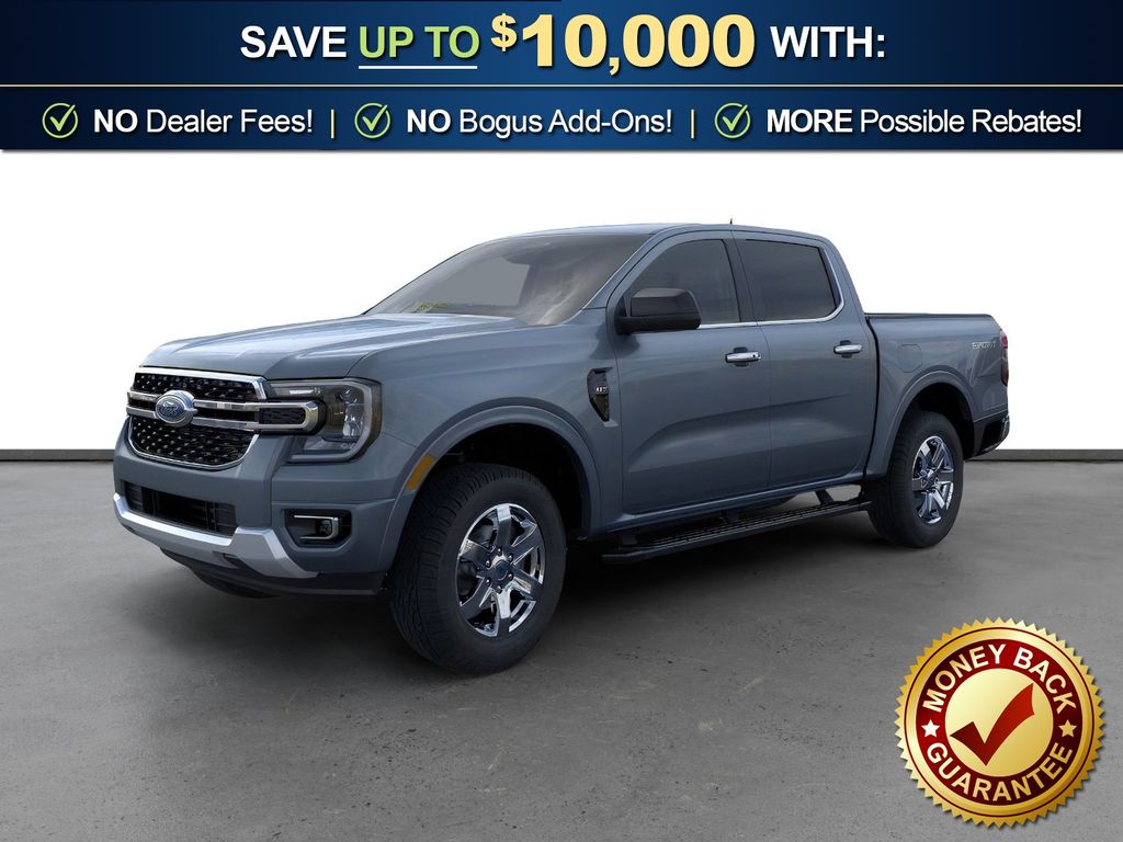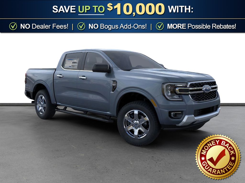 Azure Gray Metallic Tri-Coat 2025 Ford Ranger XLT FCT RWD 10-Speed Automatic EcoBoost 2.3L I4 GTDi DOHC Turbocharged VCT 12" Display in Center Stack, 3.73 Axle Ratio, 4-Wheel Disc Brakes, 6 Speakers, ABS brakes, Air Conditioning, Alloy wheels, AM/FM radio: SiriusXM, AM/FM Stereo, Auto High-beam Headlights, Auto-dimming Rear-View mirror, Black Running Boards, Body Color Painted Front Fascia, Brake assist, Chrome Accent Package, Chrome Center Bar & Grille Surround, Chrome Rear Bumper, Class IV Trailer Hitch Receiver, Cloth Front Bucket Seats, Compass, Delay-off headlights, Driver door bin, Driver vanity mirror, Dual front impact airbags, Dual front side impact airbags, Dual-Zone Electronic Climate Control (DEATC), Electronic Stability Control, Emergency communication system: SYNC 4 911 Assist, Equipment Group 301A High, Front anti-roll bar, Front Bucket Seats, Front Center Armrest, Front fog lights, Front License Plate Bracket, Front reading lights, Front wheel independent suspension, Fully automatic headlights, Gray Painted Center Bar & Grille Surround, Gray Painted Front Fascia & Rear Bumper, Illuminated entry, Integrated Box Side Step, Internet access capable: FordPass Connect 4G, Leather Shift Knob, Low tire pressure warning, Navigation system: Connected Navigation, Occupant sensing airbag, Outside temperature display, Overhead airbag, Overhead console, Painted Body-Color Wheel Lip Molding, Panic alarm, Passenger door bin, Passenger vanity mirror, Power door mirrors, Power steering, Power windows, Power-Sliding Rear Window, Rear reading lights, Rear seat center armrest, Rear step bumper, Rear window defroster, Remote keyless entry, Security system, SiriusXM Satellite Radio, Speed control, Speed-sensing steering, Sport Appearance Package, Sport Box Decal, Steering wheel mounted audio controls, SYNC 4A w/Connected Navigation, Telescoping steering wheel, Tilt steering wheel, Traction control, Trailer Tow Package, Trip computer, Variably intermittent wipers, Voltmeter, Wheels: 17" Gray-Painted Aluminum, Wheels: 18" Chrome-Like PVD. Price includes: $1000 - Truck Month Bonus Customer Cash. Exp. 03/31/2026 $2000 - Bonus Customer Cash. Exp. 03/31/2026