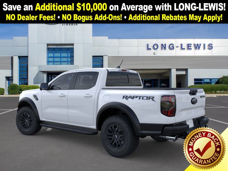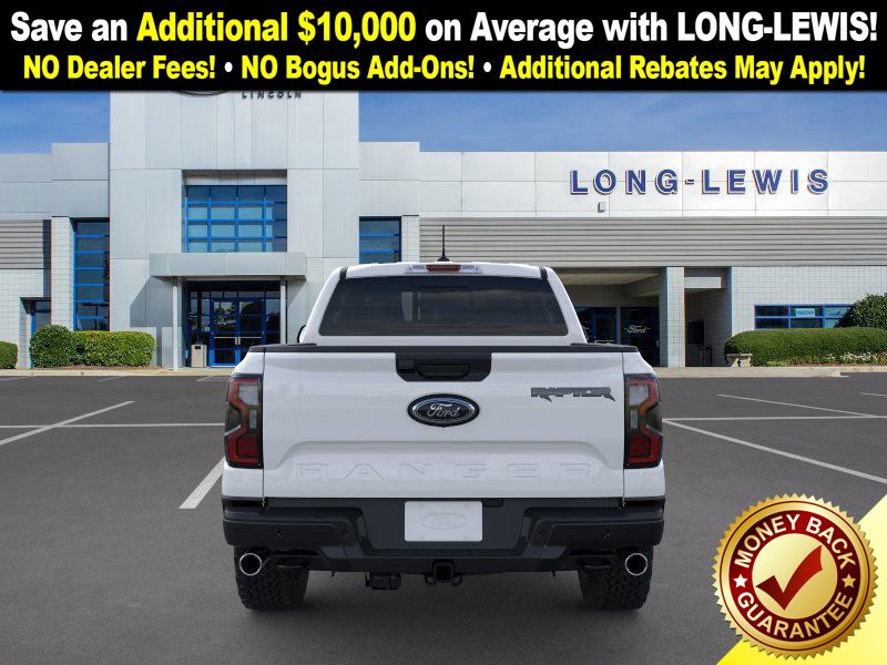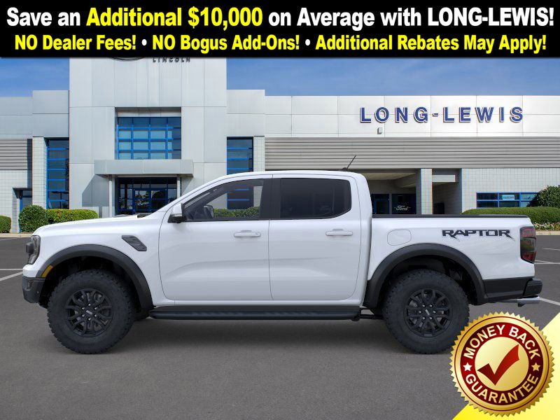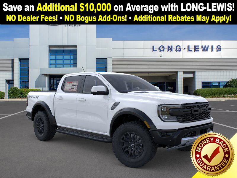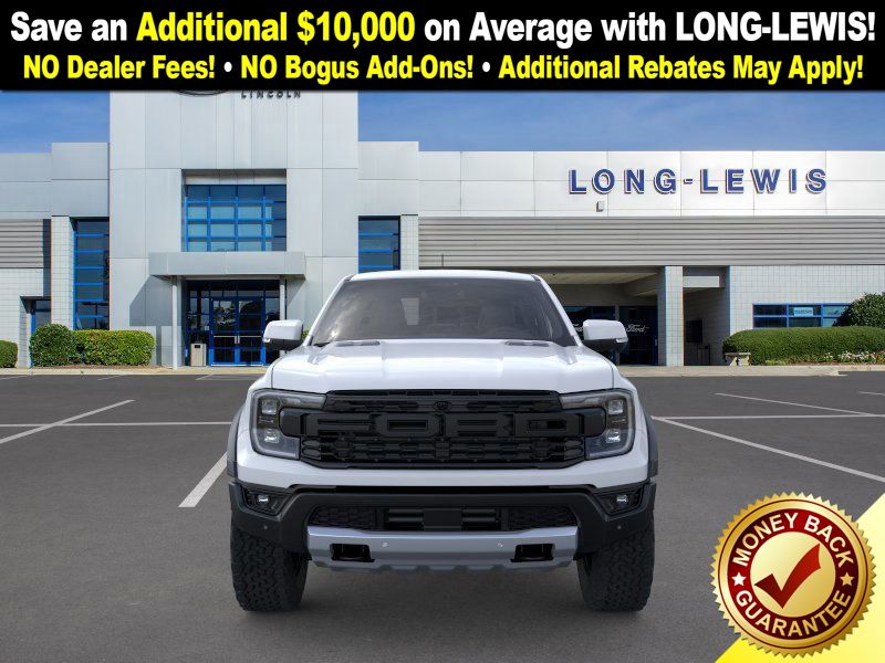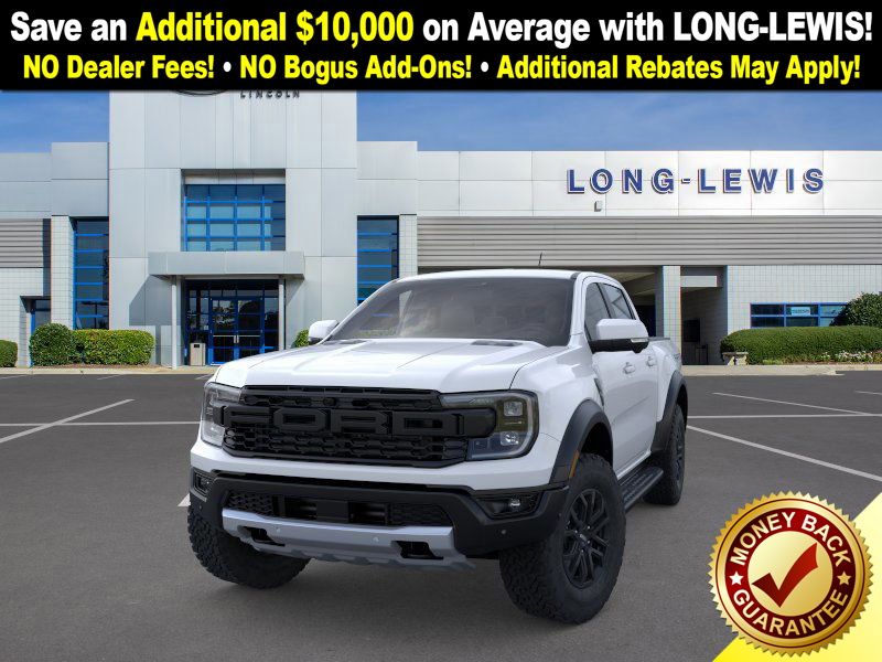 Dealer Discount of $1,000 off MSRP Oxford White 2025 Ford Ranger Raptor NFT 4WD 10-Speed Automatic 3.0L EcoBoost V6 4WD, 10 Speakers, 4-Wheel Disc Brakes, 4.27 Axle Ratio, ABS brakes, Air Conditioning, Alloy wheels, AM/FM radio: SiriusXM, Auto High-beam Headlights, Auto-dimming Rear-View mirror, Automatic temperature control, Brake assist, Compass, Delay-off headlights, Driver door bin, Driver vanity mirror, Dual front impact airbags, Dual front side impact airbags, Electronic Stability Control, Emergency communication system: SYNC 4 911 Assist, Front anti-roll bar, Front Bucket Seats, Front Center Armrest, Front dual zone A/C, Front fog lights, Front License Plate Bracket, Front reading lights, Front wheel independent suspension, Fully automatic headlights, Garage door transmitter, Heated door mirrors, Heated front seats, Heated steering wheel, Illuminated entry, Internet access capable: FordPass Connect 4G, Leather Shift Knob, Leather steering wheel, Leather-Trimmed Front Heated Bucket Seats, Low tire pressure warning, Memory seat, Navigation system: Connected Navigation, Occupant sensing airbag, Outside temperature display, Overhead airbag, Overhead console, Panic alarm, Passenger door bin, Passenger vanity mirror, Power door mirrors, Power driver seat, Power passenger seat, Power steering, Power windows, Radio: B&O Sound System by Bang & Olufsen, Rain sensing wipers, Rear reading lights, Rear seat center armrest, Rear step bumper, Rear window defroster, Remote keyless entry, Security system, SiriusXM Satellite Radio, Speed control, Speed-sensing steering, Steering wheel mounted audio controls, SYNC 4A, Telescoping steering wheel, Tilt steering wheel, Traction control, Trip computer, Turn signal indicator mirrors, Variably intermittent wipers, Voltmeter, Wheels: 17" Gray-Painted Aluminum, 4WD.