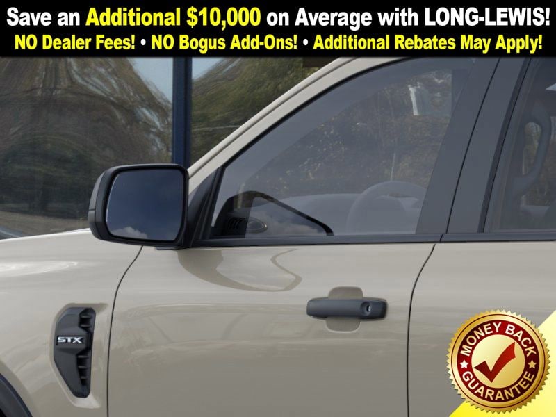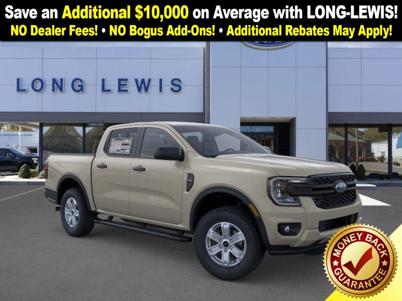 Desert Sand 2025 Ford Ranger XL fctp RWD 10-Speed Automatic EcoBoost 2.3L I4 GTDi DOHC Turbocharged VCT 3.73 Axle Ratio, 4-Wheel Disc Brakes, 6 Speakers, ABS brakes, Air Conditioning, Alloy wheels, AM/FM radio, AM/FM Stereo, Auto High-beam Headlights, Black Running Boards, Brake assist, Bumpers: body-color, Carpet Floor Covering w/Carpet Floor Mats, Class IV Trailer Hitch Receiver, Cloth Front Bucket Seats, Compass, Delay-off headlights, Driver door bin, Dual front impact airbags, Dual front side impact airbags, Electronic Stability Control, Emergency communication system: SYNC 4 911 Assist, Front anti-roll bar, Front Bucket Seats, Front Center Armrest, Front fog lights, Front License Plate Bracket, Front reading lights, Front wheel independent suspension, Fully automatic headlights, Halogen Fog Lamps, Illuminated entry, LED Reflector Headlamps, Low tire pressure warning, Occupant sensing airbag, Outside temperature display, Overhead airbag, Overhead console, Panic alarm, Passenger door bin, Power door mirrors, Power steering, Power windows, Rear reading lights, Rear seat center armrest, Rear step bumper, Remote keyless entry, Security system, Speed control, Speed-sensing steering, Steering wheel mounted audio controls, STX Appearance Package, STX Fender Badge, SYNC 4A, Telescoping steering wheel, Tilt steering wheel, Traction control, Trailer Tow Package, Trip computer, Variably intermittent wipers, Voltmeter, Wheels: 17" Silver-Painted Aluminum.