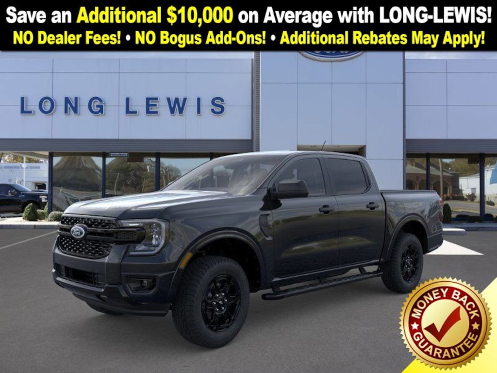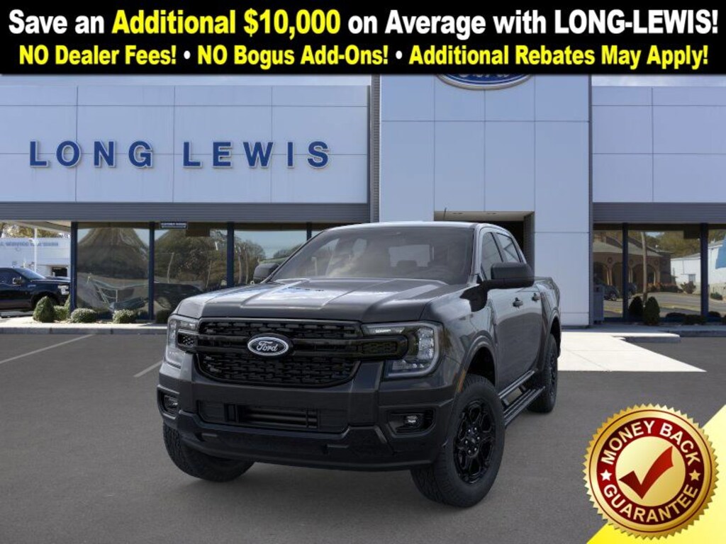 Shadow Black 2025 Ford Ranger XLT fctp RWD 10-Speed Automatic EcoBoost 2.3L I4 GTDi DOHC Turbocharged VCT 3.73 Axle Ratio, 4-Wheel Disc Brakes, 6 Speakers, ABS brakes, Air Conditioning, Alloy wheels, AM/FM radio: SiriusXM, AM/FM Stereo, Auto High-beam Headlights, Auto-dimming Rear-View mirror, Black Appearance Package, Black Center Bar & Surround Grille, Black Rear Bumper, Black Running Boards, Body-Color Painted Front Fascia, Brake assist, Class IV Trailer Hitch Receiver, Cloth Front Bucket Seats, Compass, Delay-off headlights, Driver door bin, Driver vanity mirror, Dual front impact airbags, Dual front side impact airbags, Electronic Stability Control, Electronic-Locking Rear Differential, Emergency communication system: SYNC 4 911 Assist, Front & Rear Black Ford Ovals, Front anti-roll bar, Front Bucket Seats, Front Center Armrest, Front fog lights, Front License Plate Bracket, Front reading lights, Front wheel independent suspension, Fully automatic headlights, Gray Painted Center Bar & Grille Surround, Gray Painted Front Fascia & Rear Bumper, Illuminated entry, Leather Shift Knob, Low tire pressure warning, Navigation system: Connected Navigation, Occupant sensing airbag, Outside temperature display, Overhead airbag, Overhead console, Painted Body-Color Wheel Lip Molding, Panic alarm, Passenger door bin, Passenger vanity mirror, Power door mirrors, Power steering, Power windows, Rear reading lights, Rear seat center armrest, Rear step bumper, Rear window defroster, Remote keyless entry, Security system, SiriusXM Satellite Radio, Speed control, Speed-sensing steering, Sport Appearance Package, Sport Box Decal, Steering wheel mounted audio controls, SYNC 4A w/Connected Navigation, Telescoping steering wheel, Tilt steering wheel, Traction control, Trailer Tow Package, Trip computer, Unique Carpet Mats, Variably intermittent wipers, Voltmeter, Wheels: 17" Gray-Painted Aluminum.
