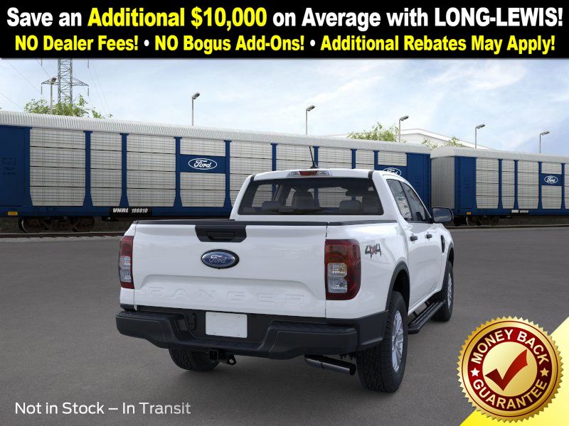 Oxford White 2025 Ford Ranger XL NFT 4WD 10-Speed Automatic EcoBoost 2.3L I4 GTDi DOHC Turbocharged VCT 4WD, 4-Wheel Disc Brakes, 6 Speakers, ABS brakes, Air Conditioning, Alloy wheels, AM/FM radio, AM/FM Stereo, Auto High-beam Headlights, Black Running Boards, Brake assist, Bumpers: body-color, Class IV Trailer Hitch Receiver, Cloth Front Bucket Seats, Compass, Delay-off headlights, Driver door bin, Dual front impact airbags, Dual front side impact airbags, Electronic Stability Control, Emergency communication system: SYNC 4 911 Assist, Front anti-roll bar, Front Bucket Seats, Front Center Armrest, Front fog lights, Front License Plate Bracket, Front reading lights, Front wheel independent suspension, Fully automatic headlights, Halogen Fog Lamps, Illuminated entry, Internet access capable: FordPass Connect 4G, LED Reflector Headlamps, Low tire pressure warning, Occupant sensing airbag, Outside temperature display, Overhead airbag, Overhead console, Panic alarm, Passenger door bin, Power door mirrors, Power steering, Power windows, Rear reading lights, Rear seat center armrest, Rear step bumper, Remote keyless entry, Security system, Speed control, Speed-sensing steering, Steering wheel mounted audio controls, STX Appearance Package, STX Fender Badge, SYNC 4A, Telescoping steering wheel, Tilt steering wheel, Traction control, Trailer Tow Package, Trip computer, Variably intermittent wipers, Voltmeter, Wheels: 17" Silver-Painted Aluminum, 4WD.