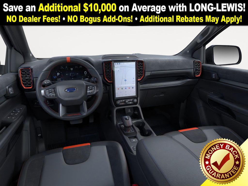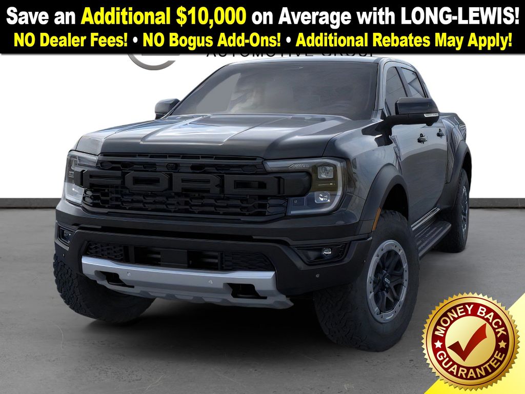Dealer Discount of $1,000 off MSRP Shadow Black 2025 Ford Ranger Raptor NFT 4WD 10-Speed Automatic 3.0L EcoBoost V6 4WD, 10 Speakers, 4-Wheel Disc Brakes, 4.27 Axle Ratio, ABS brakes, Air Conditioning, Alloy wheels, AM/FM radio: SiriusXM, Auto High-beam Headlights, Auto-dimming Rear-View mirror, Automatic temperature control, Brake assist, Compass, Delay-off headlights, Driver door bin, Driver vanity mirror, Dual front impact airbags, Dual front side impact airbags, Electronic Stability Control, Emergency communication system: SYNC 4 911 Assist, Front anti-roll bar, Front Bucket Seats, Front Center Armrest, Front dual zone A/C, Front fog lights, Front License Plate Bracket, Front reading lights, Front wheel independent suspension, Fully automatic headlights, Garage door transmitter, Heated door mirrors, Heated front seats, Heated steering wheel, Illuminated entry, Internet access capable: FordPass Connect 4G, Leather Shift Knob, Leather steering wheel, Leather-Trimmed Front Heated Bucket Seats, Low tire pressure warning, Memory seat, Navigation system: Connected Navigation, Occupant sensing airbag, Outside temperature display, Overhead airbag, Overhead console, Panic alarm, Passenger door bin, Passenger vanity mirror, Power door mirrors, Power driver seat, Power passenger seat, Power steering, Power windows, Radio: B&O Sound System by Bang & Olufsen, Rain sensing wipers, Rear reading lights, Rear seat center armrest, Rear step bumper, Rear window defroster, Remote keyless entry, Security system, SiriusXM Satellite Radio, Speed control, Speed-sensing steering, Steering wheel mounted audio controls, SYNC 4A, Telescoping steering wheel, Tilt steering wheel, Traction control, Trip computer, Turn signal indicator mirrors, Variably intermittent wipers, Voltmeter, Wheels: 17" Forged Beadlock Capable, Wheels: 17" Gray-Painted Aluminum, 4WD.