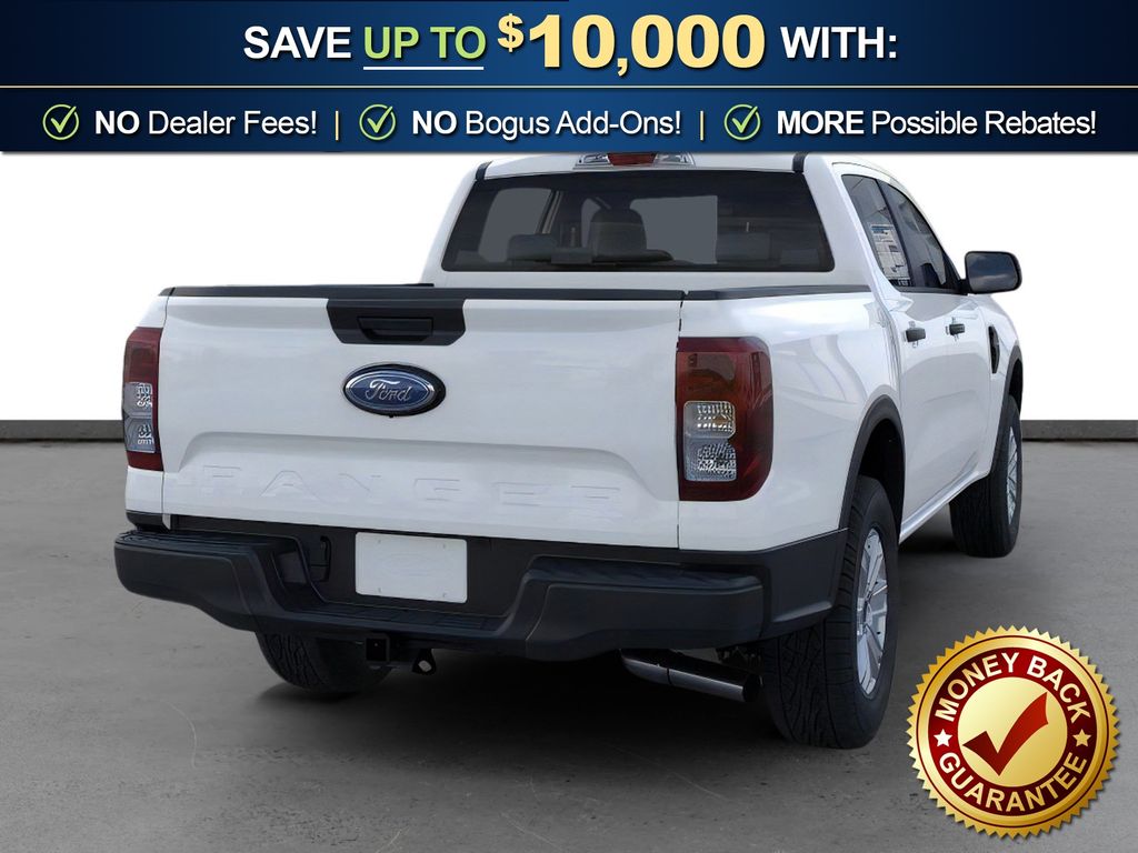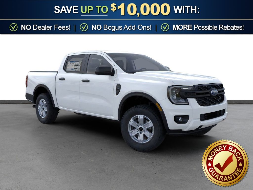 Oxford White 2025 Ford Ranger XL NFT RWD 10-Speed Automatic EcoBoost 2.3L I4 GTDi DOHC Turbocharged VCT 4-Wheel Disc Brakes, 6 Speakers, ABS brakes, Air Conditioning, Alloy wheels, AM/FM radio, AM/FM Stereo, Auto High-beam Headlights, Brake assist, Bumpers: body-color, Carpet Floor Covering w/Carpet Floor Mats, Class IV Trailer Hitch Receiver, Cloth Front Bucket Seats, Compass, Delay-off headlights, Driver door bin, Dual front impact airbags, Dual front side impact airbags, Electronic Stability Control, Emergency communication system: SYNC 4 911 Assist, Front anti-roll bar, Front Bucket Seats, Front Center Armrest, Front fog lights, Front License Plate Bracket, Front reading lights, Front wheel independent suspension, Fully automatic headlights, Halogen Fog Lamps, Illuminated entry, Internet access capable: FordPass Connect 4G, LED Reflector Headlamps, Low tire pressure warning, Occupant sensing airbag, Outside temperature display, Overhead airbag, Overhead console, Panic alarm, Passenger door bin, Power door mirrors, Power steering, Power windows, Rear reading lights, Rear seat center armrest, Rear step bumper, Remote keyless entry, Security system, Speed control, Speed-sensing steering, Steering wheel mounted audio controls, STX Appearance Package, STX Fender Badge, SYNC 4A, Telescoping steering wheel, Tilt steering wheel, Traction control, Trailer Tow Package, Trip computer, Variably intermittent wipers, Voltmeter, Wheels: 17" Silver-Painted Aluminum.