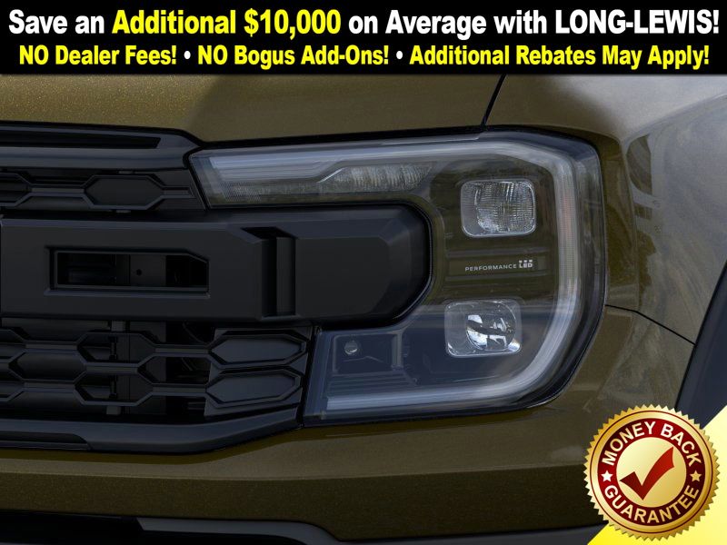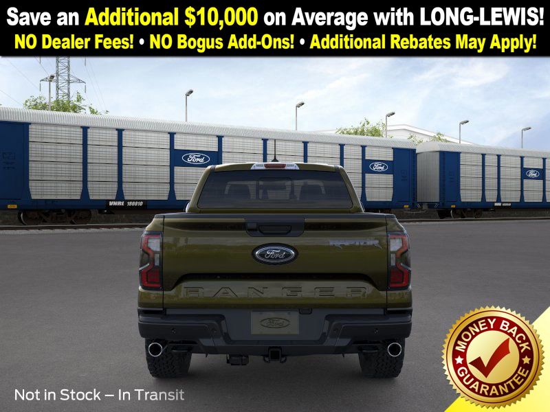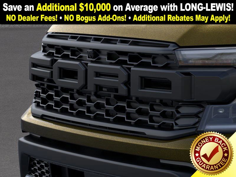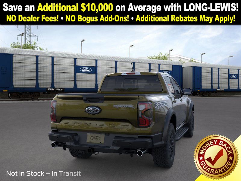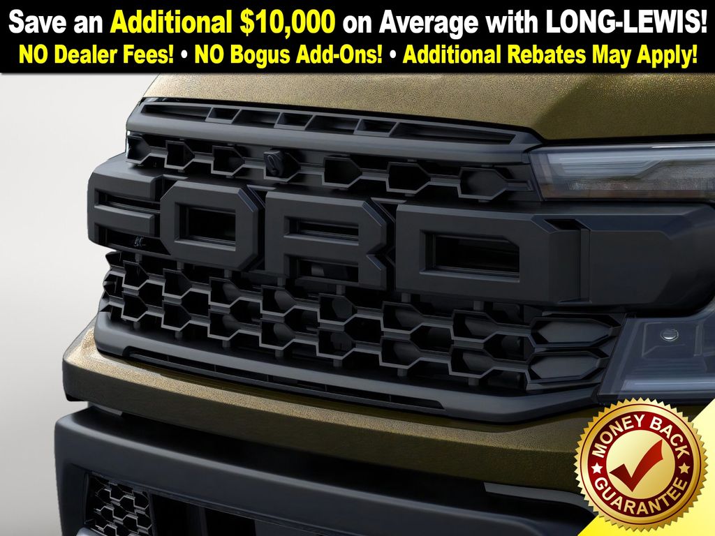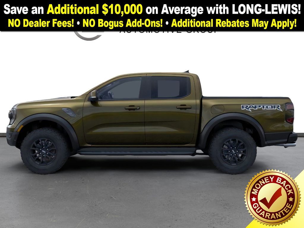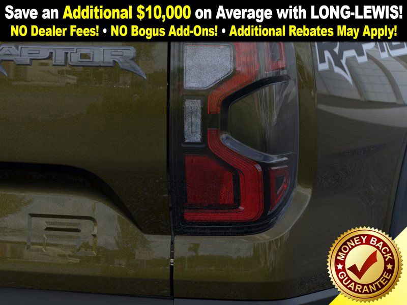Shelter Green Metallic 2025 Ford Ranger Raptor NFT 4WD 10-Speed Automatic 3.0L EcoBoost V6 4WD, 10 Speakers, 4-Wheel Disc Brakes, 4.27 Axle Ratio, ABS brakes, Air Conditioning, Alloy wheels, AM/FM radio: SiriusXM, Auto High-beam Headlights, Auto-dimming Rear-View mirror, Automatic temperature control, Brake assist, Compass, Delay-off headlights, Driver door bin, Driver vanity mirror, Dual front impact airbags, Dual front side impact airbags, Electronic Stability Control, Emergency communication system: SYNC 4 911 Assist, Front anti-roll bar, Front Bucket Seats, Front Center Armrest, Front dual zone A/C, Front fog lights, Front License Plate Bracket, Front reading lights, Front wheel independent suspension, Fully automatic headlights, Garage door transmitter, Heated door mirrors, Heated front seats, Heated steering wheel, Illuminated entry, Internet access capable: FordPass Connect 4G, Leather Shift Knob, Leather steering wheel, Leather-Trimmed Front Heated Bucket Seats, Low tire pressure warning, Memory seat, Navigation system: Connected Navigation, Occupant sensing airbag, Outside temperature display, Overhead airbag, Overhead console, Panic alarm, Passenger door bin, Passenger vanity mirror, Power door mirrors, Power driver seat, Power passenger seat, Power steering, Power windows, Radio: B&O Sound System by Bang & Olufsen, Rain sensing wipers, Rear reading lights, Rear seat center armrest, Rear step bumper, Rear window defroster, Remote keyless entry, Security system, SiriusXM Satellite Radio, Speed control, Speed-sensing steering, Steering wheel mounted audio controls, SYNC 4A, Telescoping steering wheel, Tilt steering wheel, Traction control, Trip computer, Turn signal indicator mirrors, Variably intermittent wipers, Voltmeter, Wheels: 17" Gray-Painted Aluminum, 4WD.