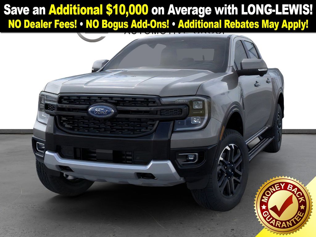 Carbonized Gray Metallic 2025 Ford Ranger Lariat NFT 4WD 10-Speed Automatic EcoBoost 2.3L I4 GTDi DOHC Turbocharged VCT 4WD, 10 Speakers, 4-Wheel Disc Brakes, ABS brakes, Advanced Towing Package, Air Conditioning, Alloy wheels, AM/FM radio: SiriusXM, Auto High-beam Headlights, Auto-dimming Rear-View mirror, Automatic temperature control, Black Running Boards, Brake assist, Class IV Trailer Hitch Receiver, Compass, Delay-off headlights, Driver door bin, Driver vanity mirror, Dual front impact airbags, Dual front side impact airbags, Electronic Stability Control, Emergency communication system: SYNC 4 911 Assist, Front anti-roll bar, Front Bucket Seats, Front Center Armrest, Front dual zone A/C, Front fog lights, Front License Plate Bracket, Front reading lights, Front wheel independent suspension, Fully automatic headlights, FX4 Off-Road Box Decal, FX4 Off-Road Package, FX4 Selectable Drive Modes, Garage door transmitter, Gray Painted Center Bar & Grille Surround, Gray Painted Front Fascia & Rear Bumper, Heated door mirrors, Heated front seats, Heated steering wheel, Illuminated entry, Internet access capable: FordPass Connect 4G, Leather Shift Knob, Leather steering wheel, Leather-Trimmed Front Heated Bucket Seats, Low tire pressure warning, Memory seat, Navigation system: Connected Navigation, Occupant sensing airbag, Off-Road Screen in Center Stack, Off-Road Tuned Shocks, Outside temperature display, Overhead airbag, Overhead console, Panic alarm, Passenger door bin, Passenger vanity mirror, Power door mirrors, Power driver seat, Power passenger seat, Power steering, Power windows, Pro Trailer Backup Assist, Radio: B&O Sound System by Bang & Olufsen, Rain sensing wipers, Rear Parking Sensors w/Trailer Guidance, Rear reading lights, Rear seat center armrest, Rear step bumper, Rear window defroster, Remote keyless entry, Security system, SiriusXM Satellite Radio, Speed control, Speed-sensing steering, Sport Appearance Package, Sport Box Decal, Steering wheel mounted audio controls, SYNC 4A w/Connected Navigation, Telescoping steering wheel, Tilt steering wheel, Traction control, Trail Control, Trailer Brake Controller, Trailer Tow Package, Trip computer, Turn signal indicator mirrors, Variably intermittent wipers, Voltmeter, Wheels: 18" Machined Aluminum w/Dark Pockets, 4WD.