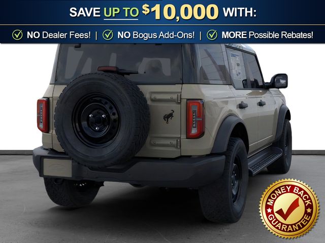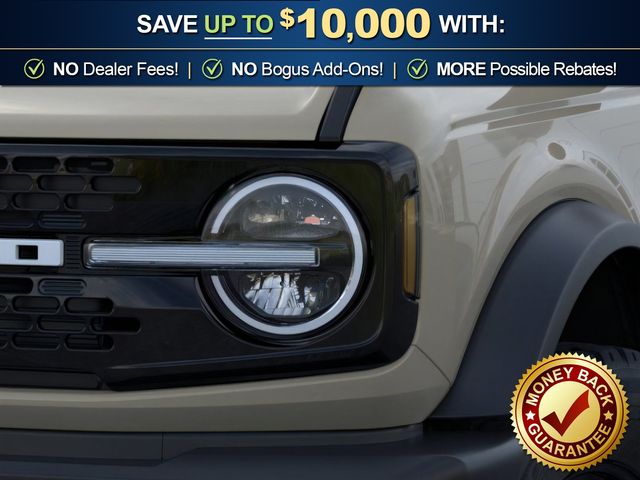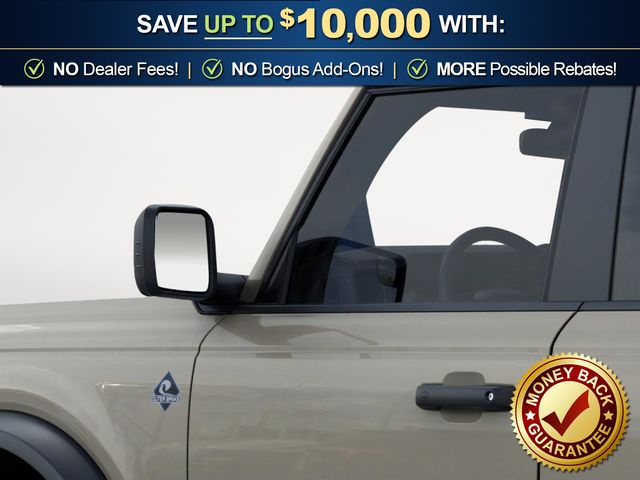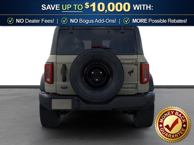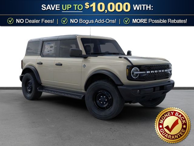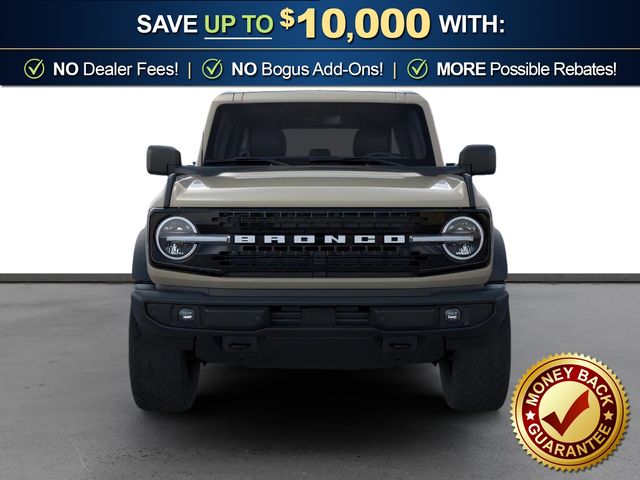 2026 Ford Bronco Outer Banks NFT Desert Sand Outer Banks NFT 4WD 10-Speed Automatic 2.7L EcoBoost V6 18" Bright Machined Aluminum Wheels, 3.73 Axle Ratio, 4-Wheel Disc Brakes, 7 Speakers, ABS brakes, Air Conditioning, Alloy wheels, AM/FM radio: SiriusXM with 360L, AM/FM Stereo, Auto High-beam Headlights, Auto-dimming Rear-View mirror, Automatic temperature control, Black Appearance Package, Black Molded-in-Color Door Handles, Black Molded-in-Color Fender Flares, Black Molded-in-Color Sideview Mirror Caps, Black-Painted Molded-in-Color Grille, Brake assist, Compass, Connected Navigation, Delay-off headlights, Driver door bin, Driver vanity mirror, Dual front impact airbags, Dual front side impact airbags, Electronic Stability Control, Emergency communication system: 911 Assist, Exterior Parking Camera Rear, Ford Connectivity Package (1-Year Included), Front anti-roll bar, Front Bucket Seats, Front Center Armrest, Front dual zone A/C, Front fog lights, Front reading lights, Front wheel independent suspension, Fully automatic headlights, Hard Top Sound Deadening Headliner, Heated door mirrors, Heated front seats, Heated Leather-Trimmed/Vinyl Bucket Seats, Heated steering wheel, Illuminated entry, Integrated roll-over protection, Leather Shift Knob, Low tire pressure warning, Navigation system: Connected Navigation, Occupant sensing airbag, Outside temperature display, Overhead airbag, Overhead console, Panic alarm, Passenger door bin, Passenger vanity mirror, Power door mirrors, Power driver seat, Power passenger seat, Power steering, Power windows, Radio data system, Rear seat center armrest, Rear-Window Defroster and Washer, Remote keyless entry, Security system, Shadow Black-Painted Hard Top, SiriusXM with 360L, Speed control, Split folding rear seat, Steering wheel mounted audio controls, SYNC 4, Tachometer, Telescoping steering wheel, Tilt steering wheel, Traction control, Trip computer, Variably intermittent wipers, Voltmeter.