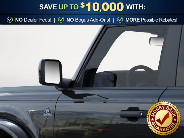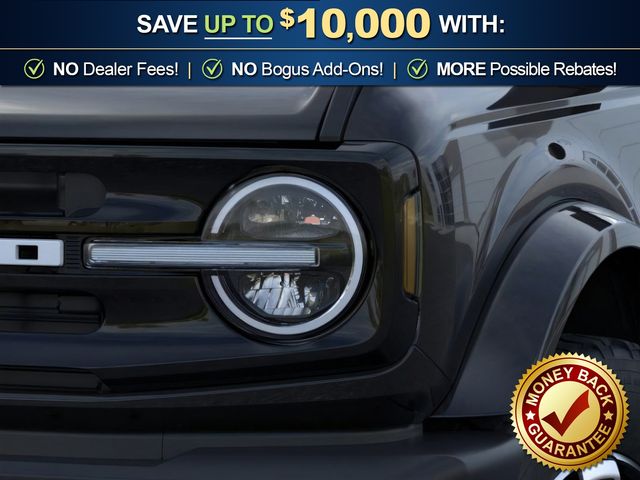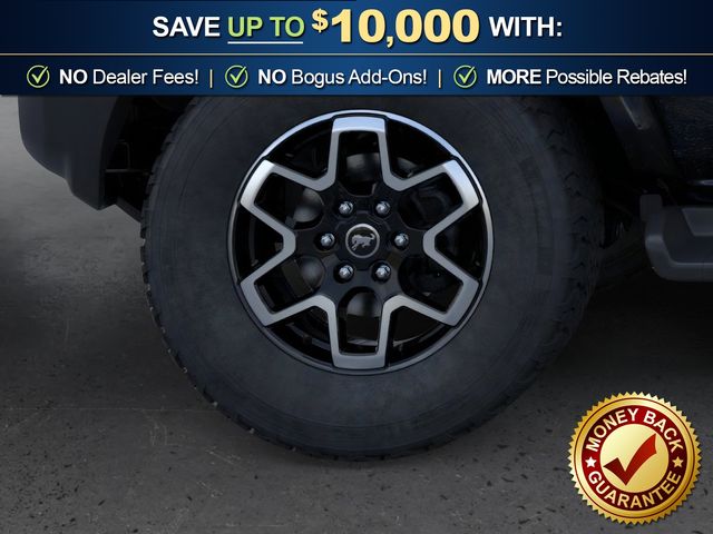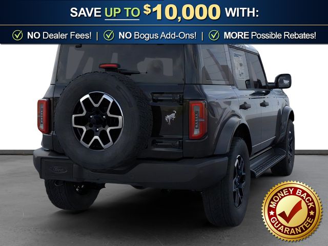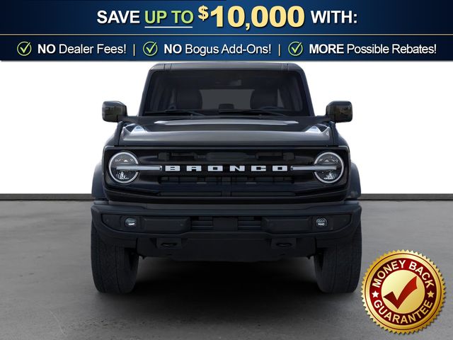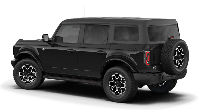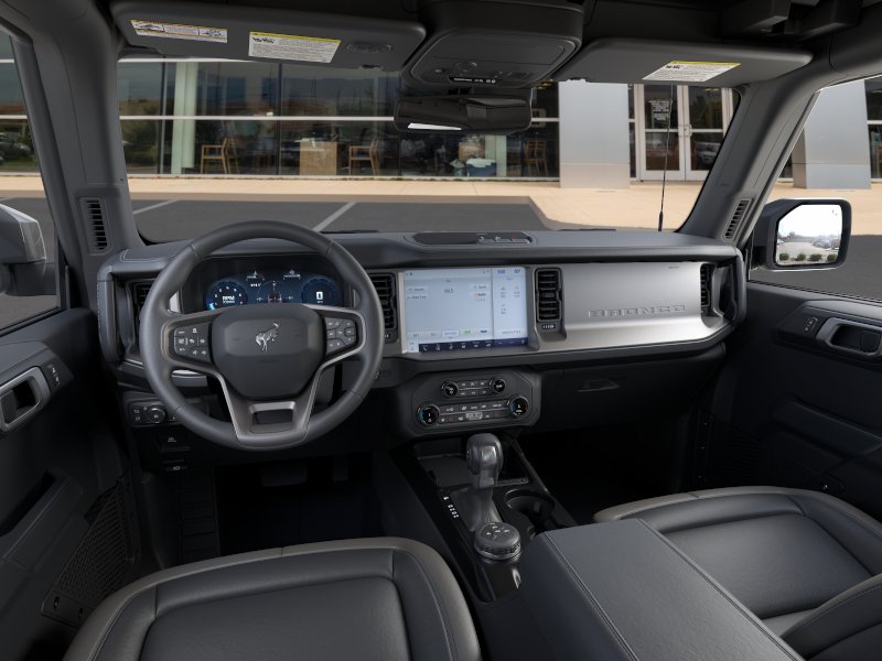 2026 Ford Bronco Outer Banks NFT Shadow Black Outer Banks NFT 4WD 10-Speed Automatic 2.7L EcoBoost V6 18" Bright Machined Aluminum Wheels, 3.73 Axle Ratio, 4-Wheel Disc Brakes, 7 Speakers, ABS brakes, Air Conditioning, Alloy wheels, AM/FM radio: SiriusXM with 360L, AM/FM Stereo, Auto High-beam Headlights, Auto-dimming Rear-View mirror, Automatic temperature control, Brake assist, Compass, Connected Navigation, Delay-off headlights, Driver door bin, Driver vanity mirror, Dual front impact airbags, Dual front side impact airbags, Electronic Stability Control, Emergency communication system: 911 Assist, Exterior Parking Camera Rear, Ford Connectivity Package (1-Year Included), Front anti-roll bar, Front Bucket Seats, Front Center Armrest, Front dual zone A/C, Front fog lights, Front reading lights, Front wheel independent suspension, Fully automatic headlights, Hard Top Sound Deadening Headliner, Heated door mirrors, Heated front seats, Heated Leather-Trimmed/Vinyl Bucket Seats, Heated steering wheel, Illuminated entry, Integrated roll-over protection, Leather Shift Knob, Low tire pressure warning, Navigation system: Connected Navigation, Occupant sensing airbag, Outside temperature display, Overhead airbag, Overhead console, Panic alarm, Passenger door bin, Passenger vanity mirror, Power door mirrors, Power driver seat, Power passenger seat, Power steering, Power windows, Radio data system, Rear seat center armrest, Rear-Window Defroster and Washer, Remote keyless entry, Security system, Shadow Black-Painted Hard Top, SiriusXM with 360L, Speed control, Split folding rear seat, Steering wheel mounted audio controls, SYNC 4, Tachometer, Telescoping steering wheel, Tilt steering wheel, Traction control, Trip computer, Variably intermittent wipers, Voltmeter.