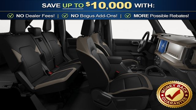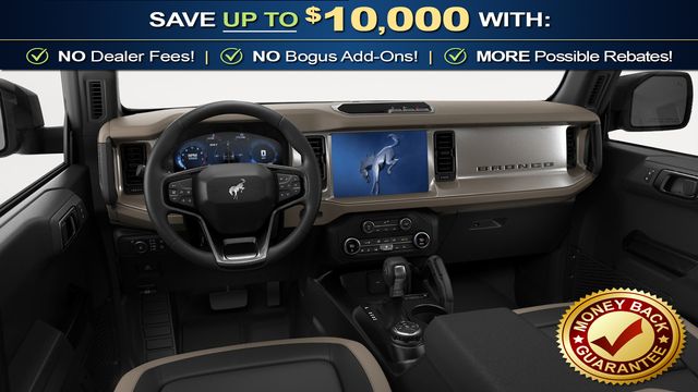 2026 Ford Bronco Outer Banks NFT Shadow Black Outer Banks NFT 4WD 10-Speed Automatic 2.3L EcoBoost I-4 18" Bright Machined Aluminum Wheels, 3.73 Axle Ratio, 4-Wheel Disc Brakes, 7 Speakers, ABS brakes, Air Conditioning, Alloy wheels, AM/FM radio: SiriusXM with 360L, AM/FM Stereo, Auto High-beam Headlights, Auto-dimming Rear-View mirror, Automatic temperature control, Brake assist, Carbonized Gray Molded-in-Color Hard Top, Compass, Connected Navigation, Delay-off headlights, Driver door bin, Driver vanity mirror, Dual front impact airbags, Dual front side impact airbags, Electronic Stability Control, Emergency communication system: 911 Assist, Exterior Parking Camera Rear, Ford Connectivity Package (1-Year Included), Front anti-roll bar, Front Bucket Seats, Front Center Armrest, Front dual zone A/C, Front fog lights, Front reading lights, Front wheel independent suspension, Fully automatic headlights, Hard Top Sound Deadening Headliner, Heated door mirrors, Heated front seats, Heated Leather-Trimmed/Vinyl Bucket Seats, Heated steering wheel, Illuminated entry, Integrated roll-over protection, Leather Shift Knob, Low tire pressure warning, Navigation system: Connected Navigation, Occupant sensing airbag, Outside temperature display, Overhead airbag, Overhead console, Panic alarm, Passenger door bin, Passenger vanity mirror, Power door mirrors, Power driver seat, Power passenger seat, Power steering, Power windows, Radio data system, Rear seat center armrest, Rear-Window Defroster and Washer, Remote keyless entry, Security system, SiriusXM with 360L, Speed control, Split folding rear seat, Steering wheel mounted audio controls, SYNC 4, Tachometer, Telescoping steering wheel, Tilt steering wheel, Traction control, Trip computer, Variably intermittent wipers, Voltmeter.