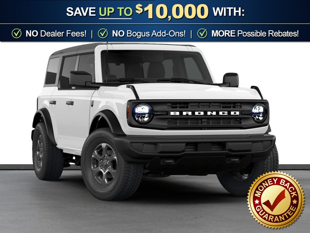 Dealer Discount of $777 off MSRP Oxford White 2026 Ford Bronco Big Bend NFT 4WD 10-Speed Automatic 2.3L EcoBoost I-4 4-Wheel Disc Brakes, 4.46 Axle Ratio, 7 Speakers, ABS brakes, Air Conditioning, Alloy wheels, AM/FM radio: SiriusXM with 360L, AM/FM Stereo, Auto High-beam Headlights, Brake assist, Carbonized Gray Molded-in-Color Hard Top, Cloth Bucket Seats, Compass, Delay-off headlights, Driver door bin, Driver vanity mirror, Dual front impact airbags, Dual front side impact airbags, Electronic Stability Control, Emergency communication system: 911 Assist, Exterior Parking Camera Rear, Ford Connectivity Package (1-Year Included), Front anti-roll bar, Front Bucket Seats, Front Center Armrest, Front License Plate Bracket, Front reading lights, Front wheel independent suspension, Fully automatic headlights, Hard Top Sound Deadening Headliner, Heated door mirrors, Illuminated entry, Integrated roll-over protection, Low tire pressure warning, Occupant sensing airbag, Outside temperature display, Overhead airbag, Overhead console, Panic alarm, Passenger door bin, Passenger vanity mirror, Power door mirrors, Power steering, Power windows, Radio data system, Rear-Window Defroster and Washer, Remote keyless entry, Security system, SiriusXM with 360L, Speed control, Split folding rear seat, Steering wheel mounted audio controls, SYNC 4, Tachometer, Telescoping steering wheel, Tilt steering wheel, Traction control, Trip computer, Variably intermittent wipers, Wheels: 17" Carbonized Gray-Painted Aluminum.