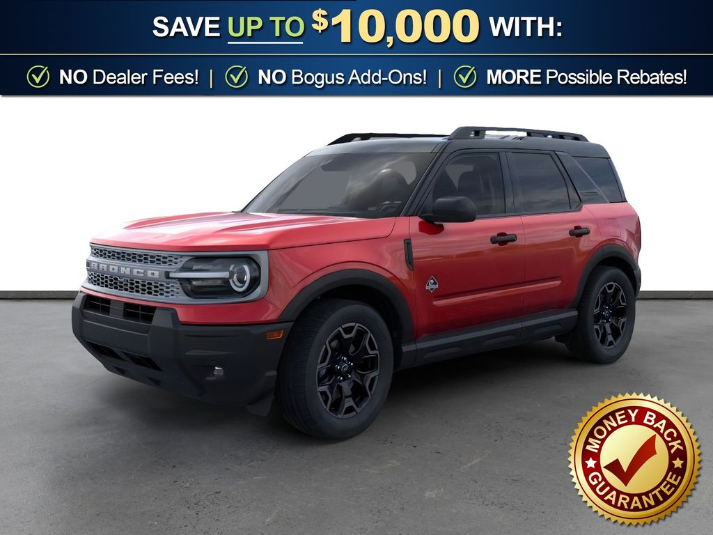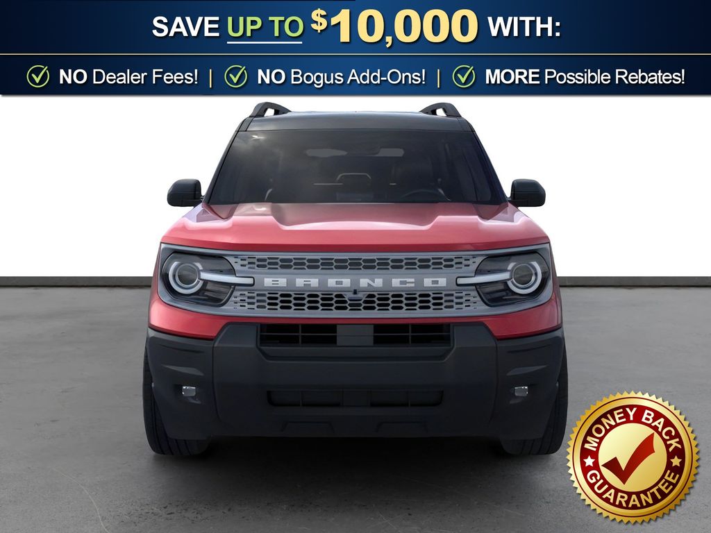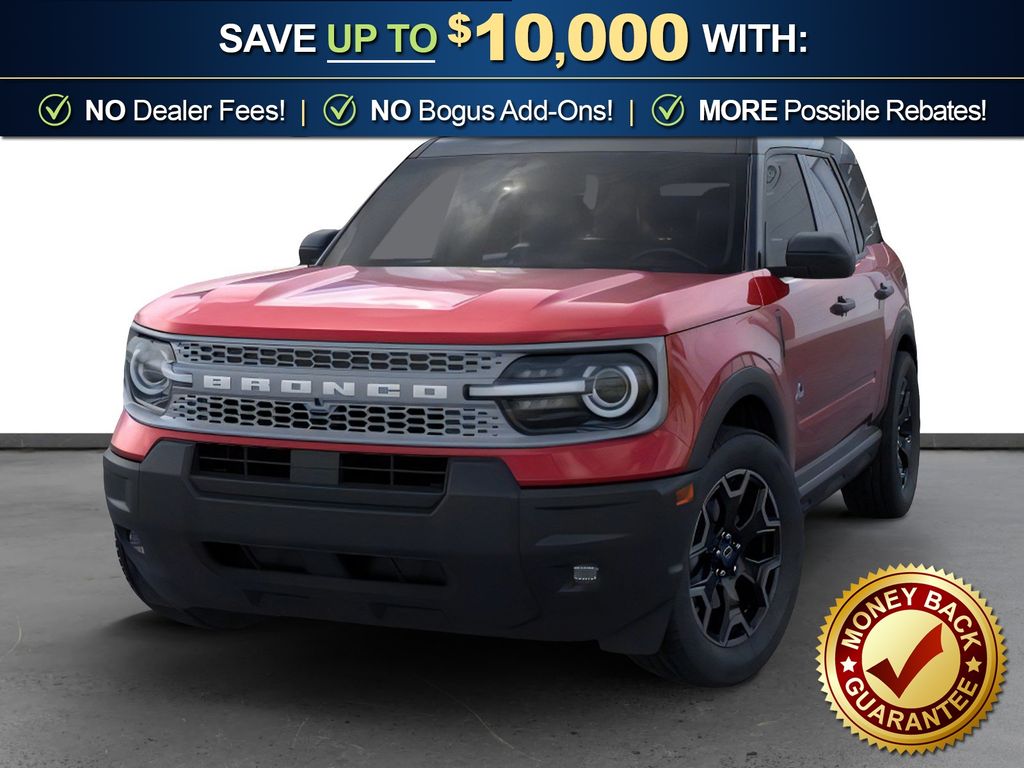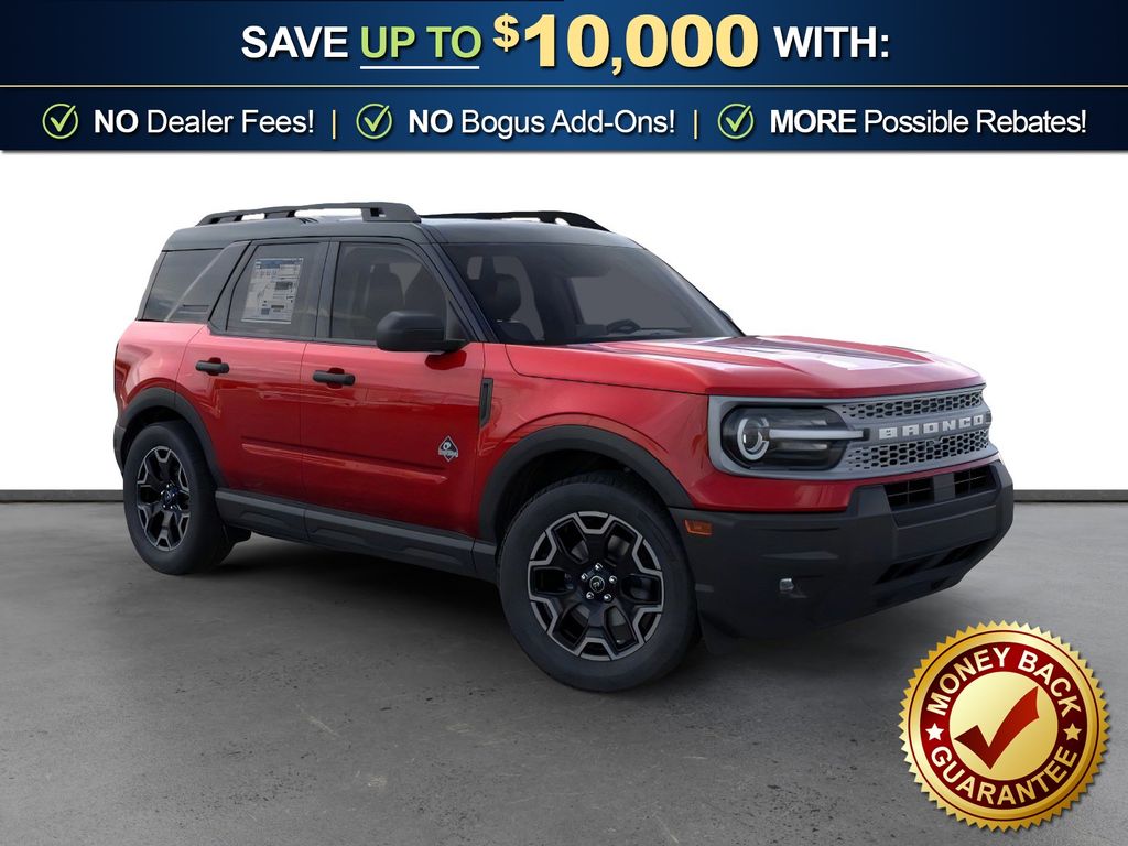 Dealer Discount of $1,165 off MSRP Priced below KBB Fair Purchase Price! Ruby Red Metallic Tinted Clearcoat 2026 Ford Bronco Sport Outer Banks NFT 4WD 8-Speed Automatic 1.5L EcoBoost 4-Wheel Disc Brakes, 6 Speakers, ABS brakes, Air Conditioning, Alloy wheels, AM/FM radio: SiriusXM with 360L, AM/FM Stereo, Apple CarPlay/Android Auto, Auto High-beam Headlights, Auto-dimming Rear-View mirror, Automatic temperature control, Brake assist, Compass, Delay-off headlights, Driver door bin, Driver vanity mirror, Dual front impact airbags, Dual front side impact airbags, Electronic Stability Control, Emergency communication system: SYNC 4 911 Assist, Exterior Parking Camera Rear, Ford Connectivity Package (1-Year Included), Four wheel independent suspension, Front anti-roll bar, Front Bucket Seats, Front Center Armrest, Front Driver/Passenger Seat Back Map Pockets, Front dual zone A/C, Front fog lights, Front License Plate Bracket, Front reading lights, Fully automatic headlights, Heated door mirrors, Heated front seats, Heated steering wheel, Illuminated entry, Internet access capable: 5G Modem - Ford Connectivity Package, Knee airbag, Low tire pressure warning, Memory seat, Occupant sensing airbag, Outside temperature display, Overhead airbag, Overhead console, Panic alarm, Passenger door bin, Passenger vanity mirror, Power door mirrors, Power driver seat, Power passenger seat, Power steering, Power windows, Radio data system, Rear anti-roll bar, Rear Parking Sensors, Rear reading lights, Rear seat center armrest, Rear window defroster, Rear window wiper, Remote keyless entry, Security system, SiriusXM with 360L, Speed control, Speed-sensing steering, Speed-Sensitive Wipers, Split folding rear seat, Steering wheel mounted audio controls, SYNC 4 with Enhanced Voice Recognition, Tachometer, Telescoping steering wheel, Tilt steering wheel, Traction control, Trip computer, Variably intermittent wipers, Wheels: 18" Ebony Black.
